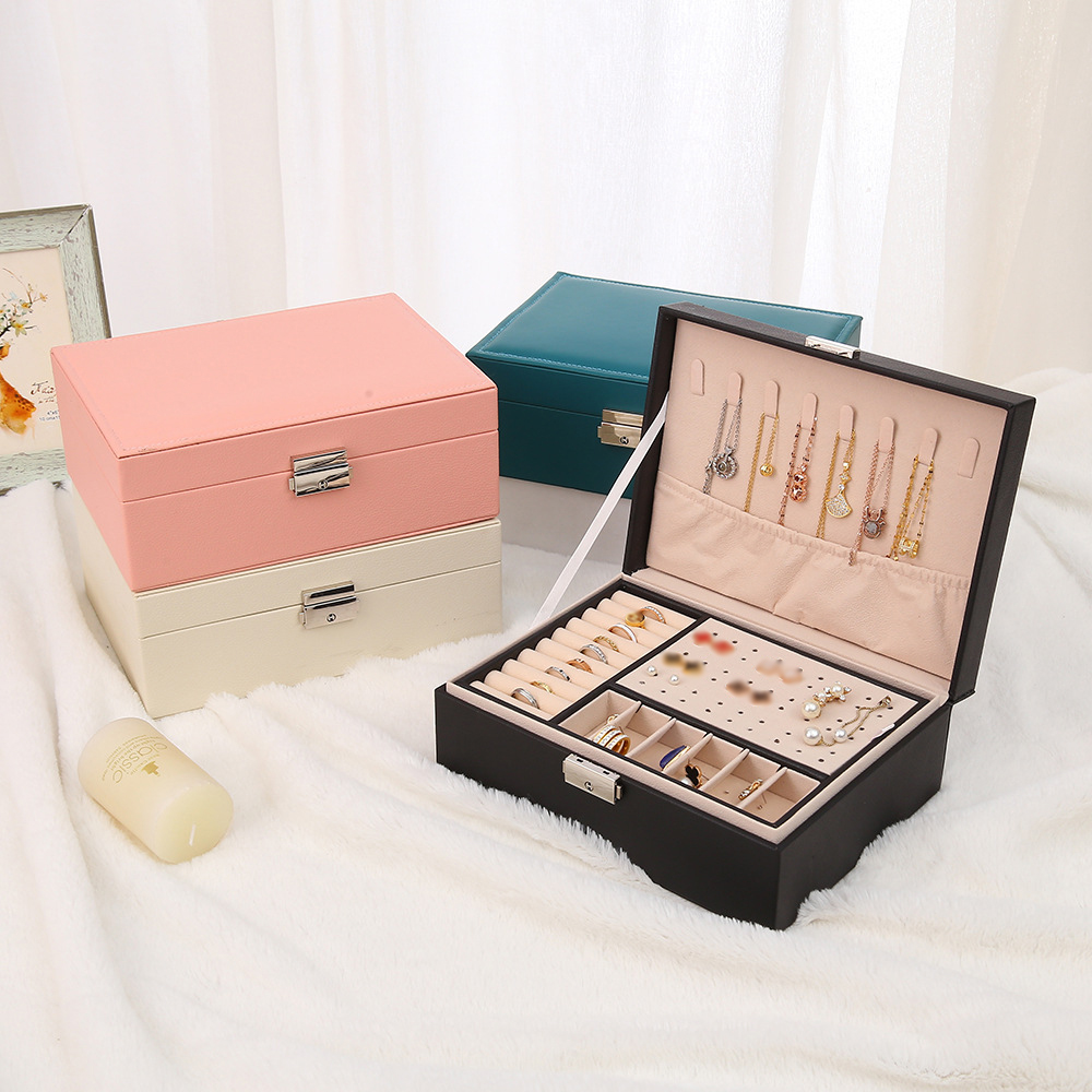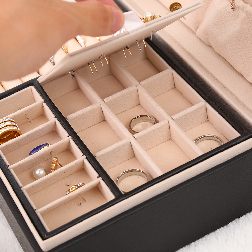 PU Multifunctionele Jewelry Box, met Katoenfluweel & Hout, Rechthoek, Dubbele laag & Stofdicht, meer kleuren voor de keuze, 230x170x90mm, Verkocht door PC