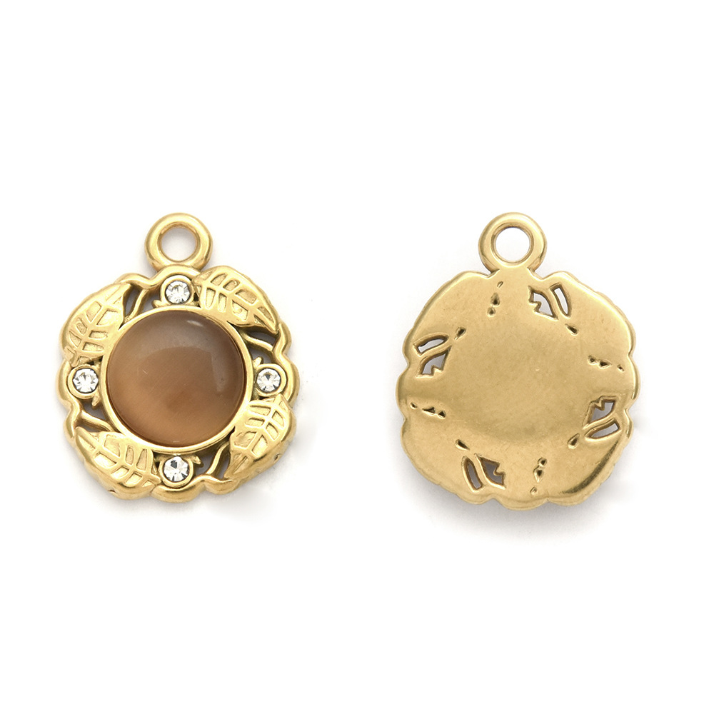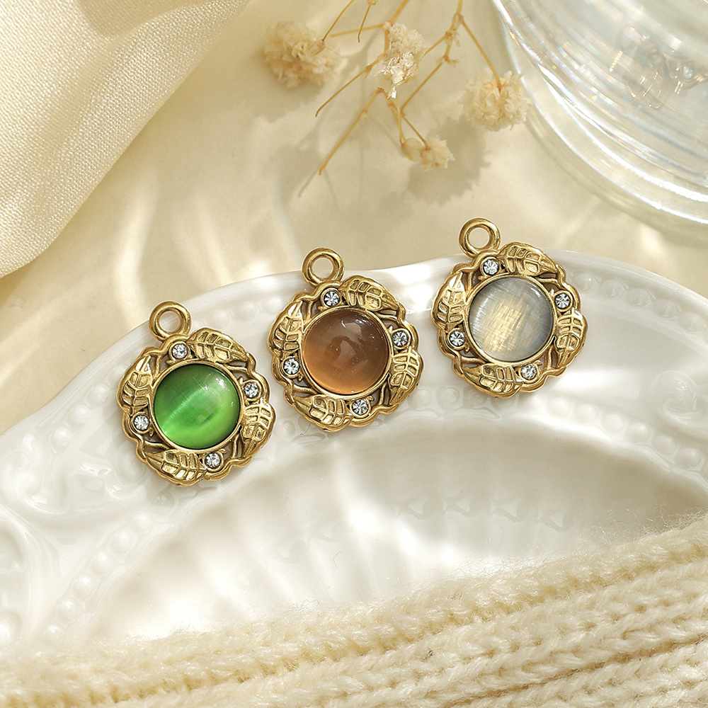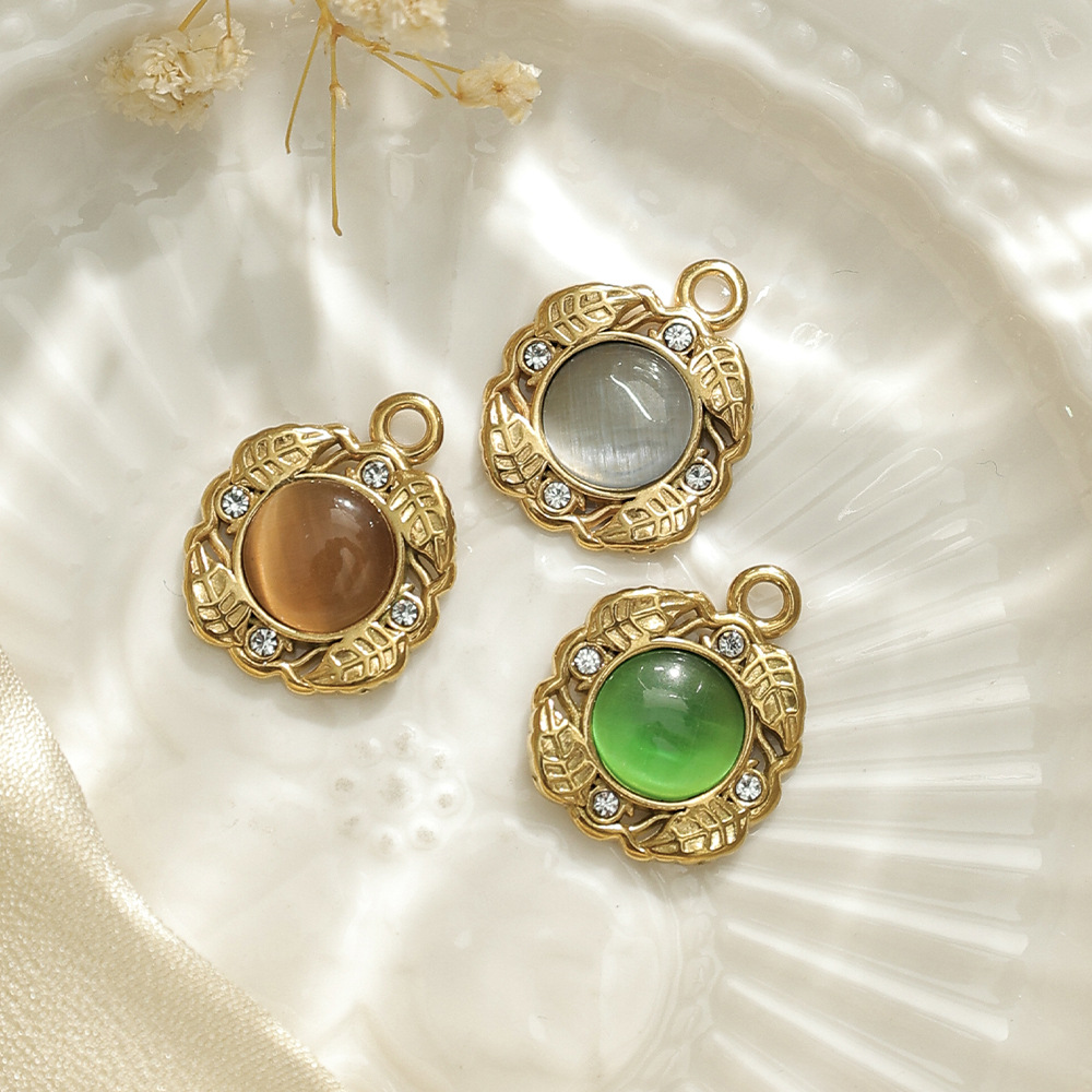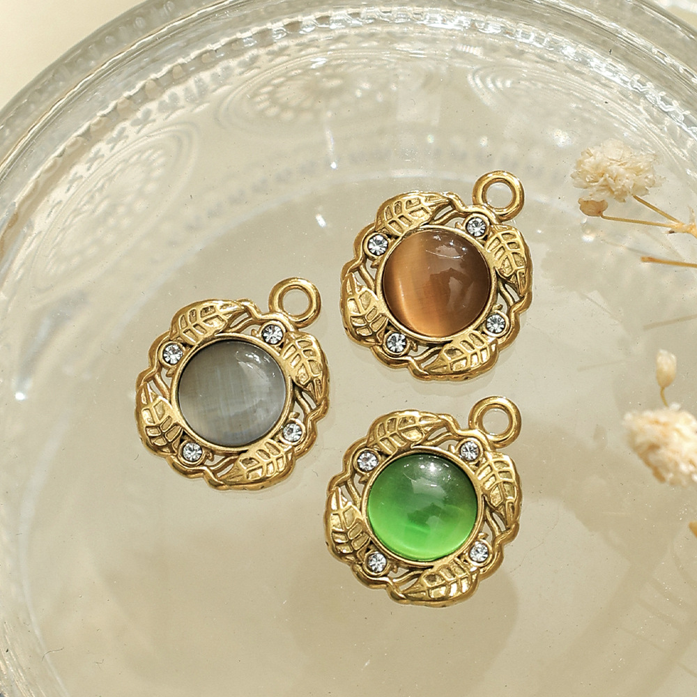 Cubic Zirconia Hanger, 304 roestvrij staal, met Cats Eye, Ronde, plated, DIY & micro pave zirconia, meer kleuren voor de keuze, 10pC's/Bag, Verkocht door Bag