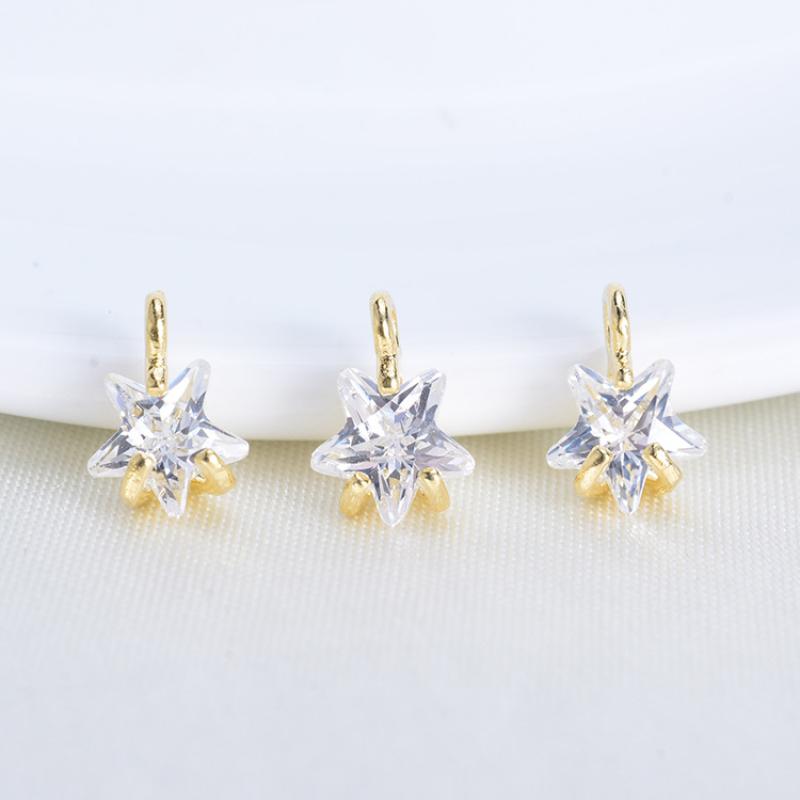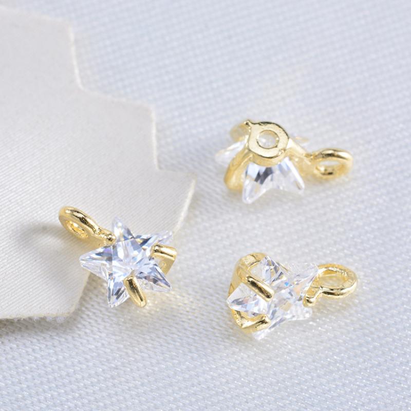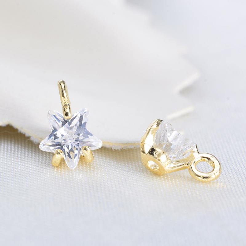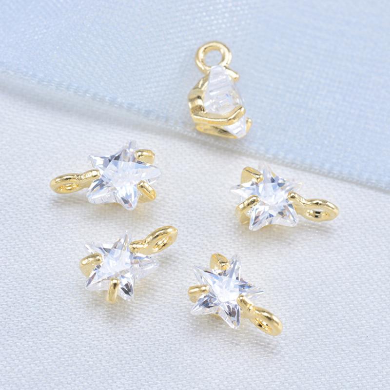 Messing zirconia hangers, met Cubic Zirconia, Ster, gold plated, DIY, nikkel, lood en cadmium vrij, 7x5mm, Verkocht door PC