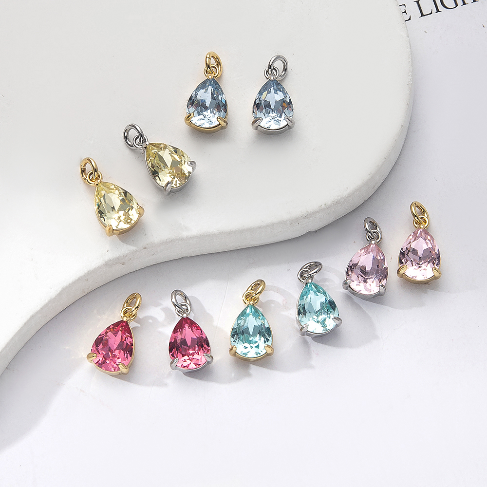 Messing zirconia hangers, Traan, plated, DIY & micro pave zirconia, meer kleuren voor de keuze, nikkel, lood en cadmium vrij, 6x5x13mm, Verkocht door PC