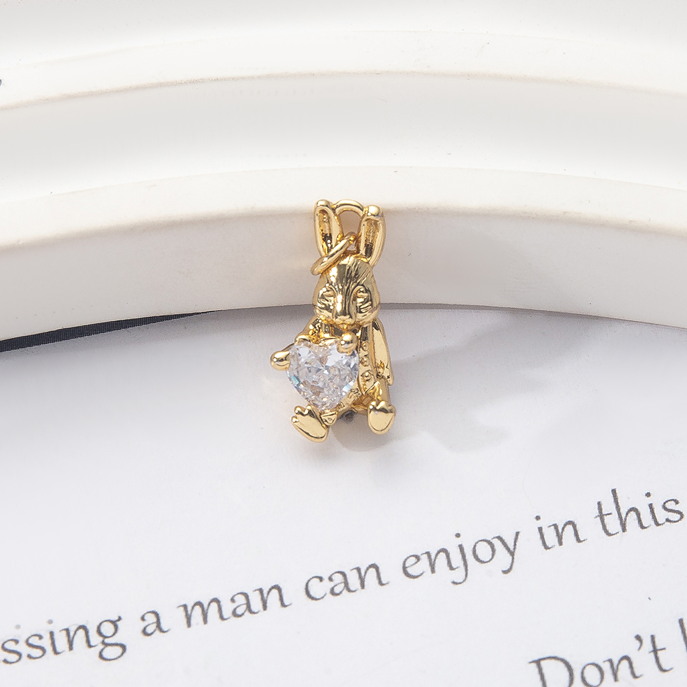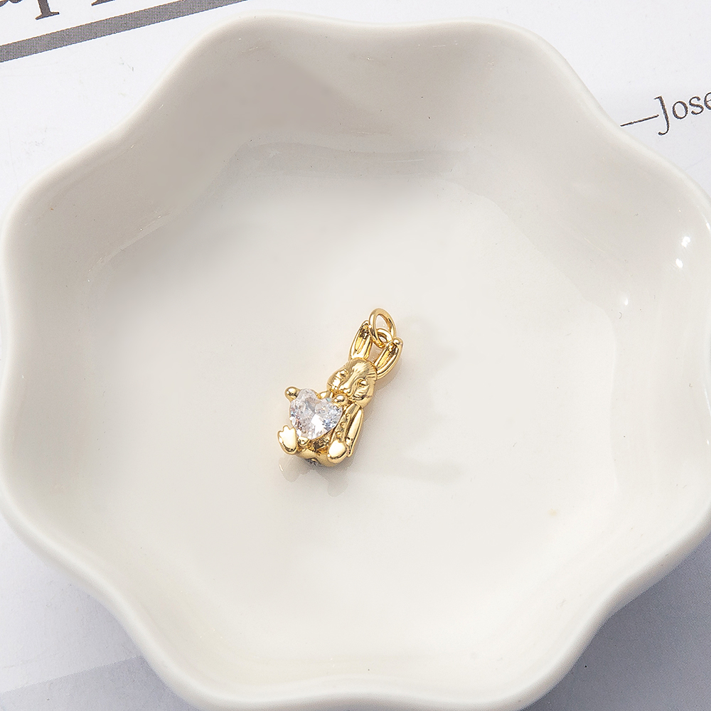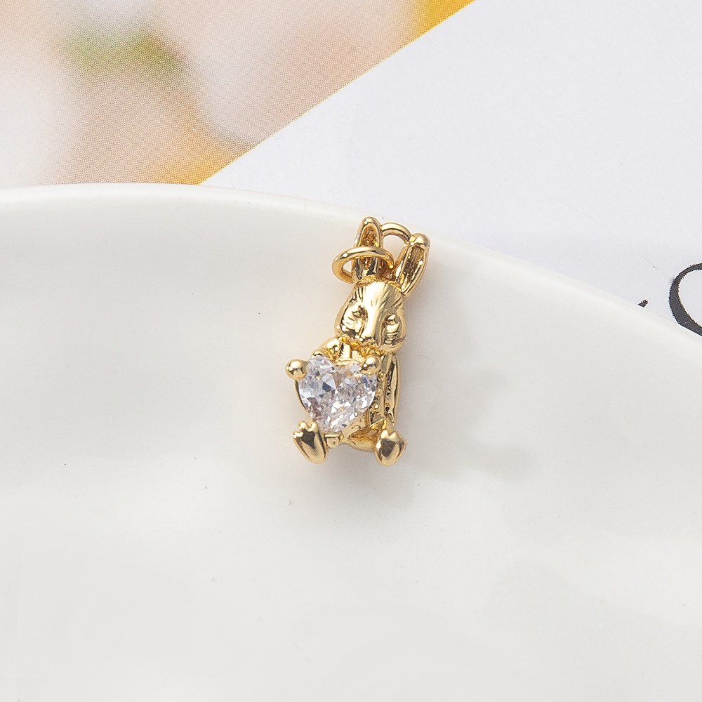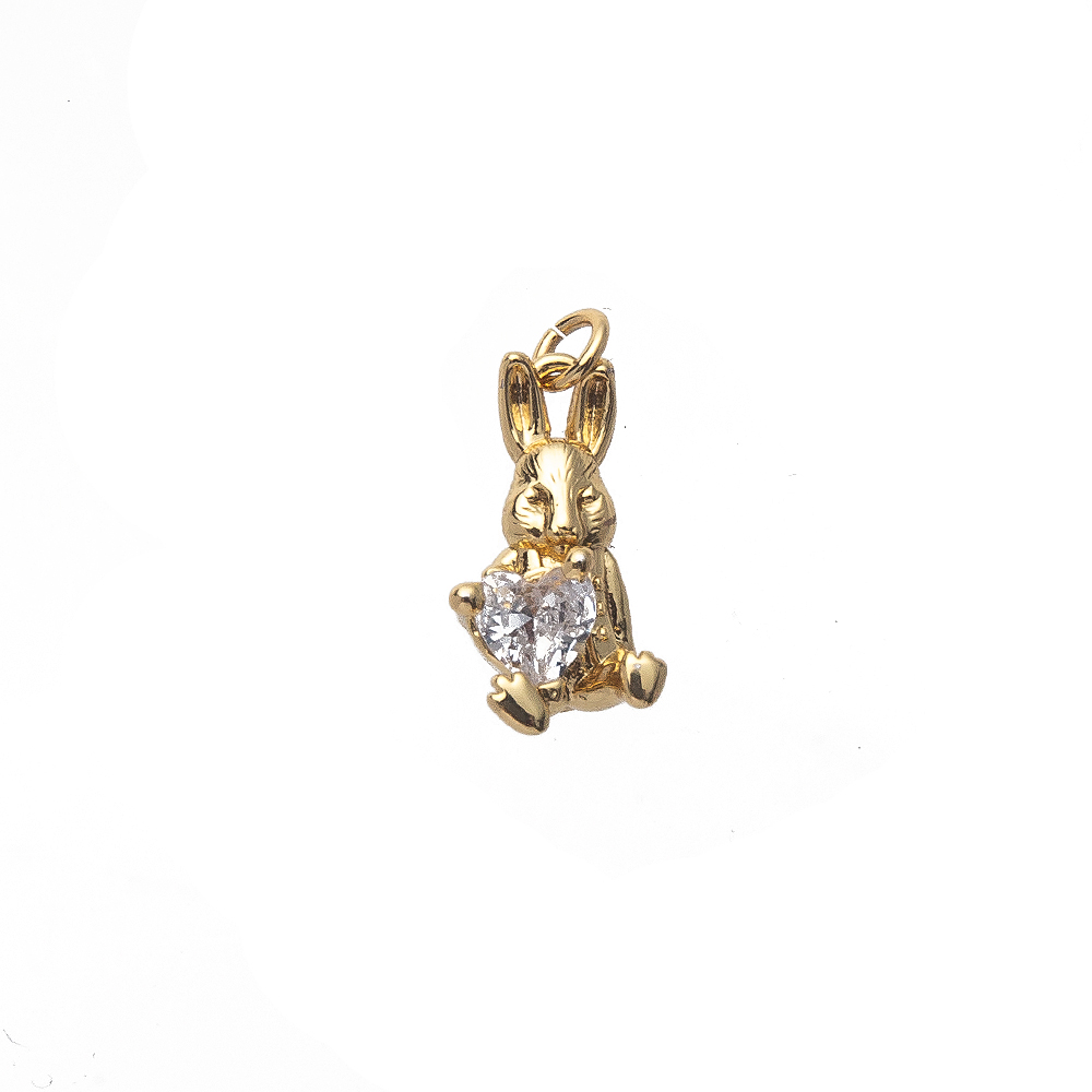 Messing zirconia hangers, Konijn, gold plated, DIY & micro pave zirconia, nikkel, lood en cadmium vrij, 9x5x18mm, Verkocht door PC