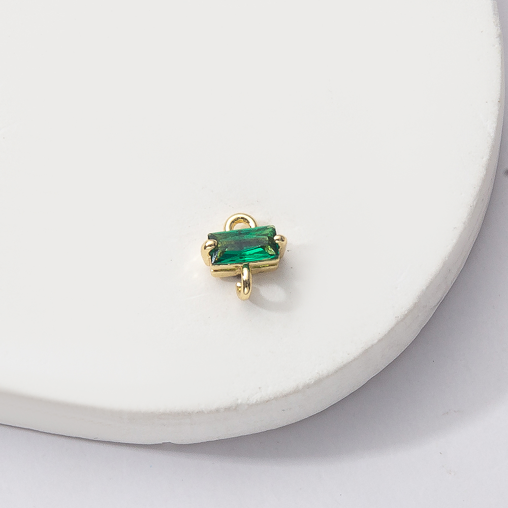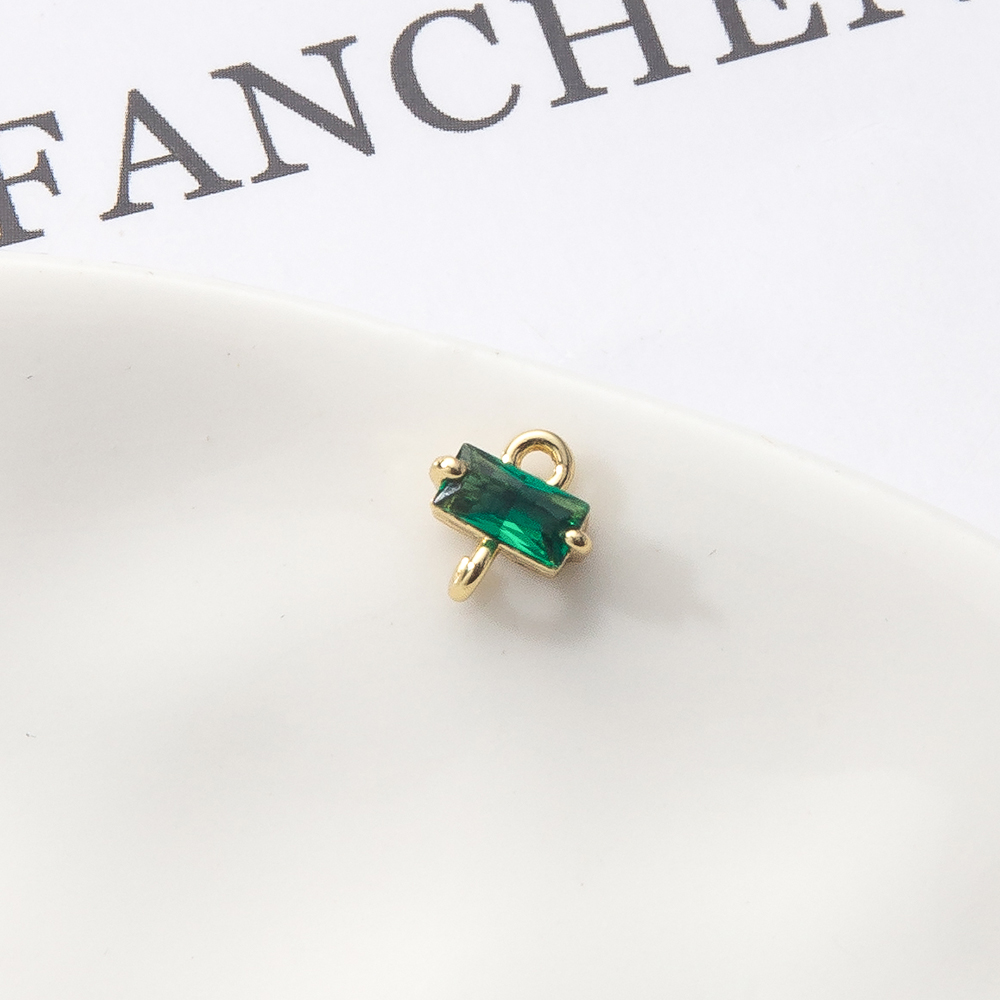 Messing zirconia hangers, Rechthoek, gold plated, DIY & micro pave zirconia, groen, nikkel, lood en cadmium vrij, 6x3x7mm, Verkocht door PC