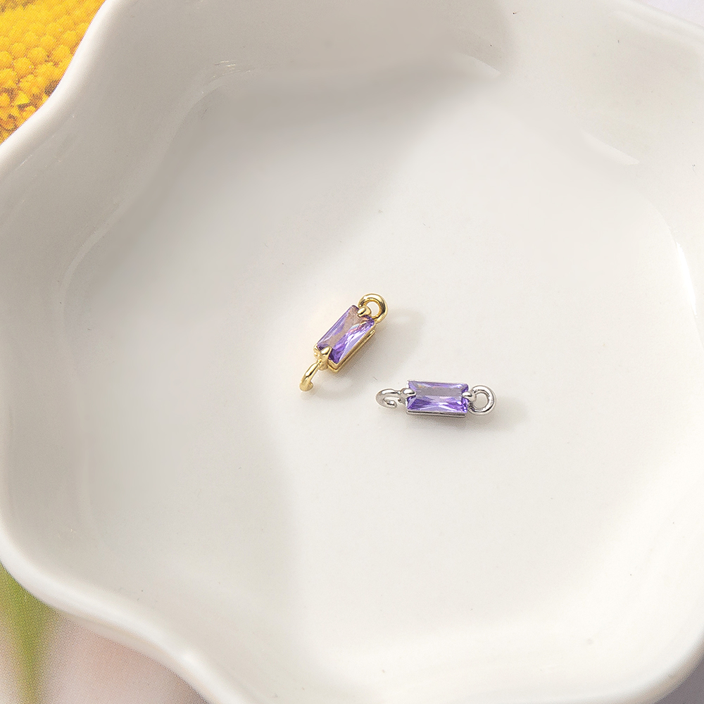 Messing zirconia hangers, Rechthoek, plated, DIY & micro pave zirconia, meer kleuren voor de keuze, nikkel, lood en cadmium vrij, 2x3x10mm, Verkocht door PC