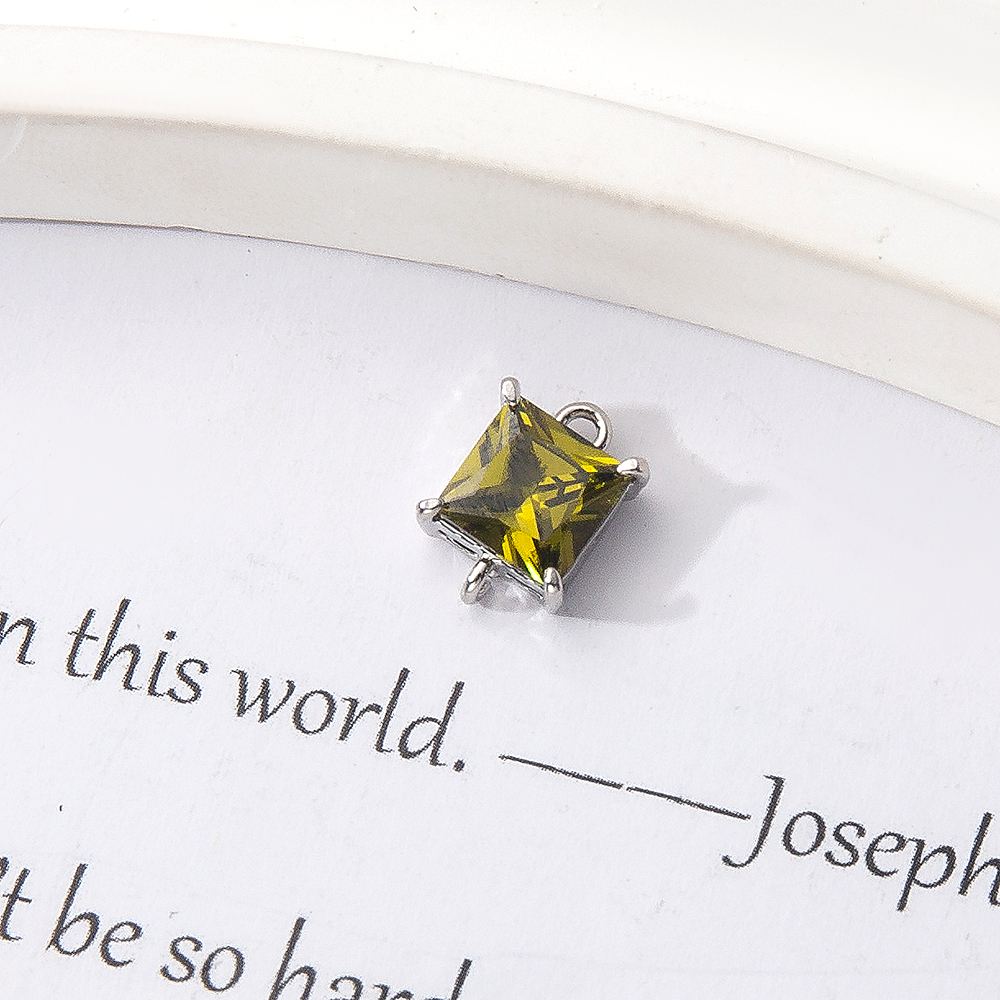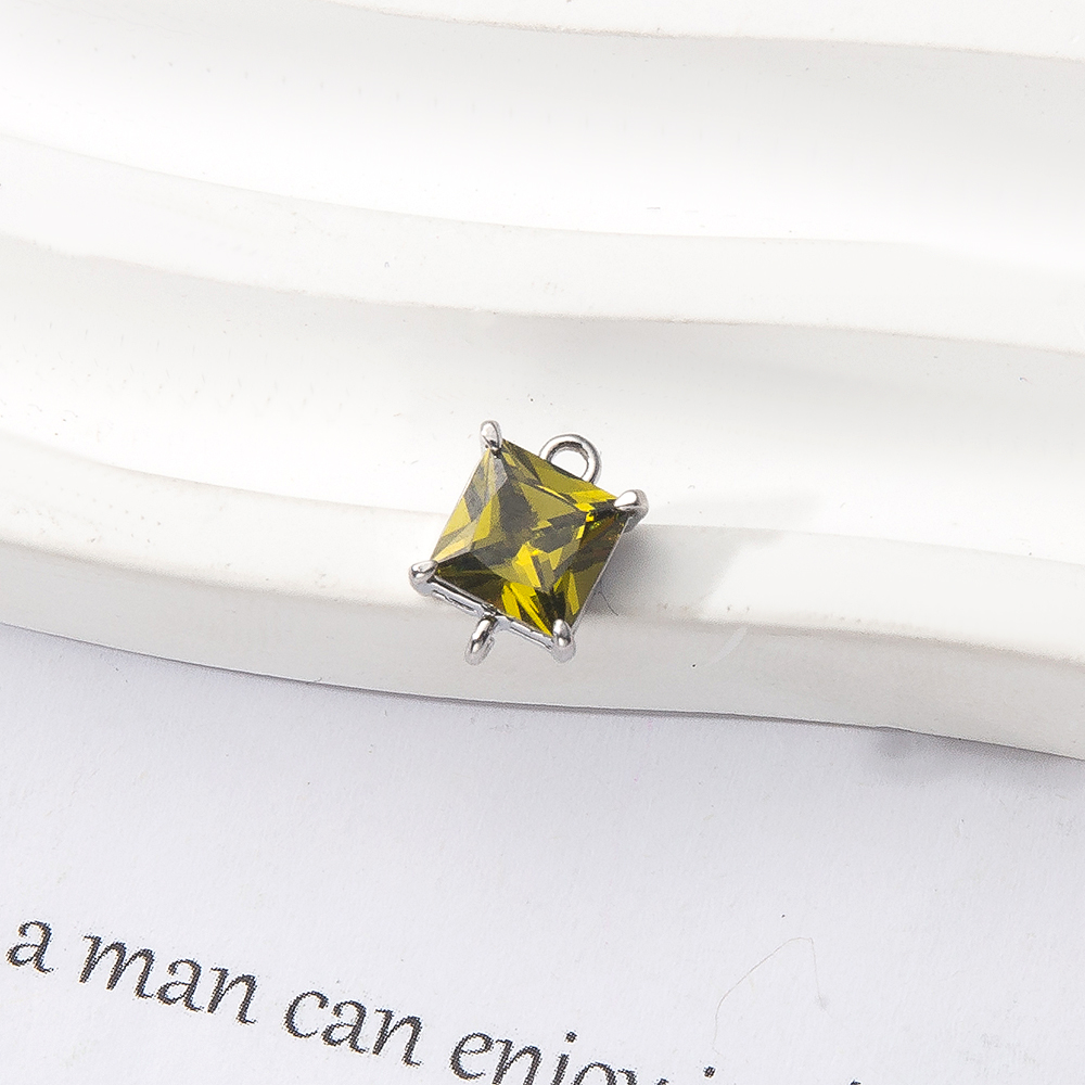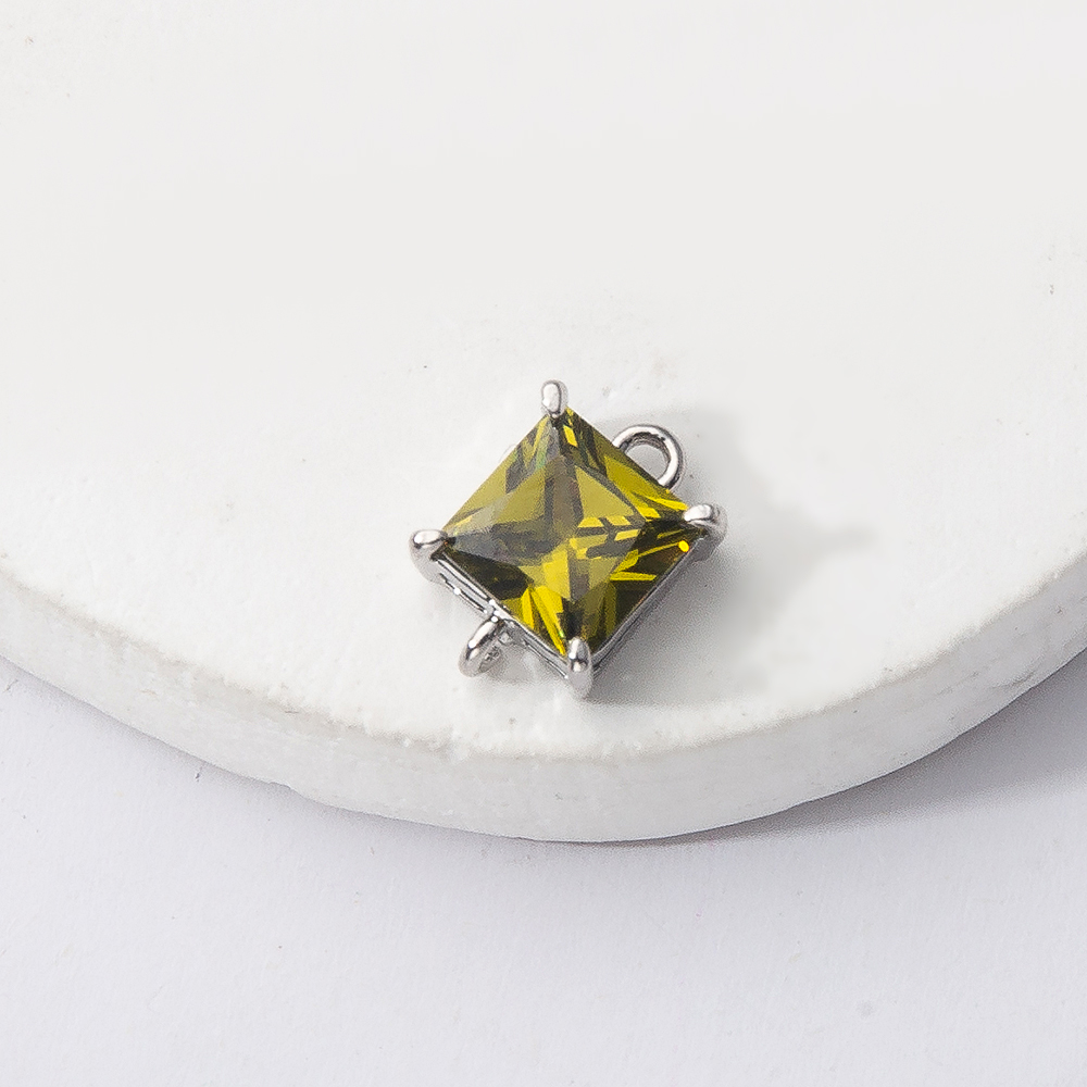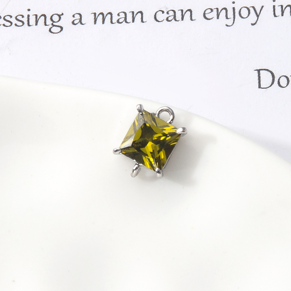 Messing zirconia hangers, Plein, silver plated, DIY & micro pave zirconia, groen, nikkel, lood en cadmium vrij, 7x3x10mm, Verkocht door PC