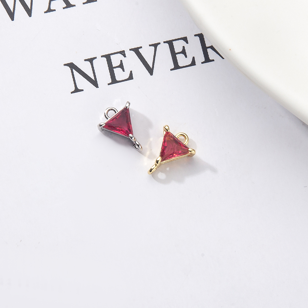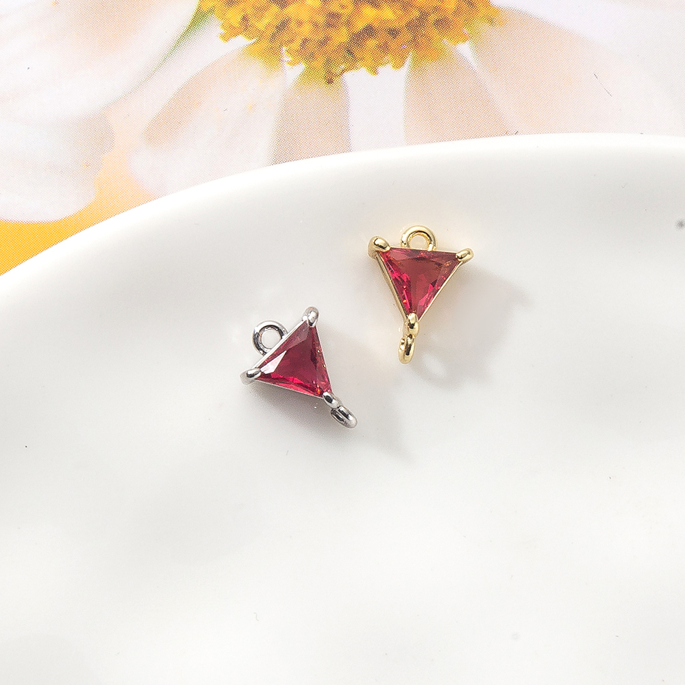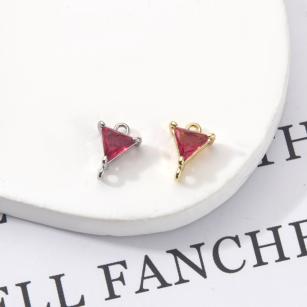 Messing zirconia hangers, Driehoek, plated, DIY & micro pave zirconia, meer kleuren voor de keuze, nikkel, lood en cadmium vrij, 7x4x9mm, Verkocht door PC