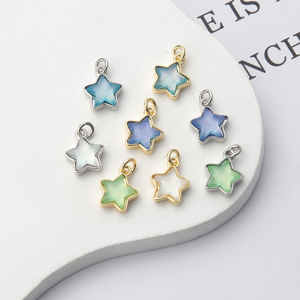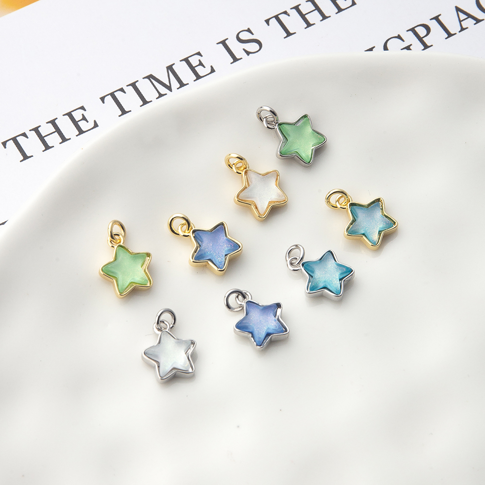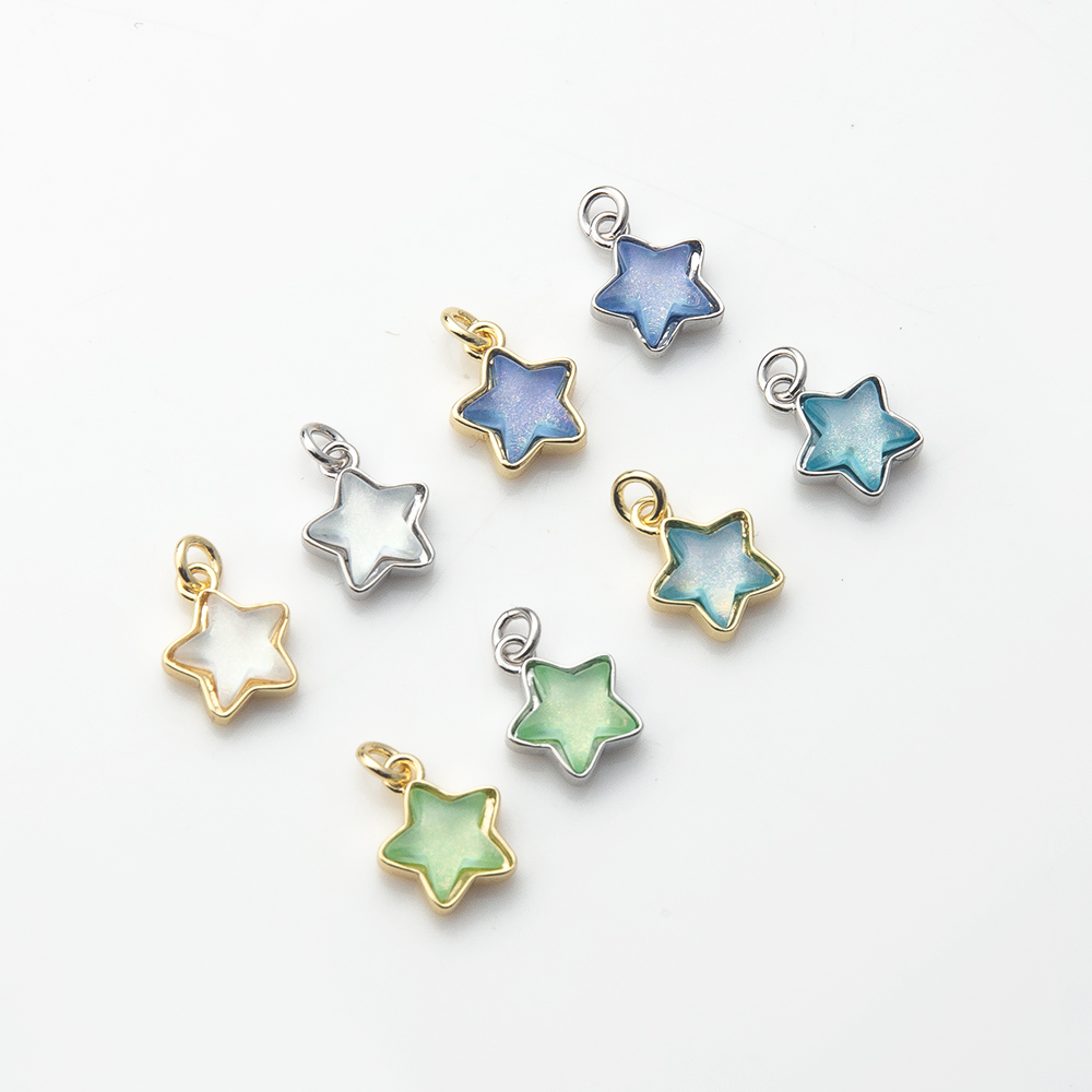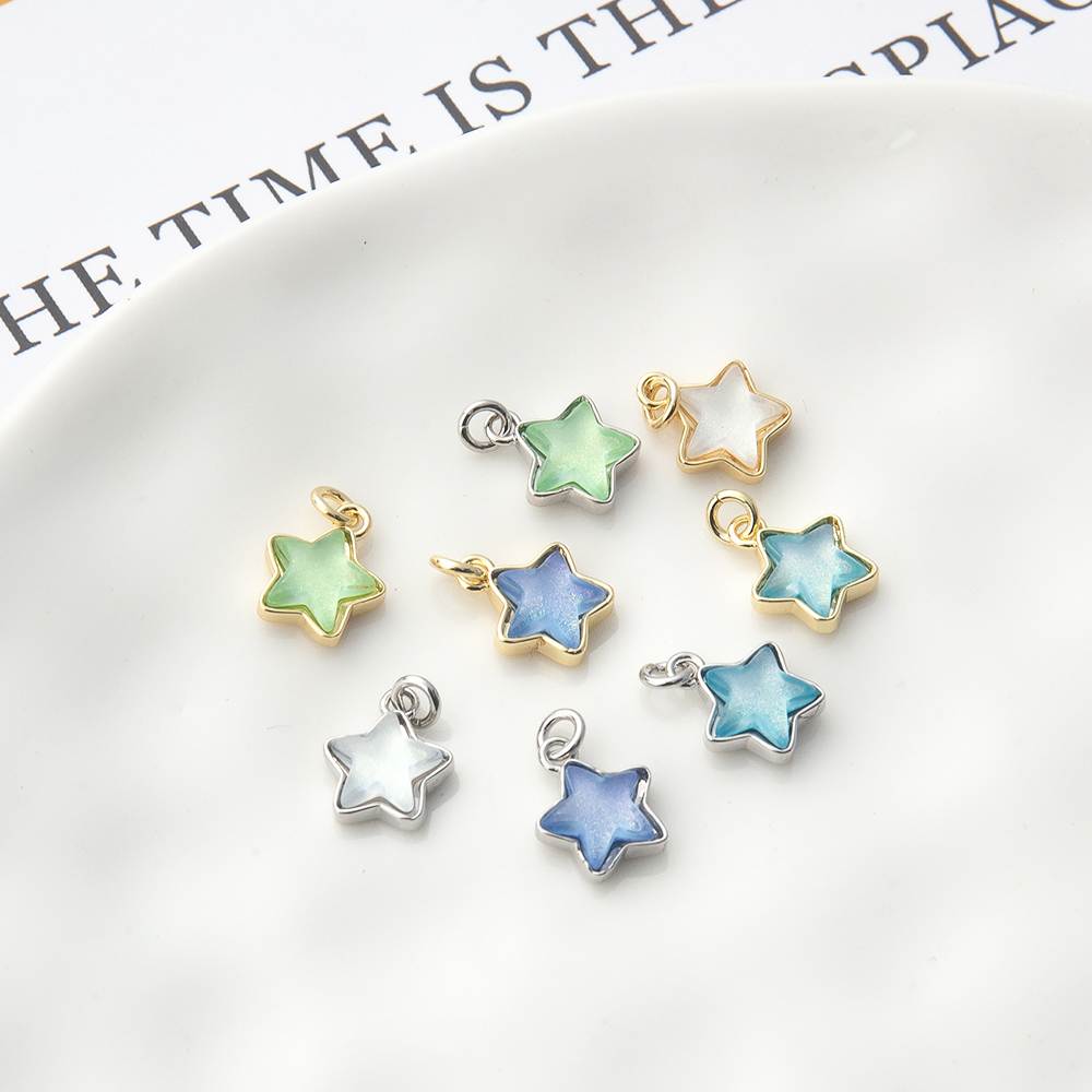 Messing zirconia hangers, Ster, plated, DIY & micro pave zirconia, meer kleuren voor de keuze, nikkel, lood en cadmium vrij, 9x3x14mm, Verkocht door PC