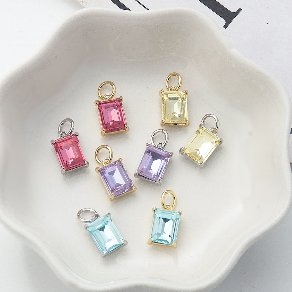 Messing zirconia hangers, Rechthoek, plated, DIY & micro pave zirconia, meer kleuren voor de keuze, nikkel, lood en cadmium vrij, 7x4x14mm, Verkocht door PC