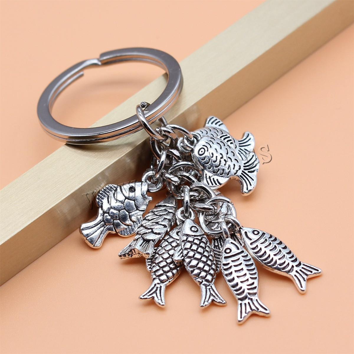 Sleutelhanger, 304 roestvrij staal, Vis, silver plated, mode sieraden, Verkocht door PC
