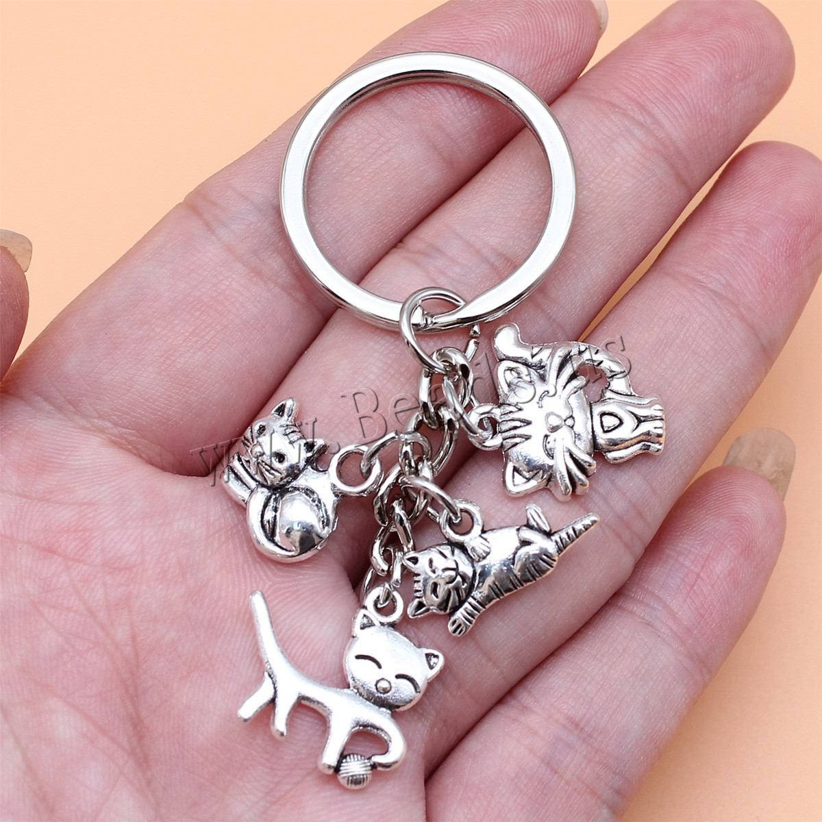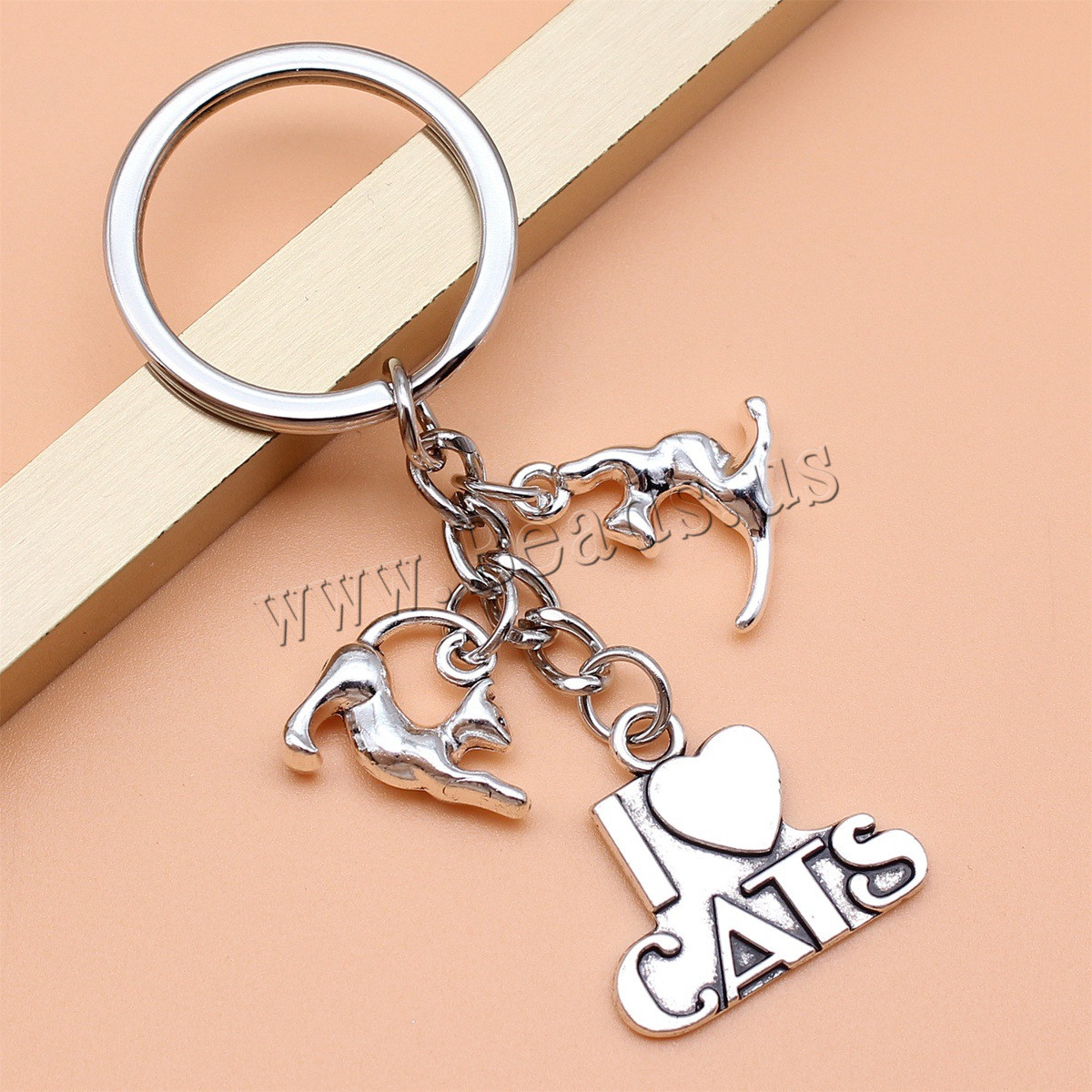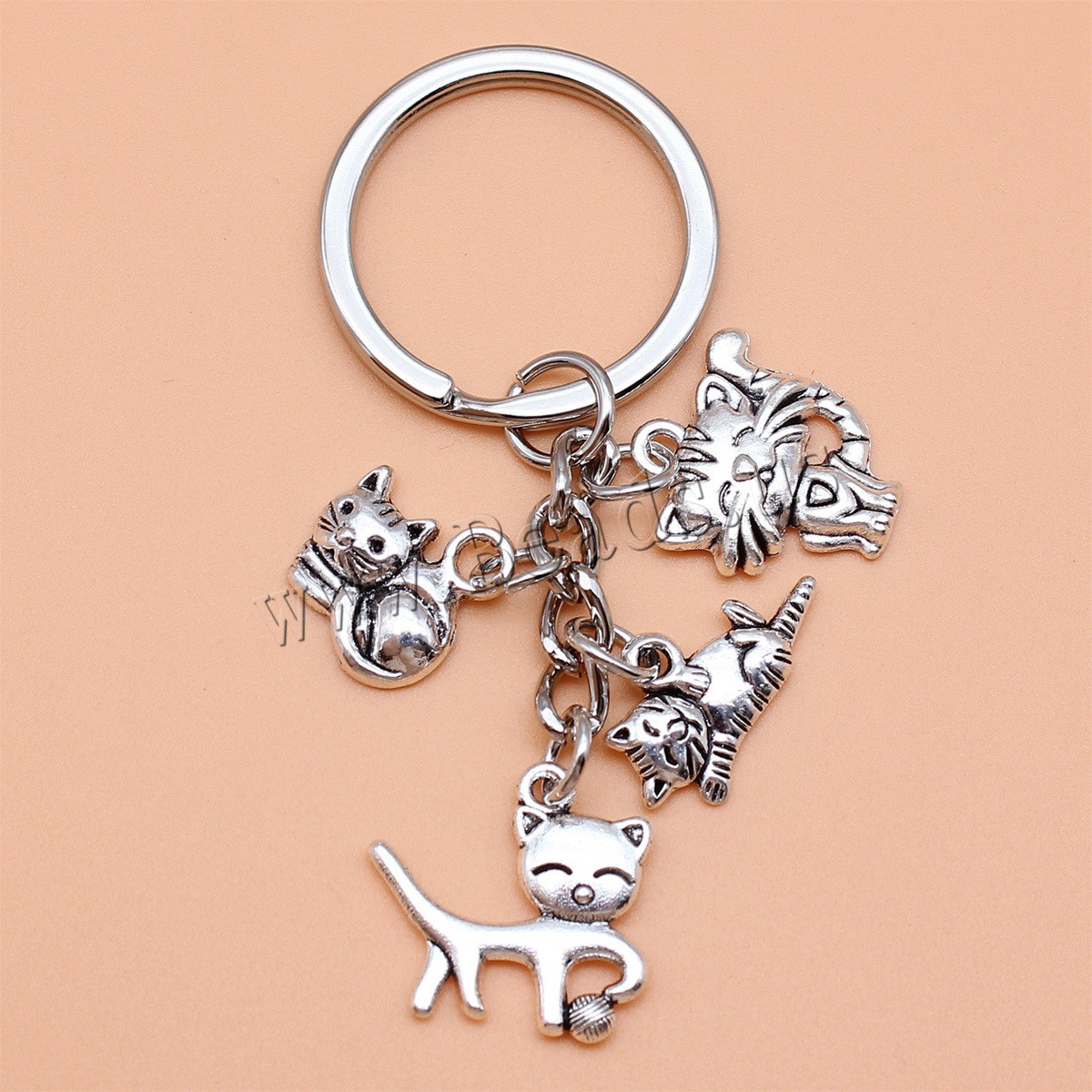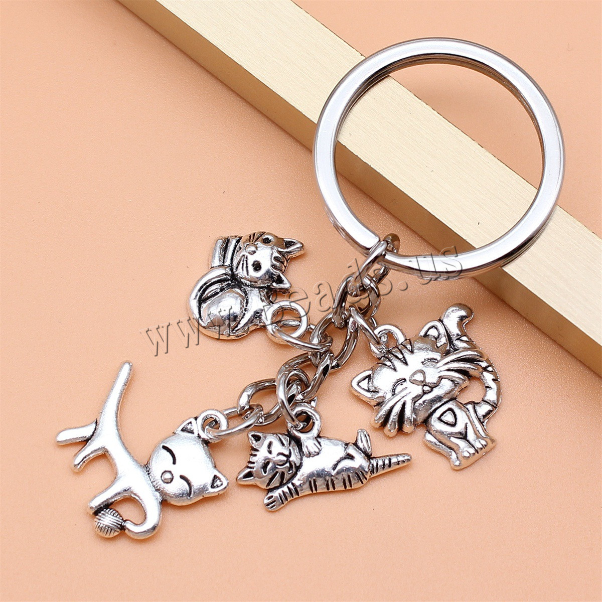 Sleutelhanger, 304 roestvrij staal, Kat, plated, mode sieraden, meer kleuren voor de keuze, Verkocht door PC