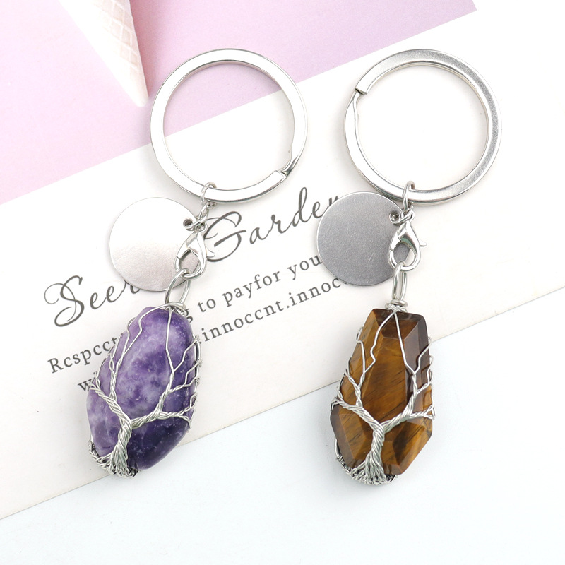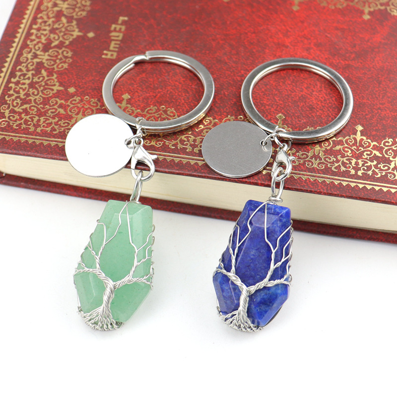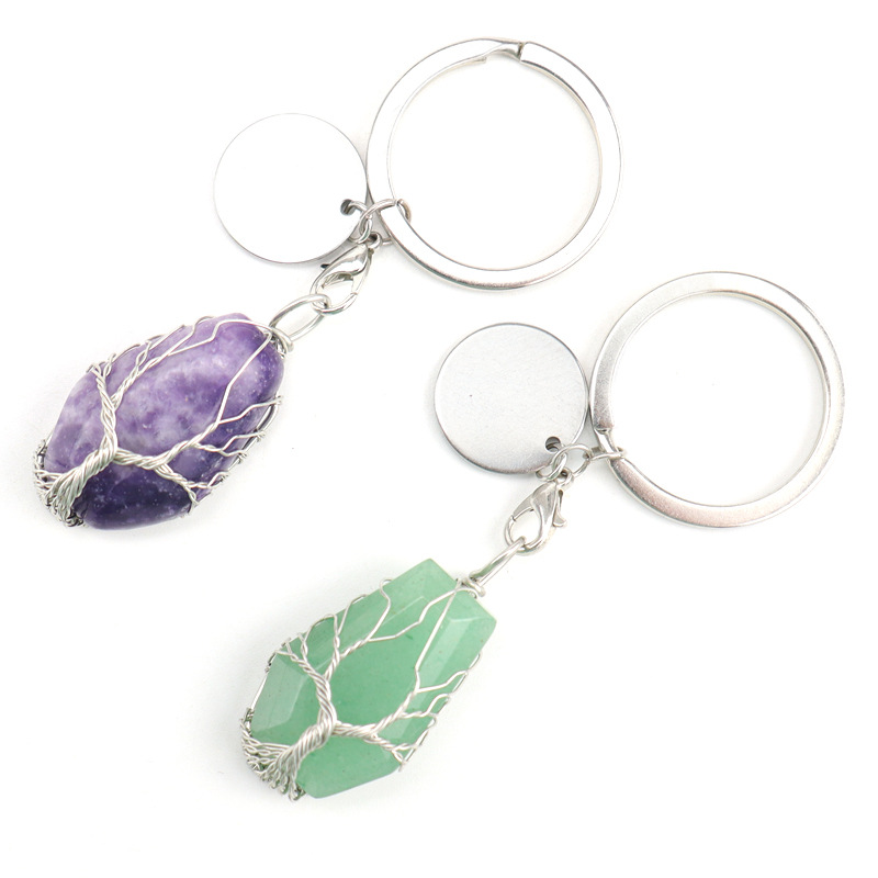 Sleutelhanger, Messing, met Natuursteen, silver plated, verschillende materialen voor de keuze, meer kleuren voor de keuze, nikkel, lood en cadmium vrij, 20x32mm, Verkocht door PC