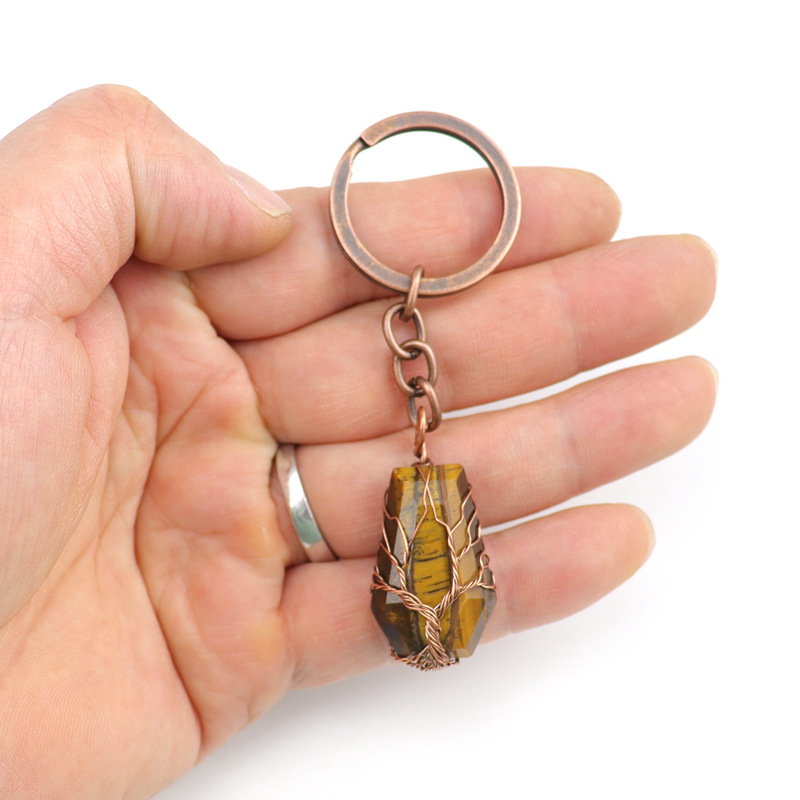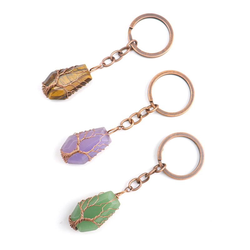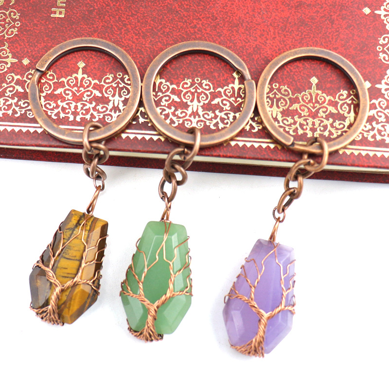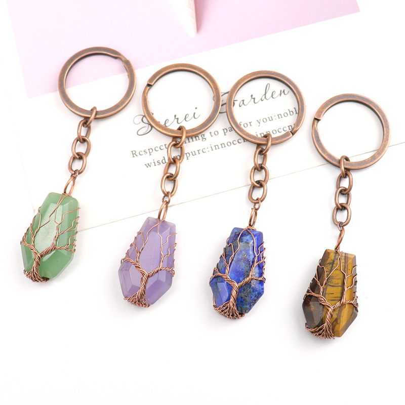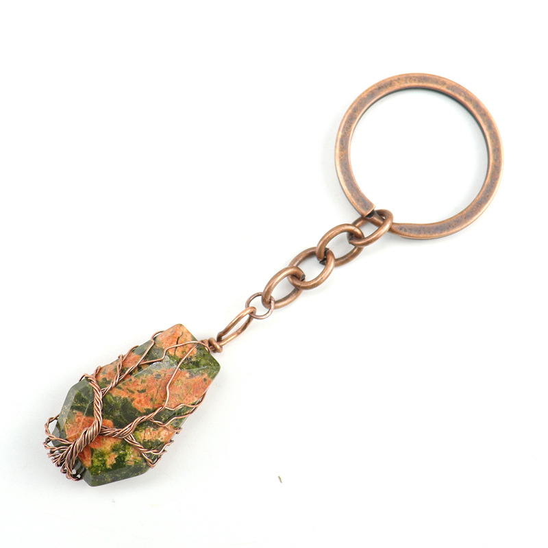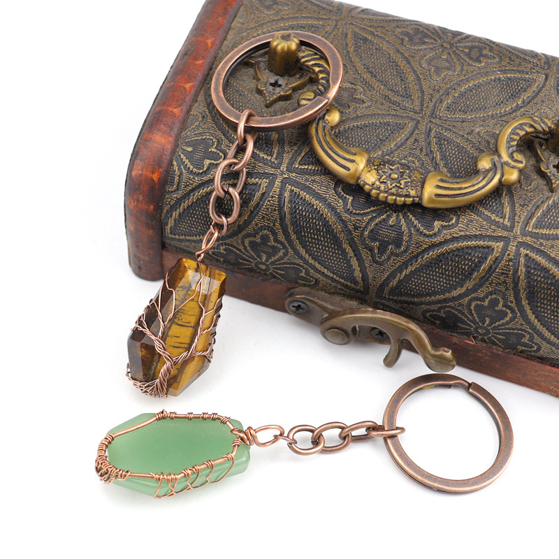 Sleutelhanger, Messing, met Natuursteen, plated, verschillende materialen voor de keuze, meer kleuren voor de keuze, nikkel, lood en cadmium vrij, 20x32mm, Verkocht door PC