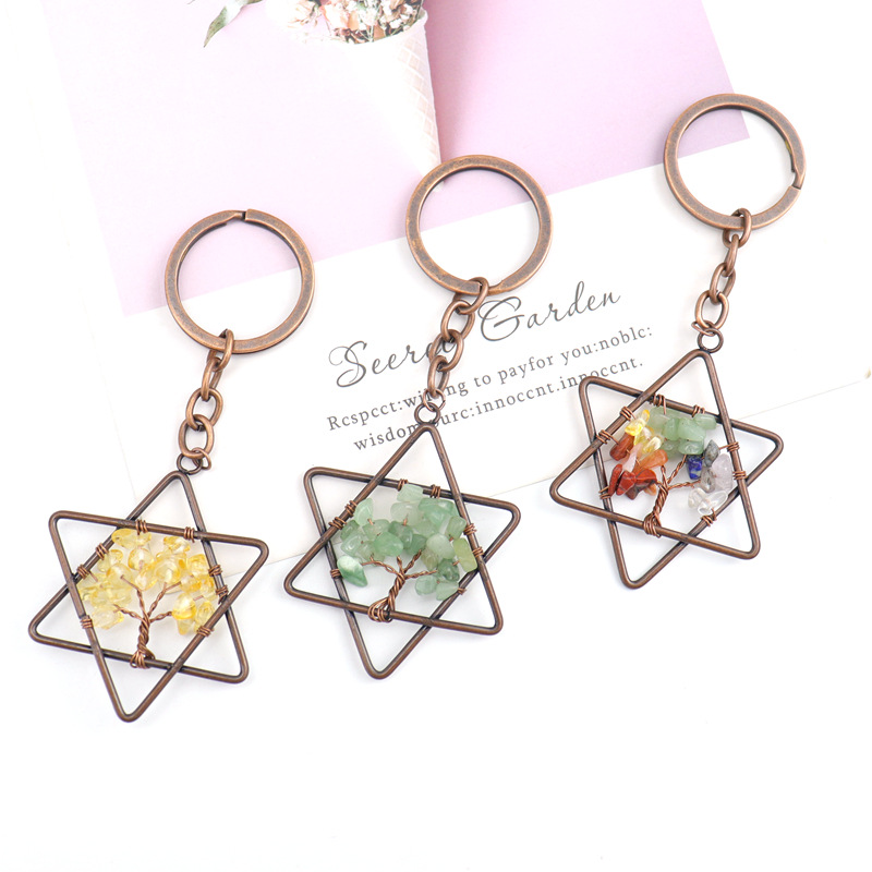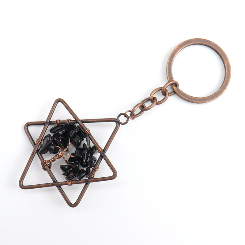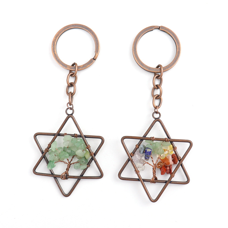 Sleutelhanger, Messing, Hexagram, plated, verschillende materialen voor de keuze, meer kleuren voor de keuze, nikkel, lood en cadmium vrij, 50mm, Verkocht door PC