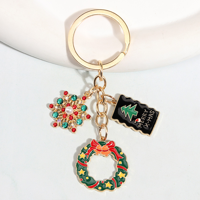 Sleutelhanger, Zinc Alloy, gold plated, Kerstontwerp & uniseks & verschillende stijlen voor de keuze & glazuur & met strass, 30x90mm, Verkocht door PC