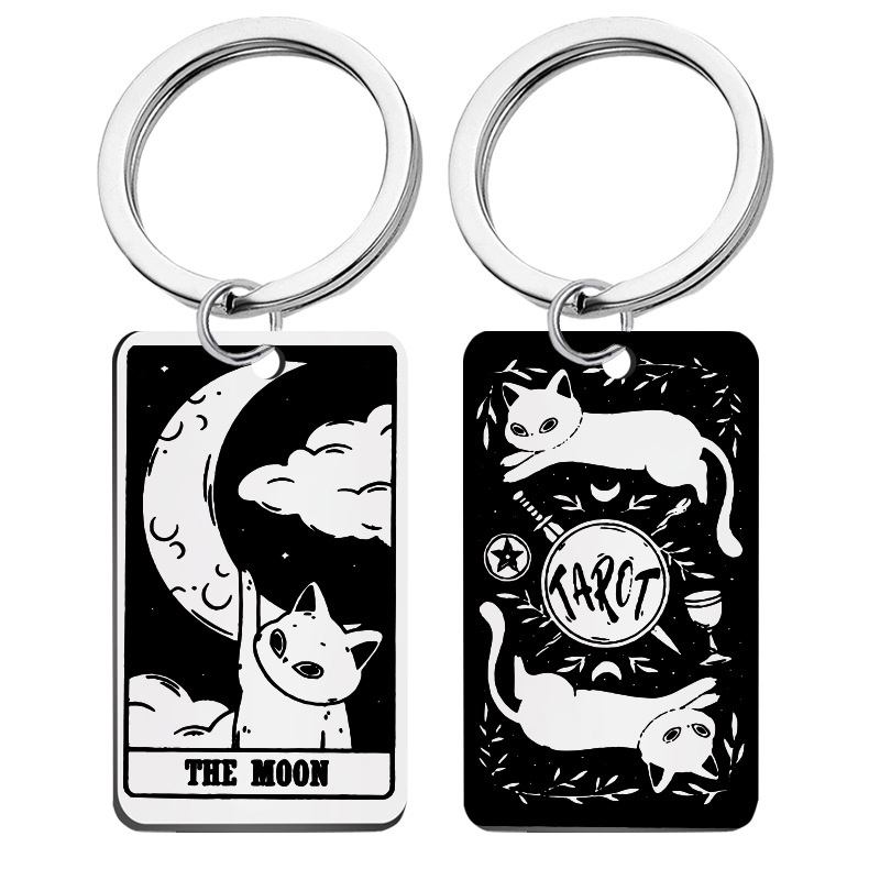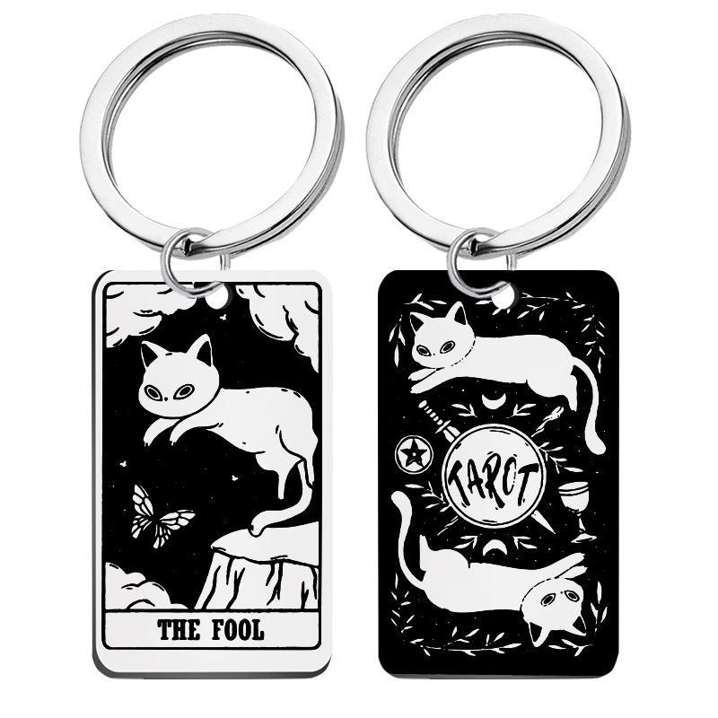 Sleutelhanger, 304 roestvrij staal, Kat, uniseks & verschillende stijlen voor de keuze, 70mm, Verkocht door PC