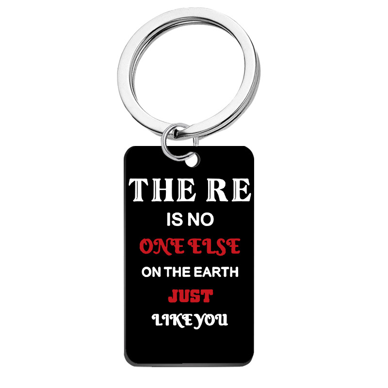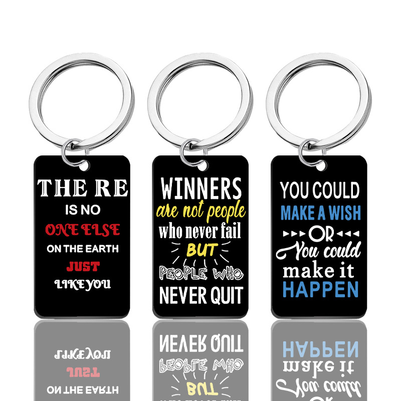 Sleutelhanger, 304 roestvrij staal, Rechthoek, uniseks & verschillende stijlen voor de keuze & met brief patroon, 70mm, Verkocht door PC