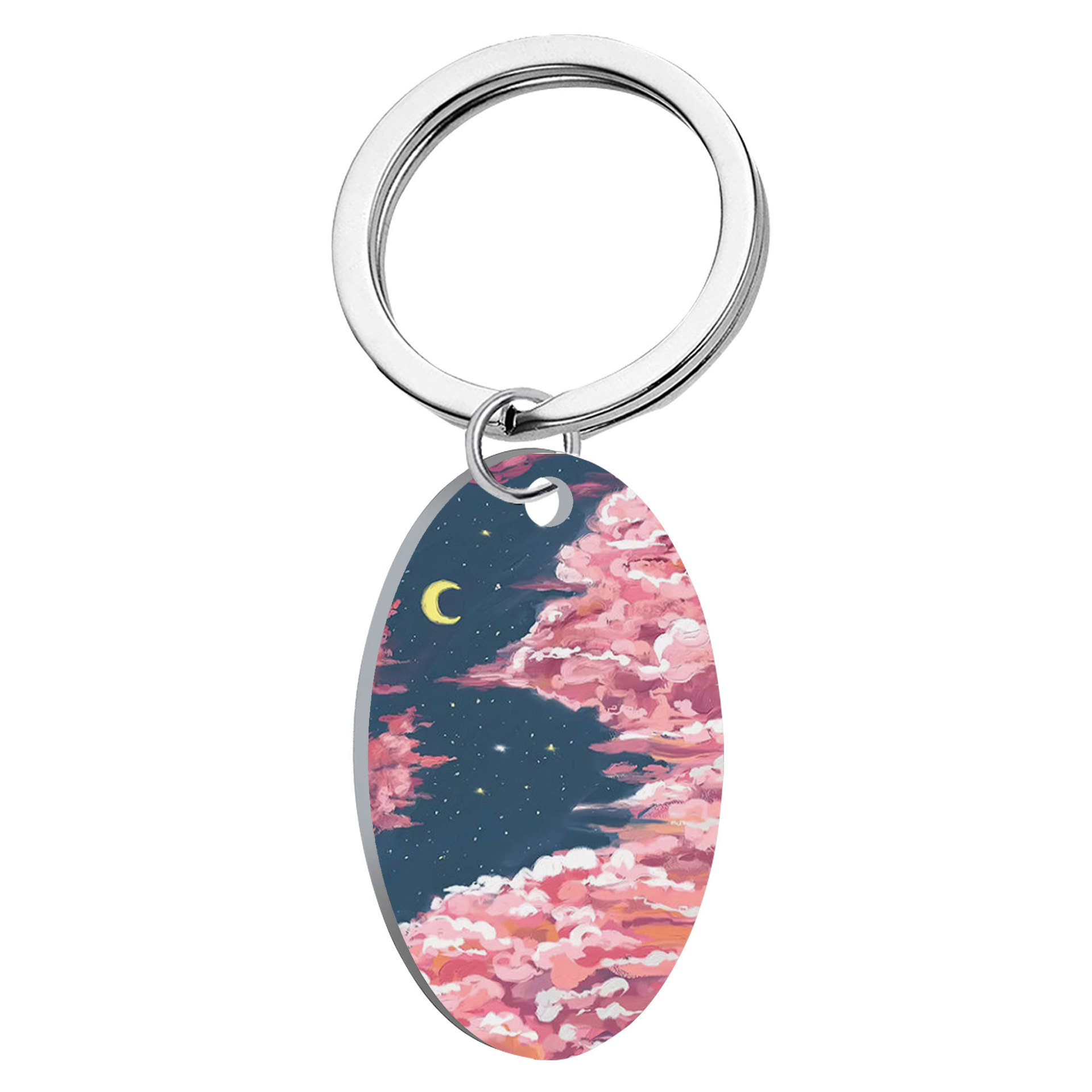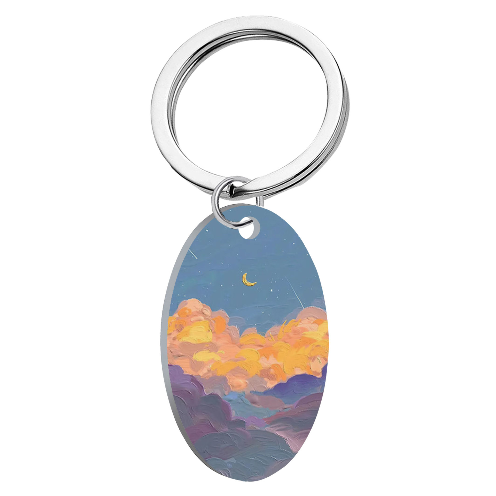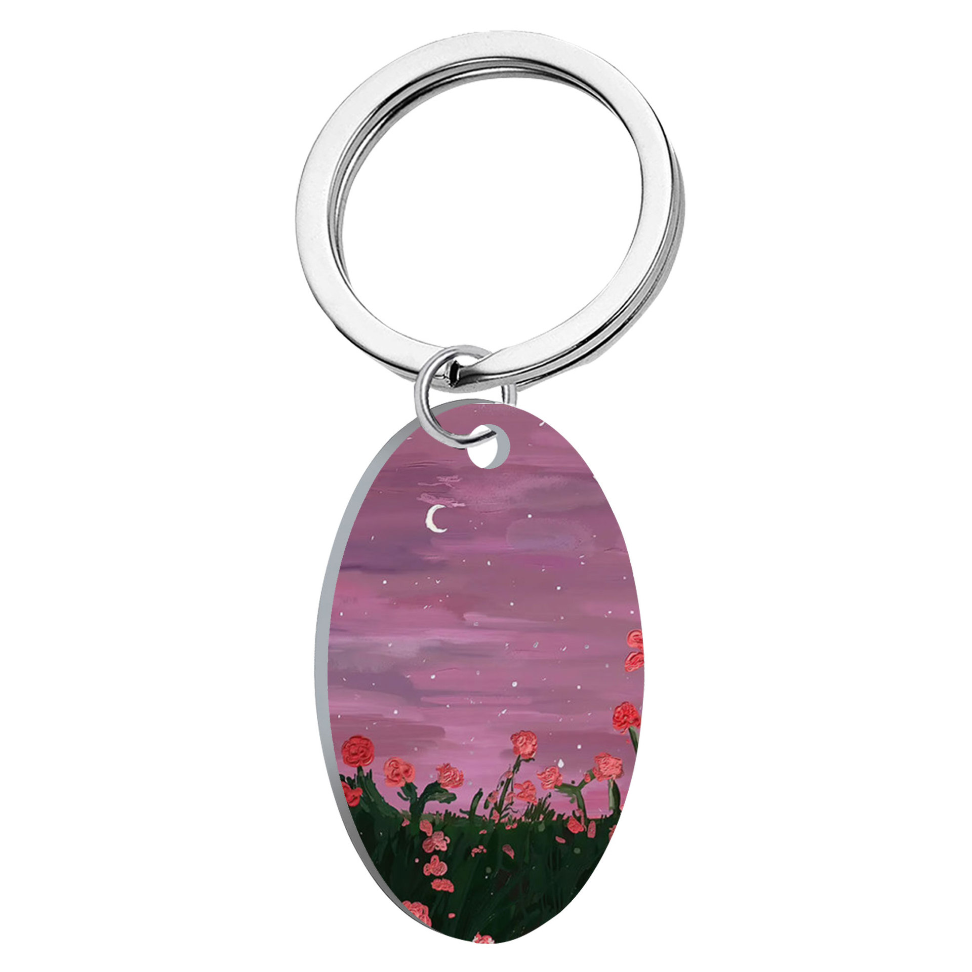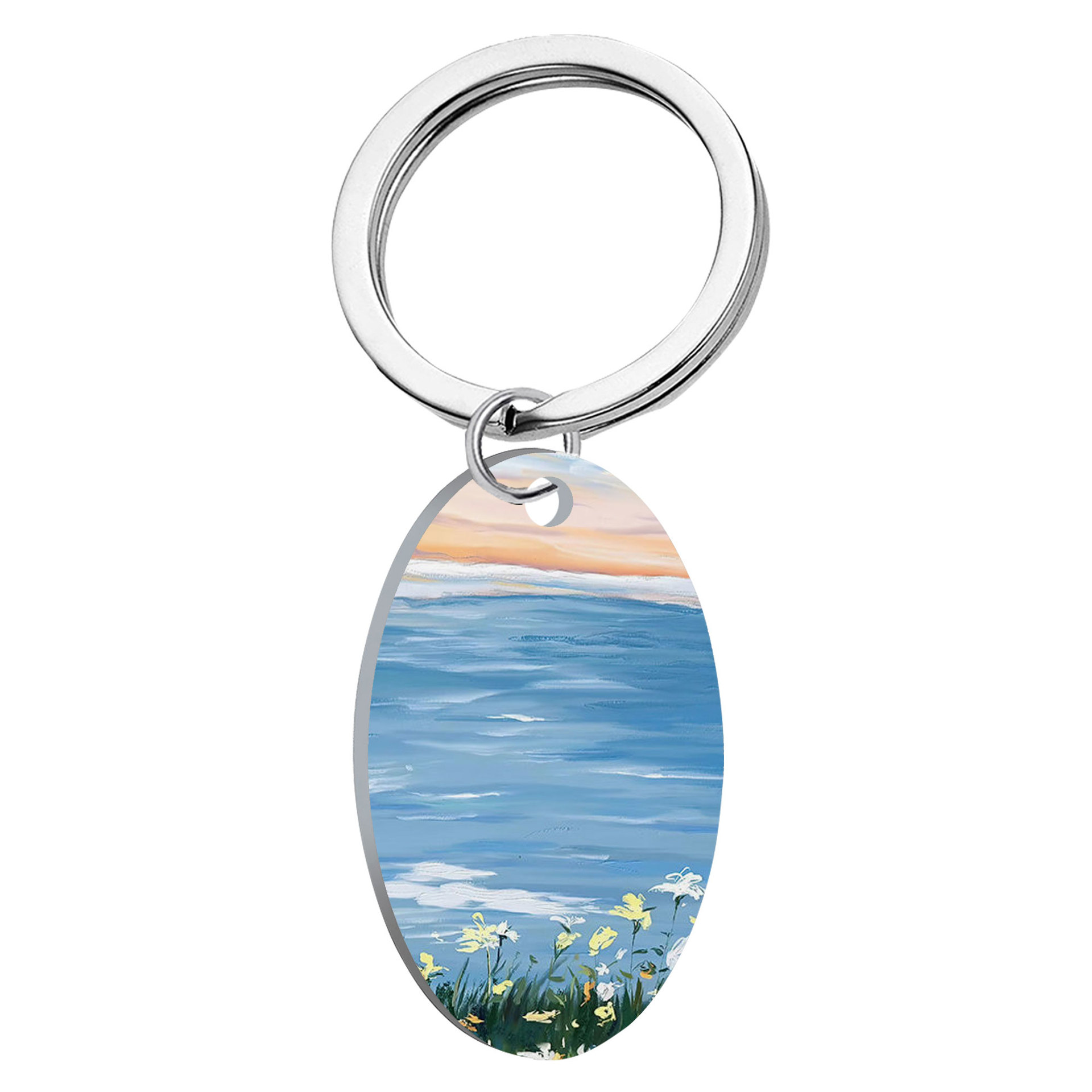 Sleutelhanger, 304 roestvrij staal, Ovaal, het drukken, uniseks & verschillende ontwerpen voor de keuze, 70x50mm, Verkocht door PC