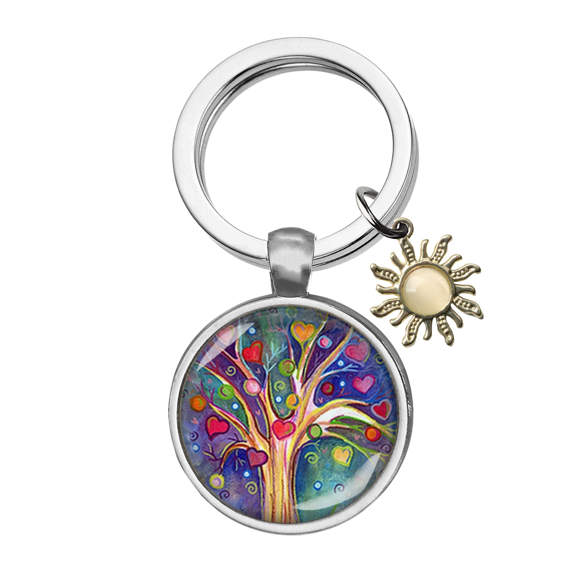 Sleutelhanger, Glas, met 304 roestvrij staal, Ronde, uniseks & verschillende ontwerpen voor de keuze, 70x50mm, Verkocht door PC