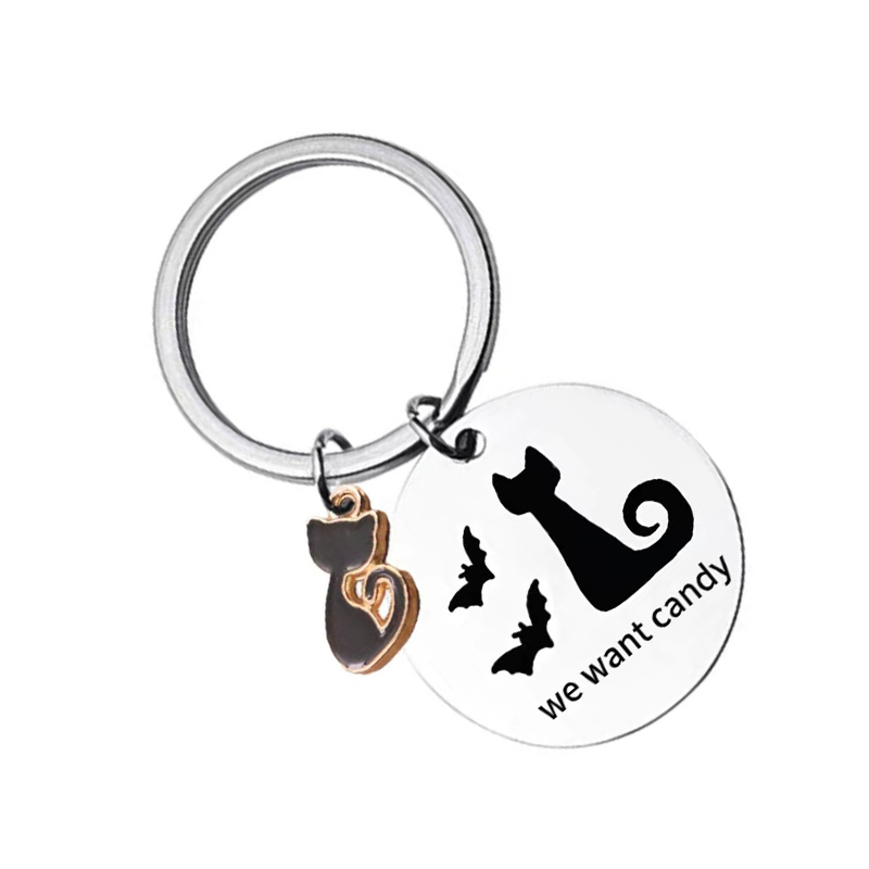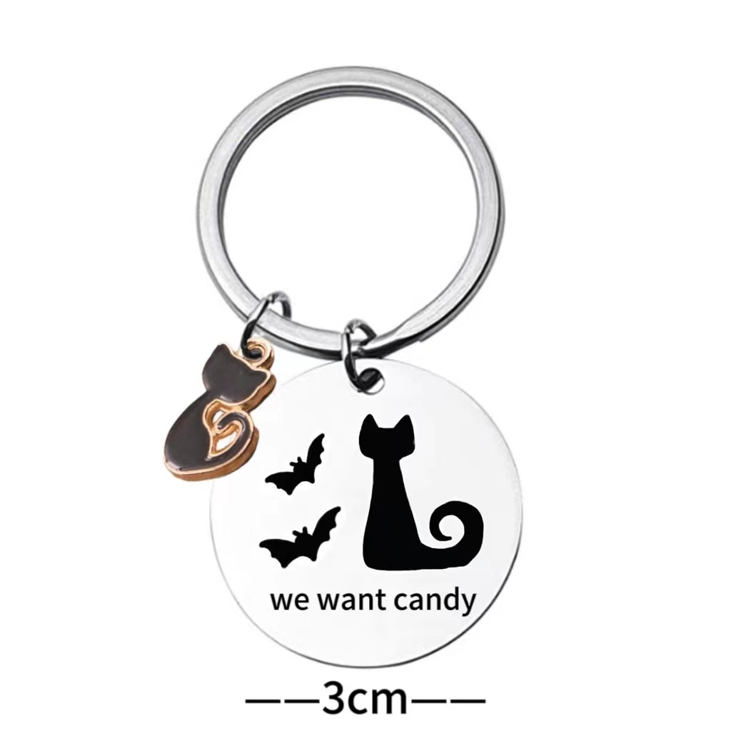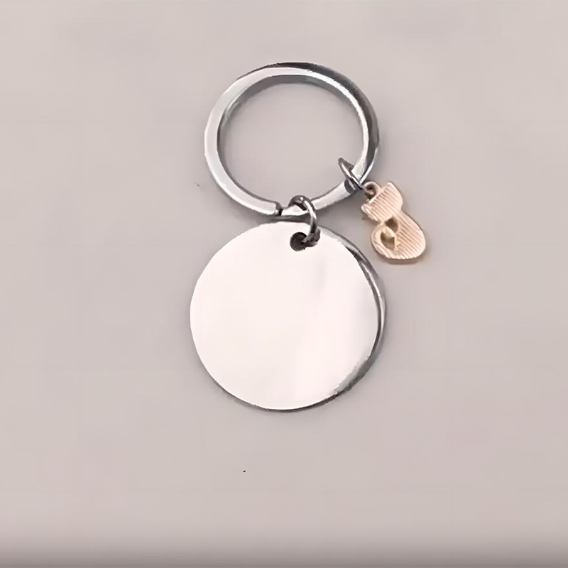 Sleutelhanger, 304 roestvrij staal, Rond plat, met brief patroon & voor vrouw & glazuur, 30mm, Verkocht door PC