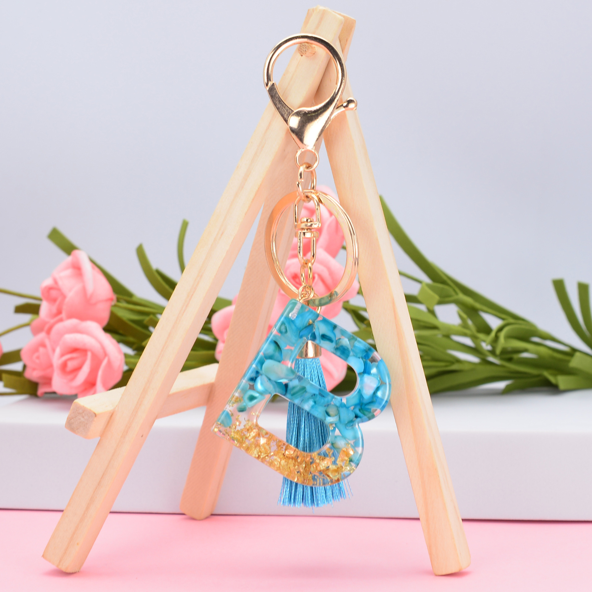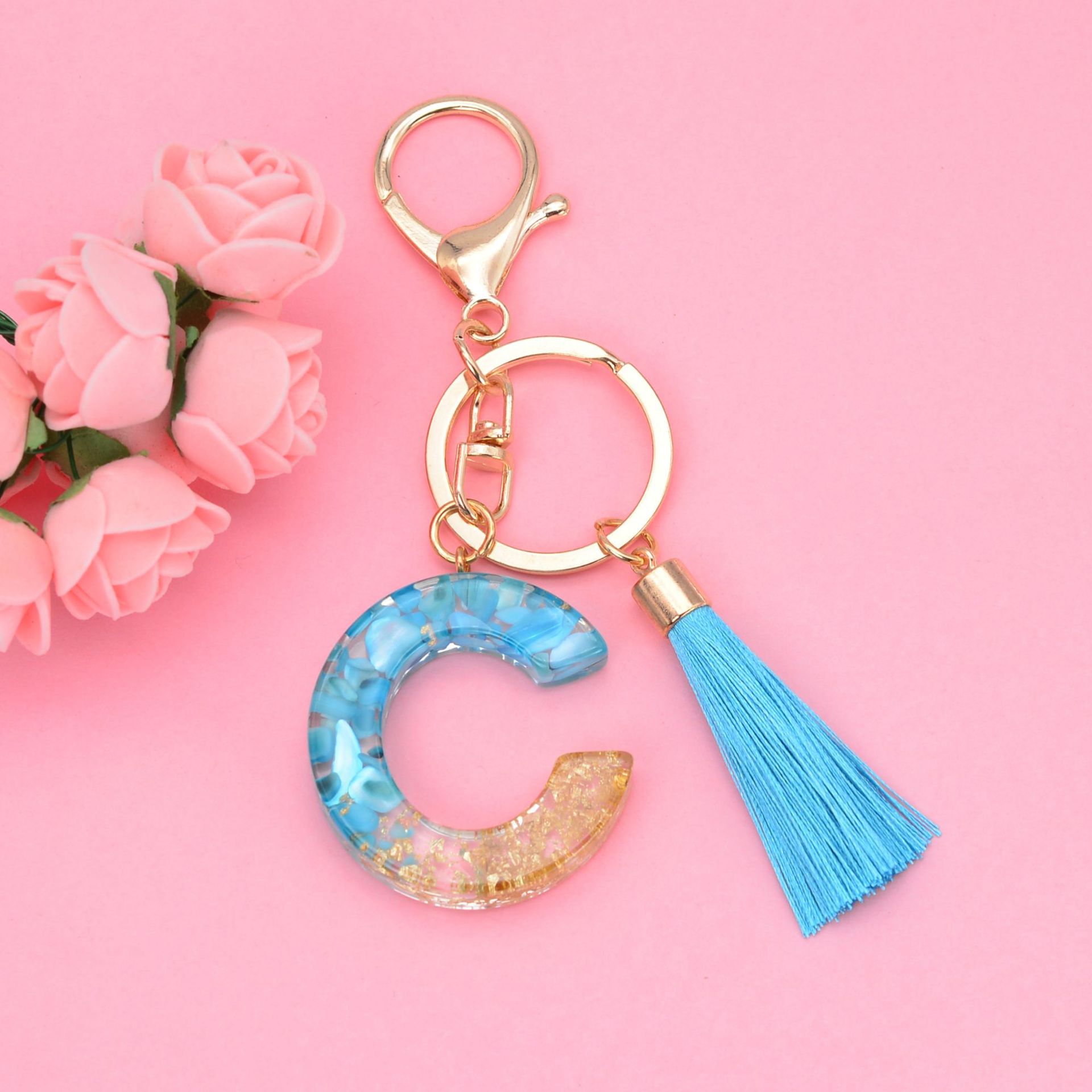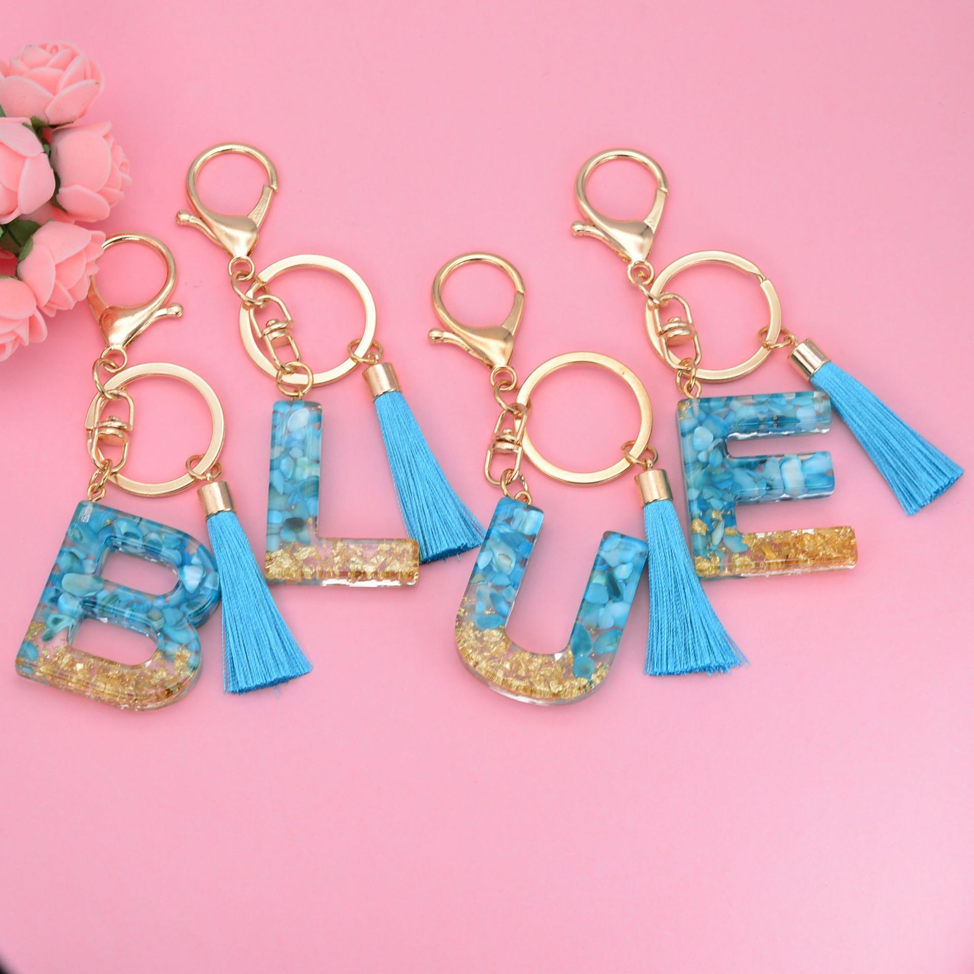 Sleutelhanger, Hars, met Zinc Alloy, De Brief van het alfabet, epoxy sticker, uniseks & verschillende stijlen voor de keuze, blauw, 115mm, Verkocht door PC