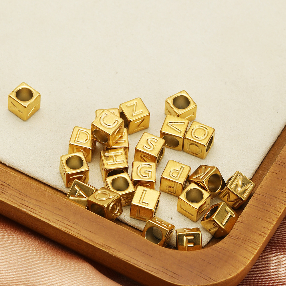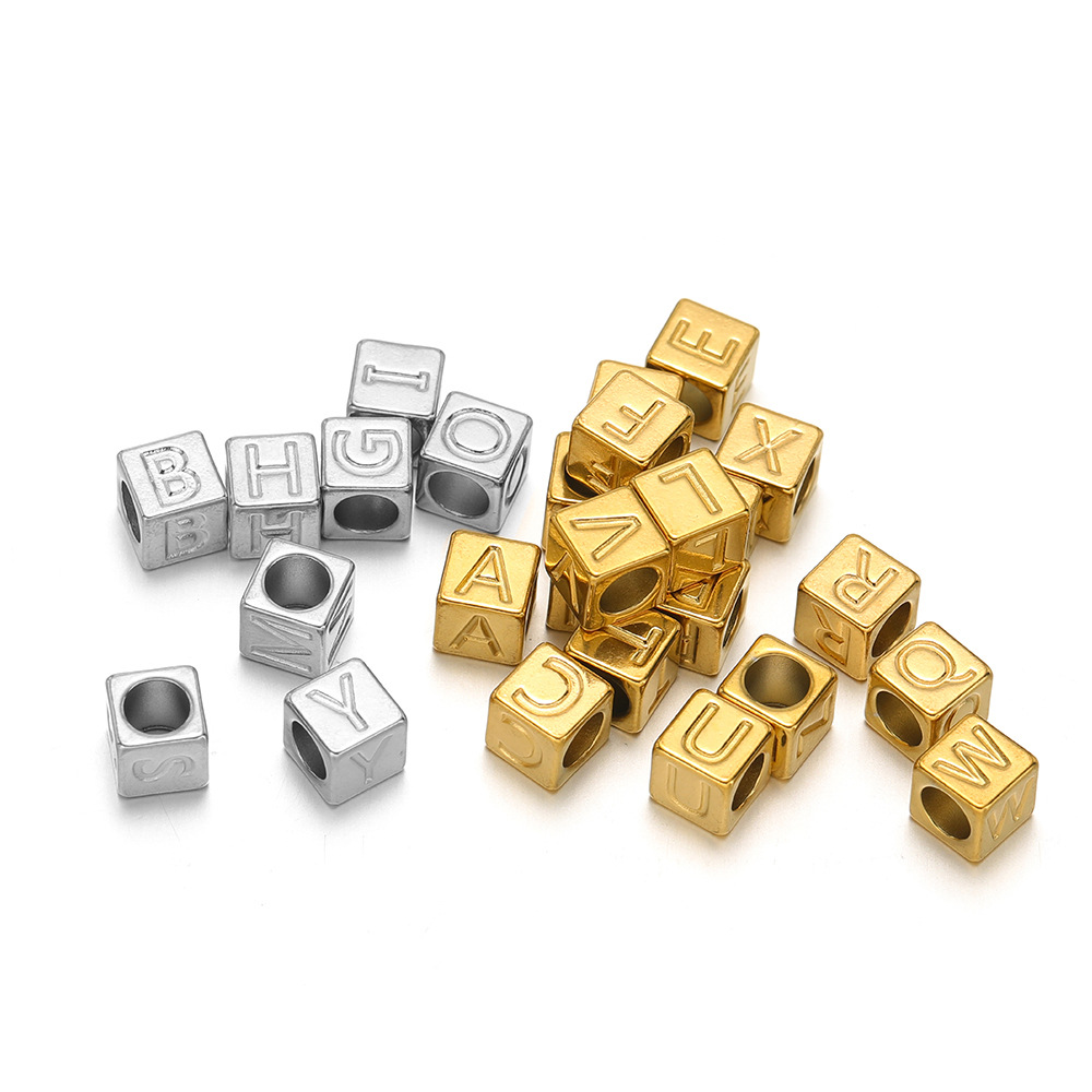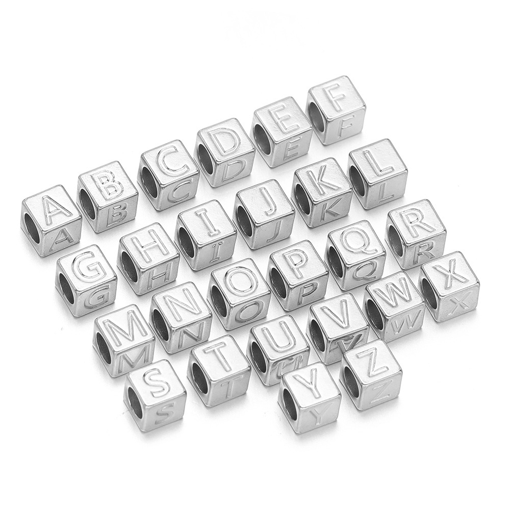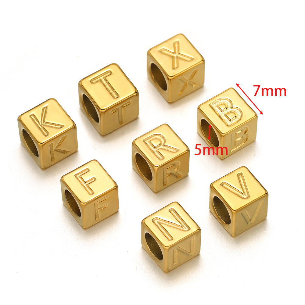 Rustfrit stål Perler, 304 roestvrij staal, Kubus, brieven zijn van A tot Z & DIY, meer kleuren voor de keuze, 7mm, Gat:Ca 5mm, Ca 100pC's/Bag, Verkocht door Bag