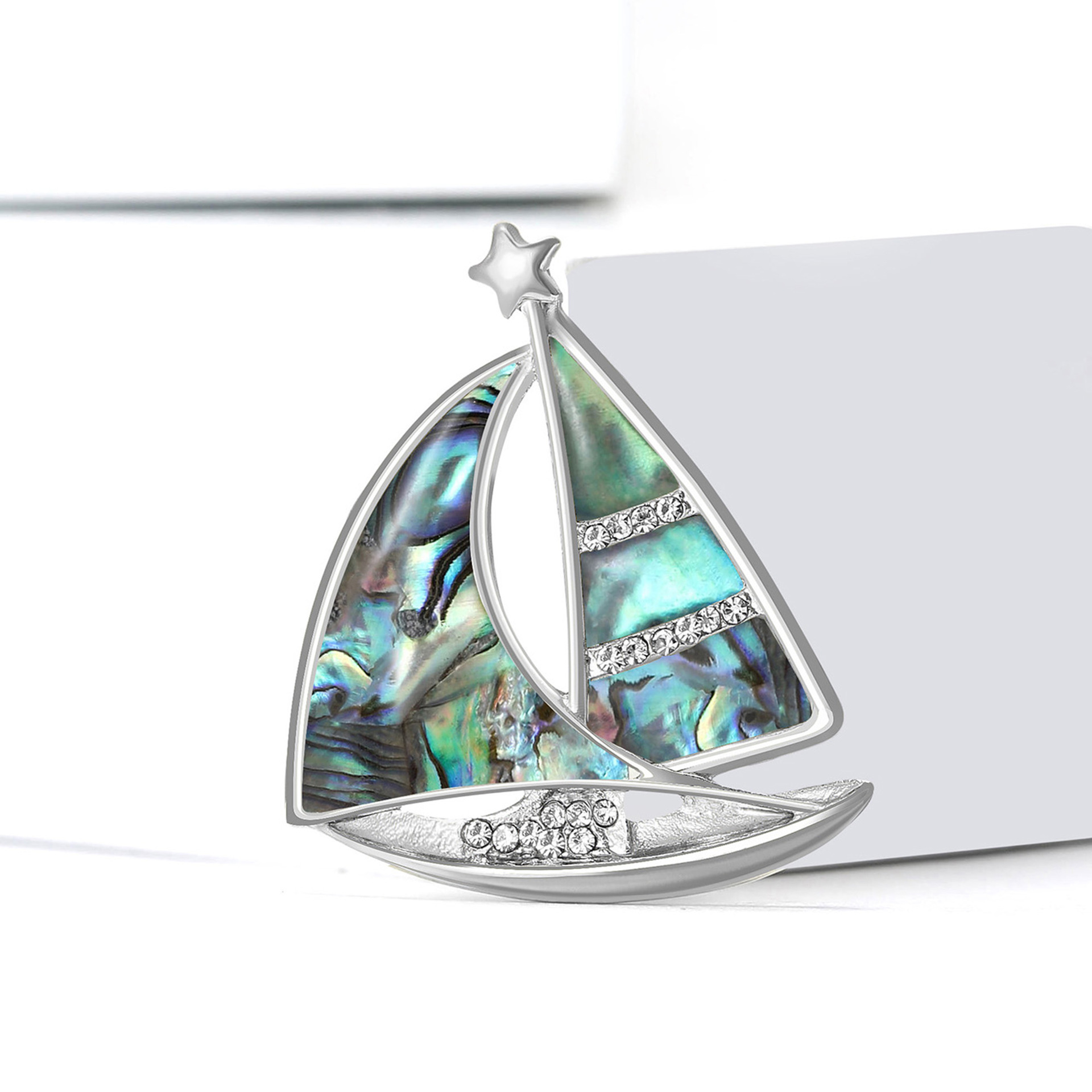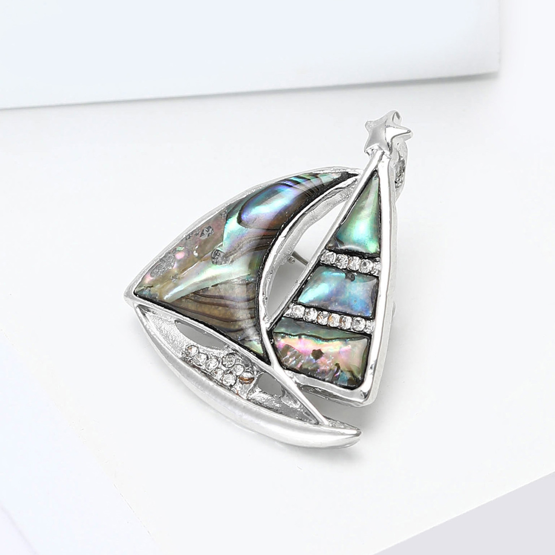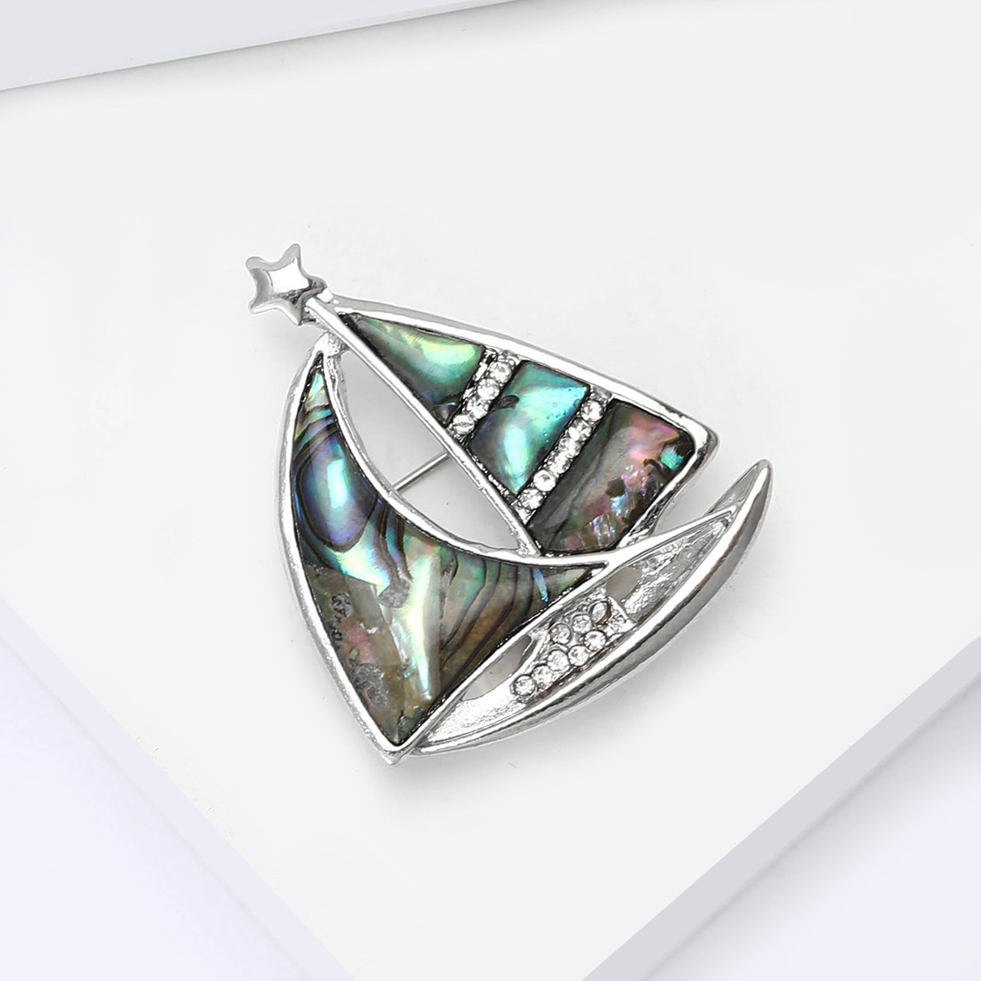 Shell Broche, Schelp, met Zinc Alloy, Schip, mode sieraden & met strass, gemengde kleuren, Verkocht door PC