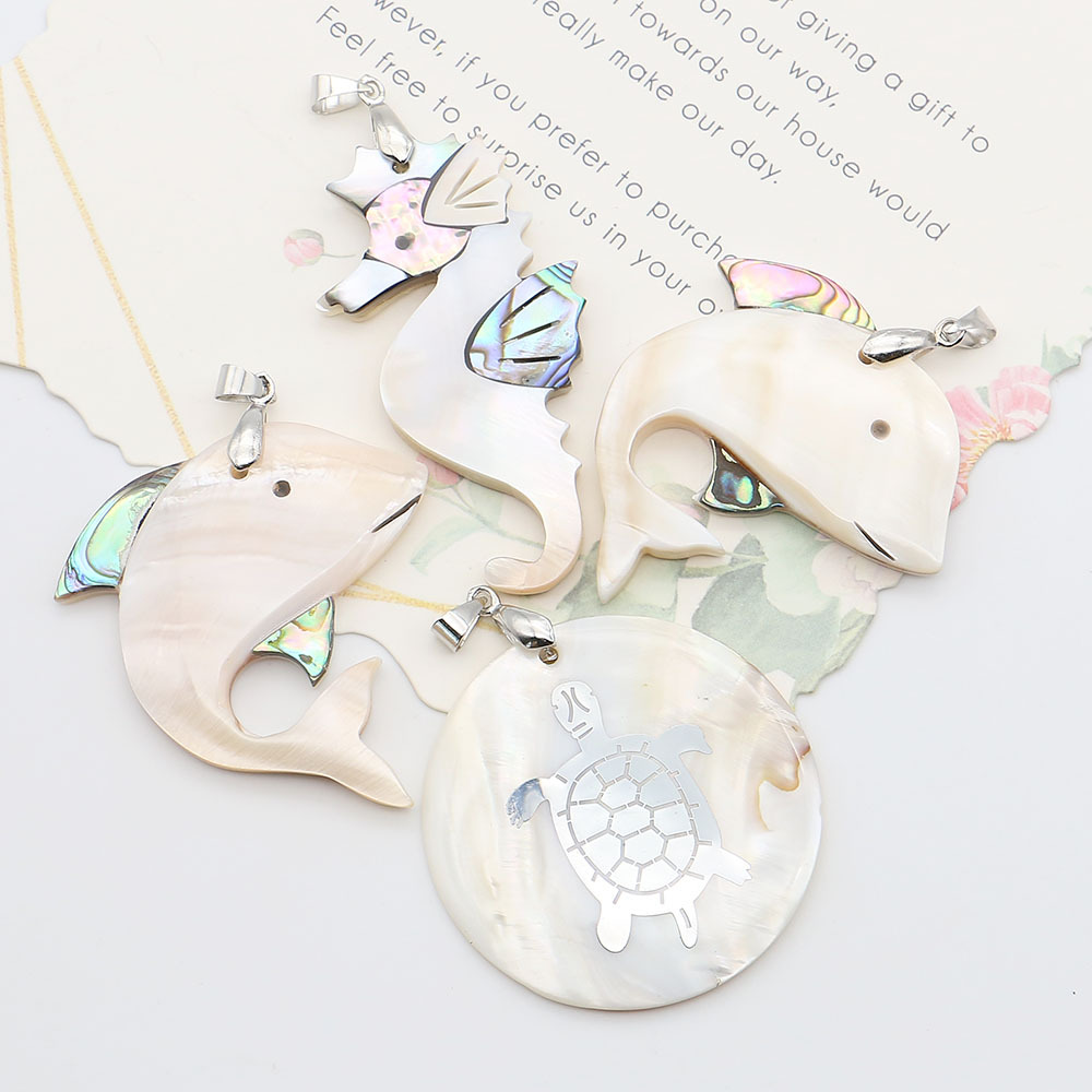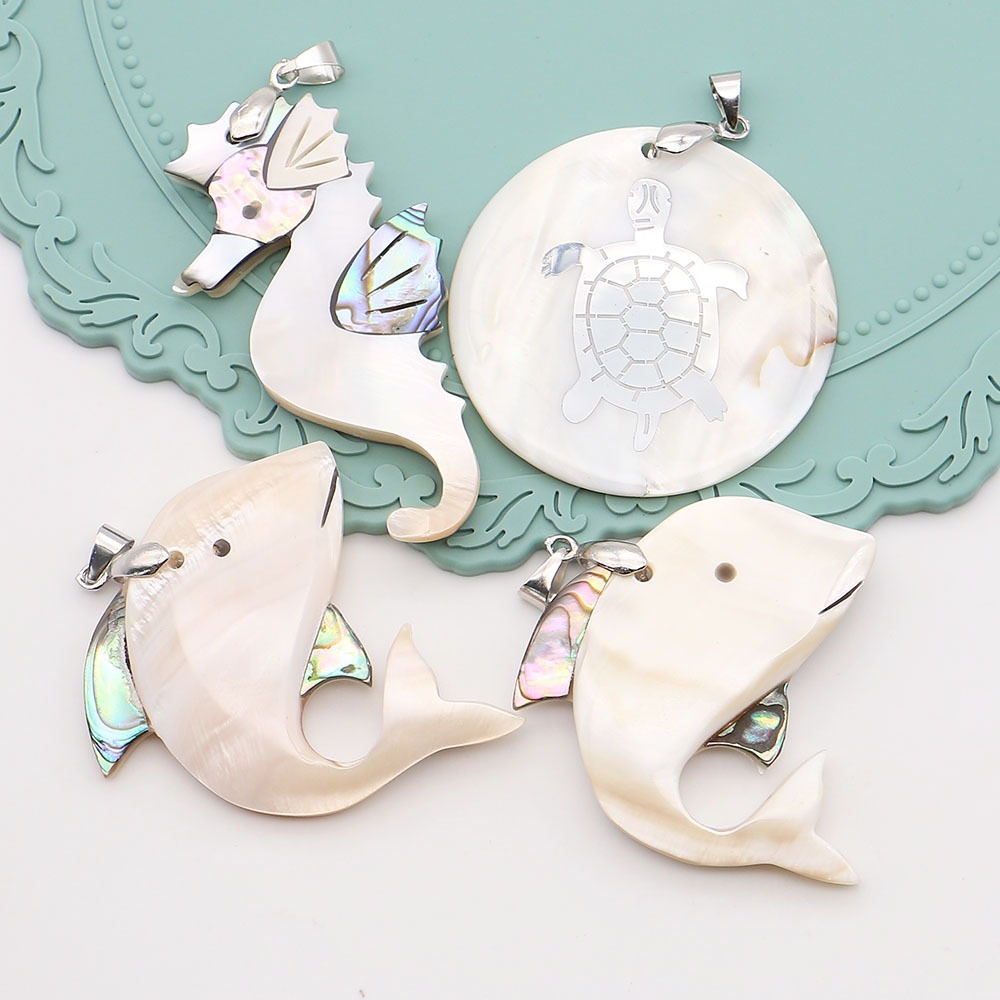 1:Dolphin pendant 43x46mm2:Dolphin pendant 44x56mm3:Seahorse pendant 30x59mm4:Round turtle pendant, 45x45mm5:Dolphin necklace 43x46mm6:Dolphin necklace, 44x56mm7:Seahorse necklace, 30x59mm8:Round turtle necklace, 45x45mm