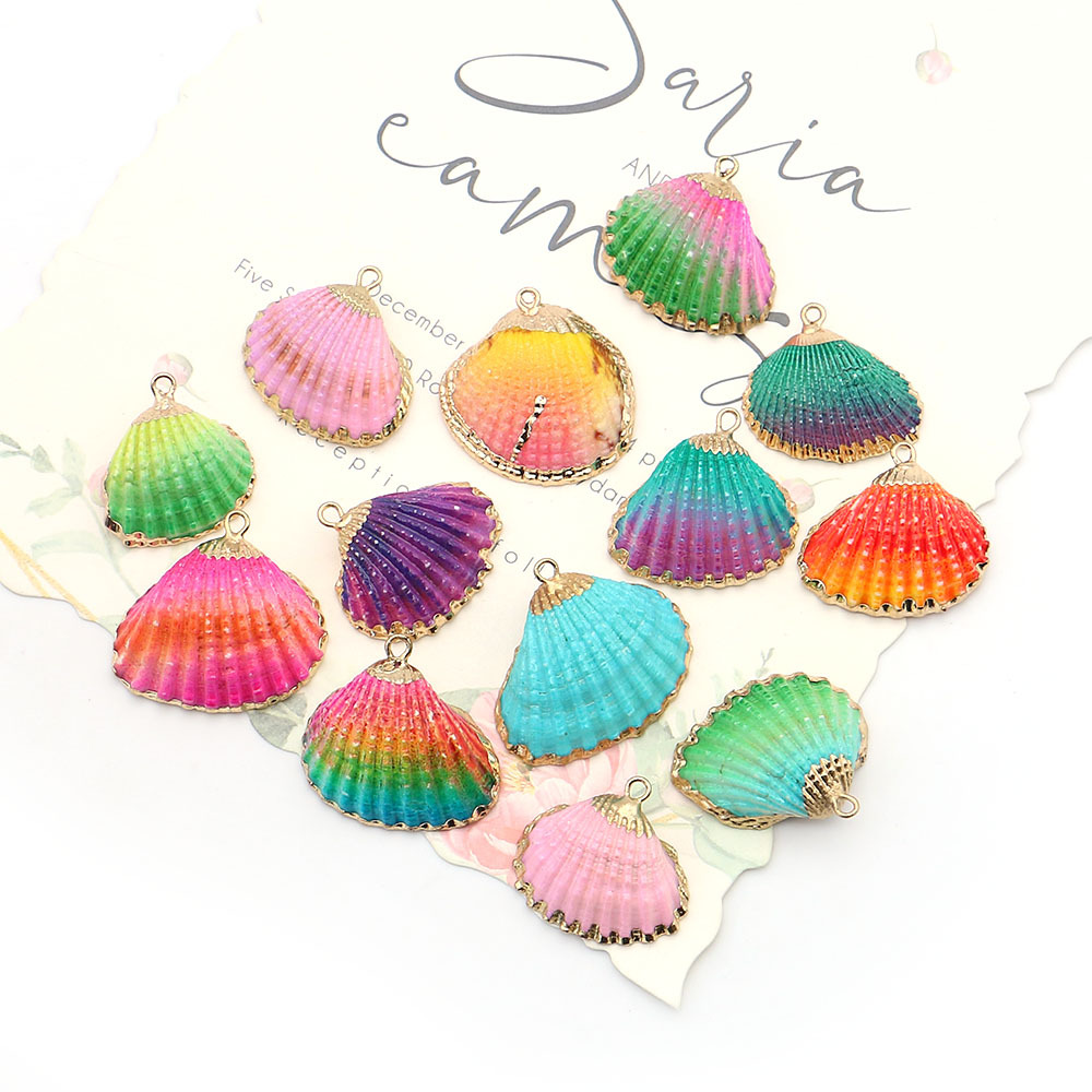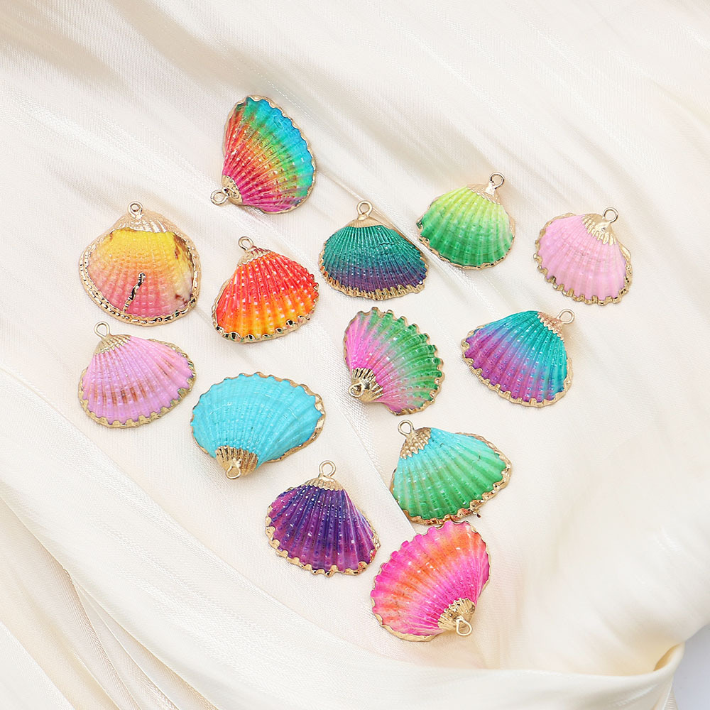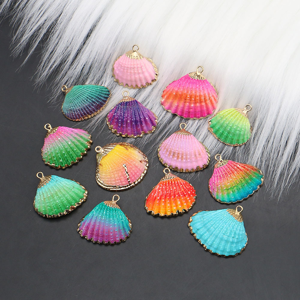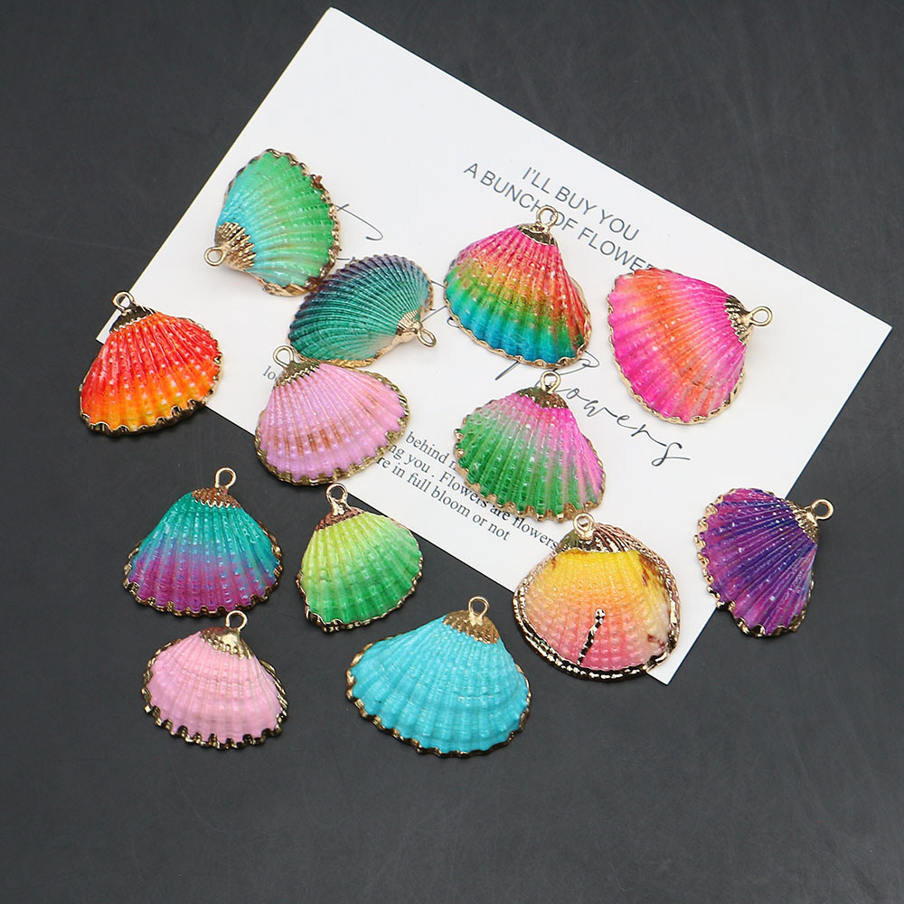 Shell Hangers, Schelp, met Messing, Schelp, plated, geverfd & DIY, meer kleuren voor de keuze, 22x22mm-31x29mm, Verkocht door PC