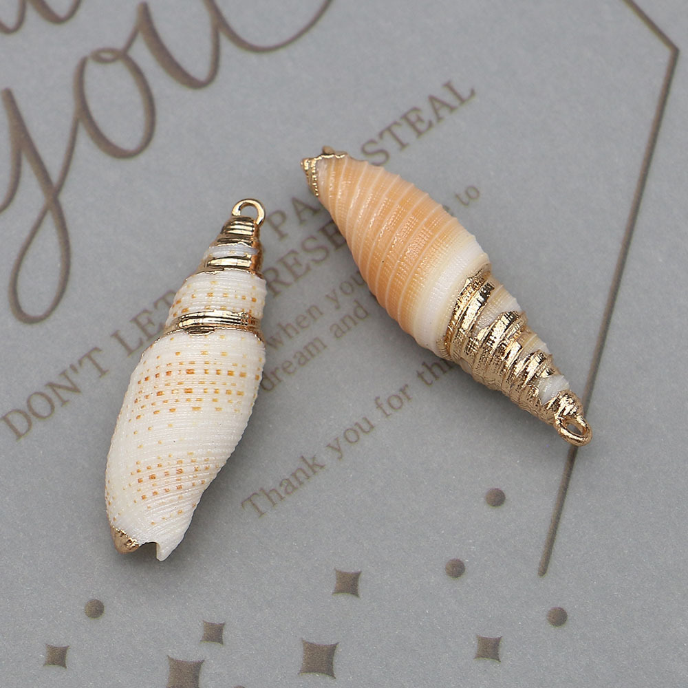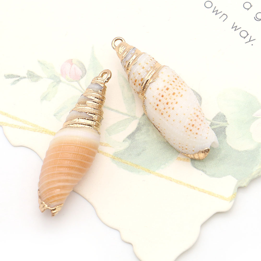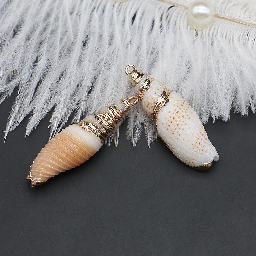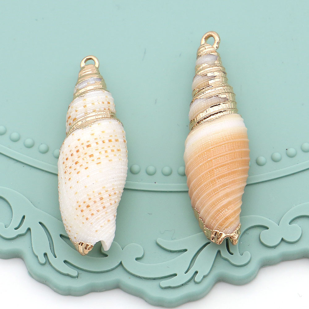 Shell Hangers, Schelp, met Messing, Schelp, plated, DIY, gemengde kleuren, 11x39mm-12x37mm, Verkocht door PC