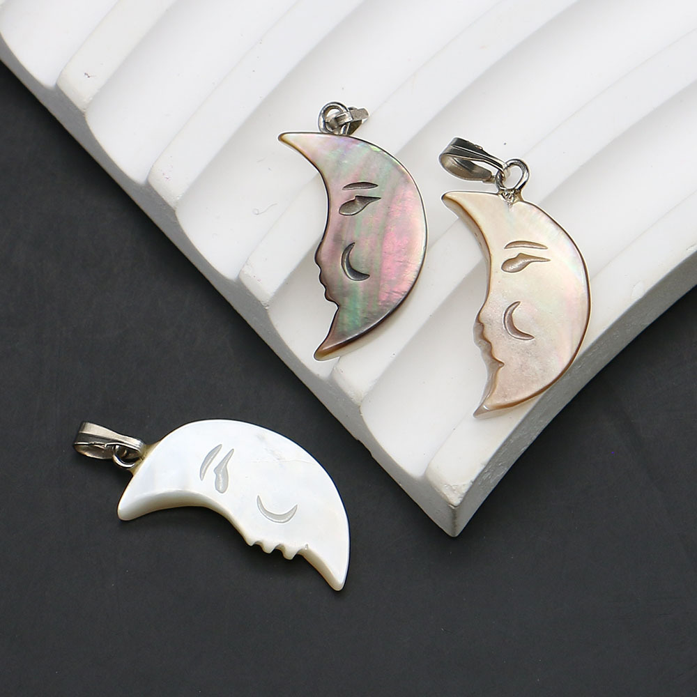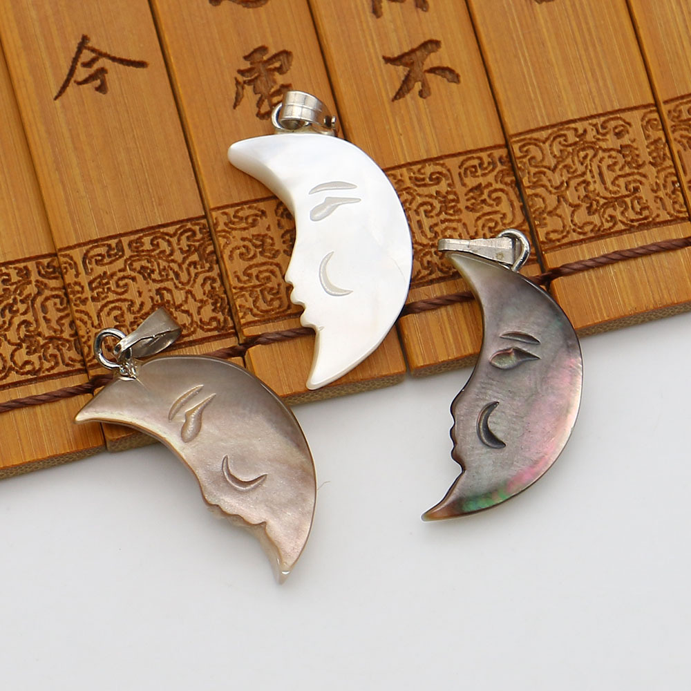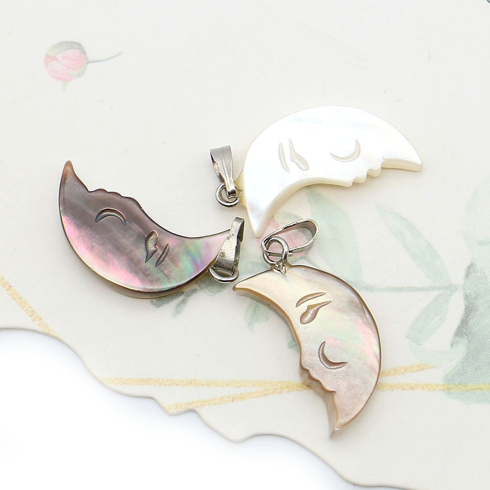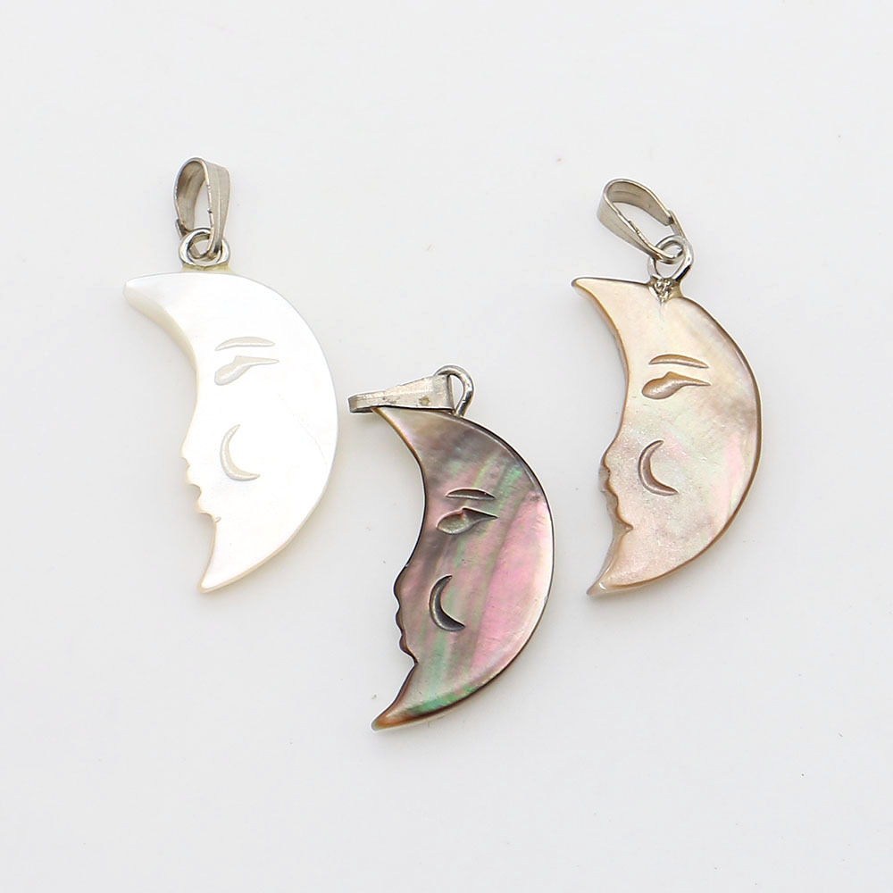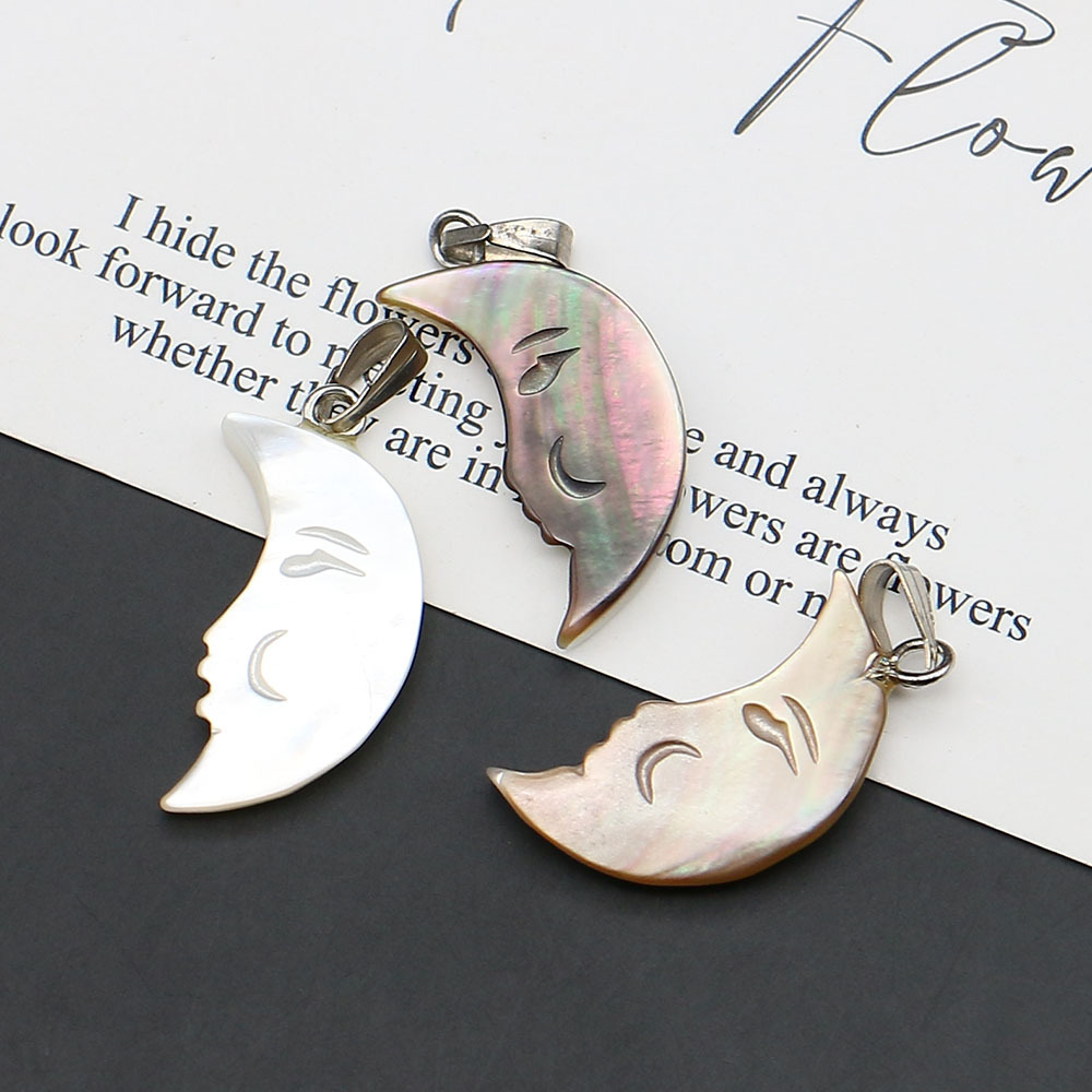 Shell Hangers, Zwart + lip + shell, met Wax & Ijzer, Maan, DIY, meer kleuren voor de keuze, 11x23mm, Verkocht door PC