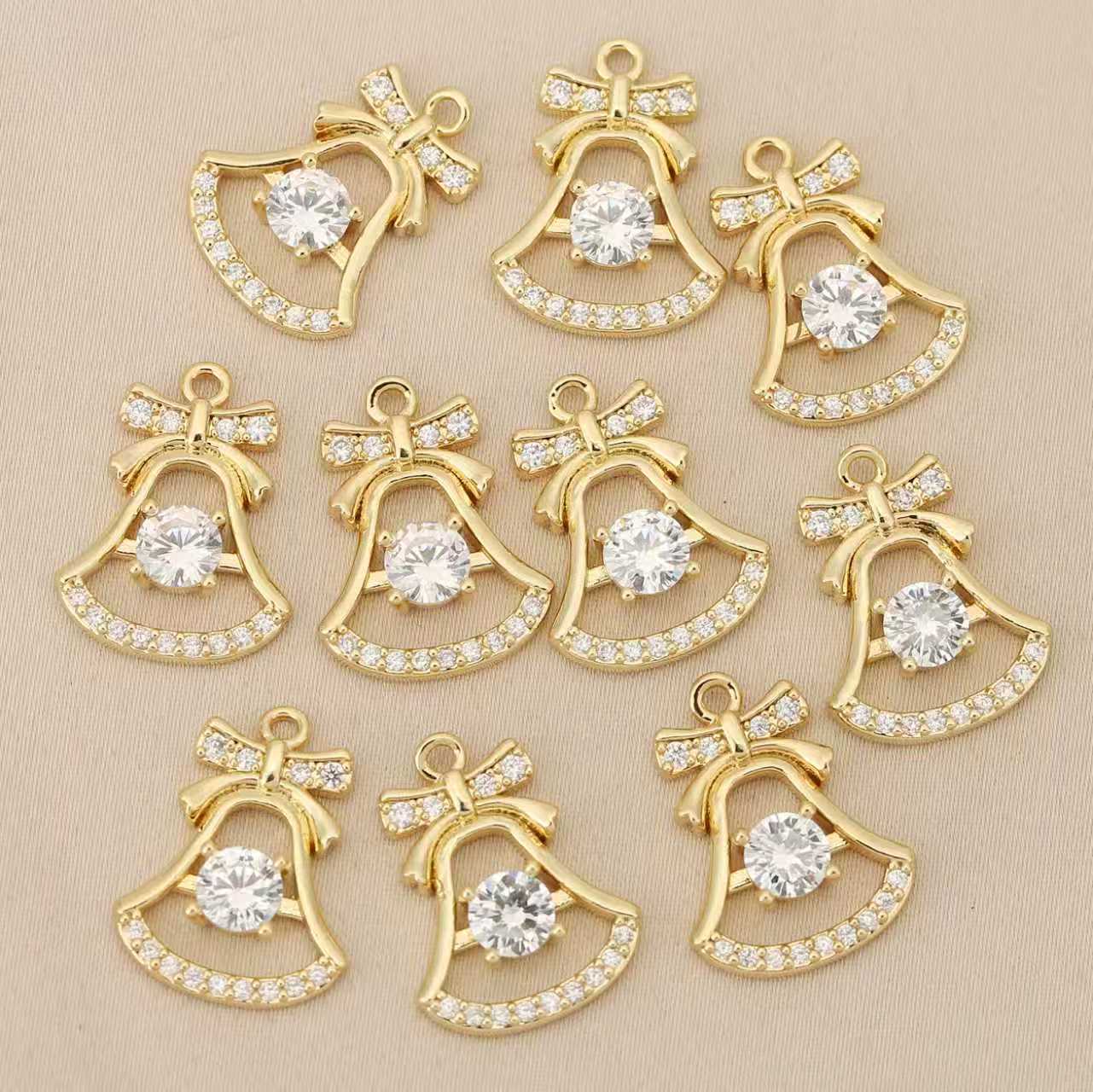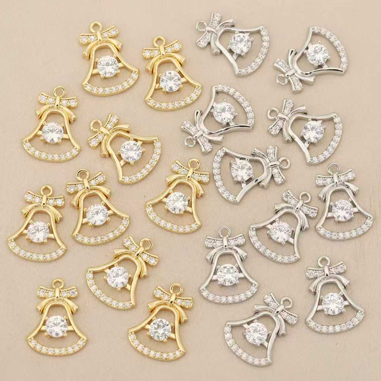 Strass messing hangers, Christmas Bell, plated, DIY & met strass, meer kleuren voor de keuze, nikkel, lood en cadmium vrij, 10pC's/Bag, Verkocht door Bag