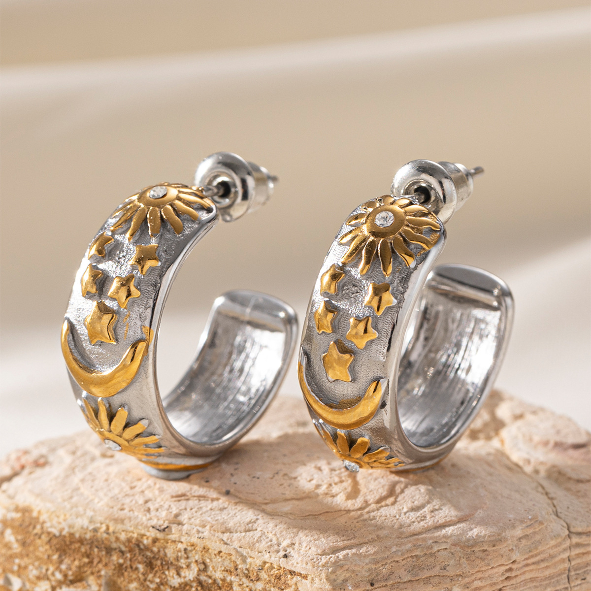 Titanium Staal Earring, gold plated, mode sieraden & met strass, meer kleuren voor de keuze, Verkocht door pair
