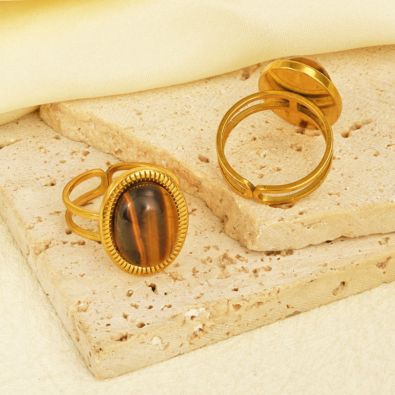 Vinger Ring in edelstaal, 304 roestvrij staal, met Edelsteen, gold plated, voor vrouw, meer kleuren voor de keuze, Verkocht door PC