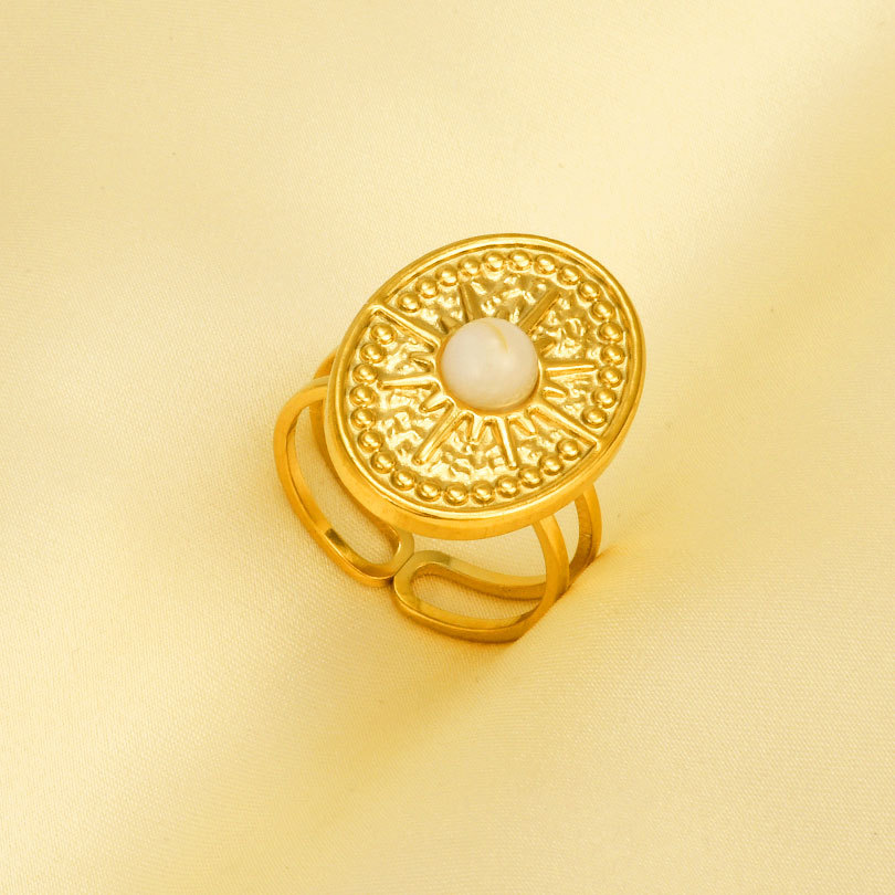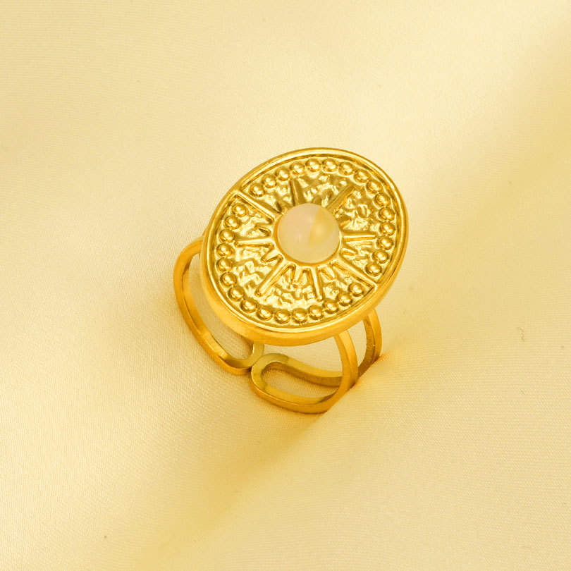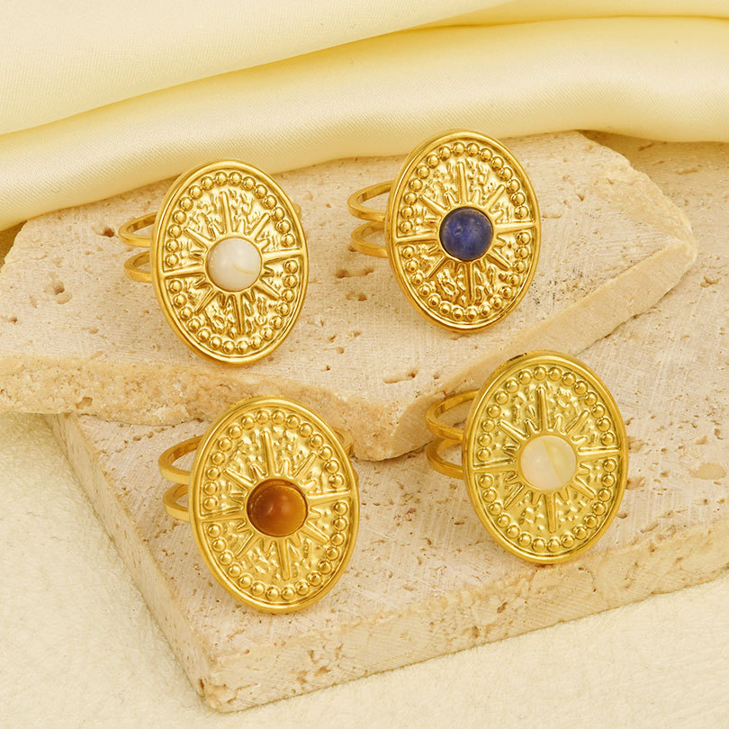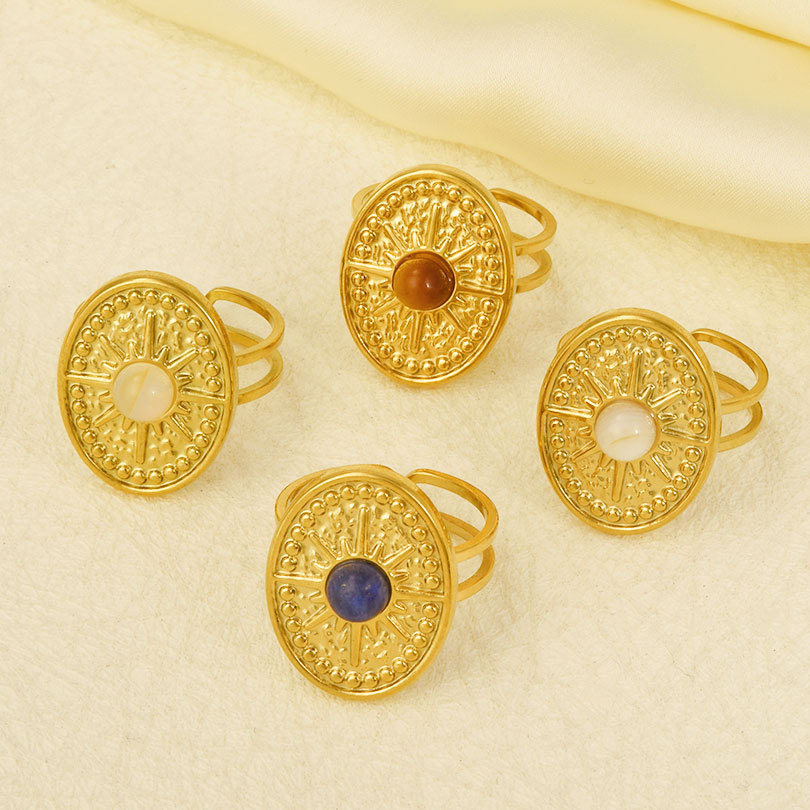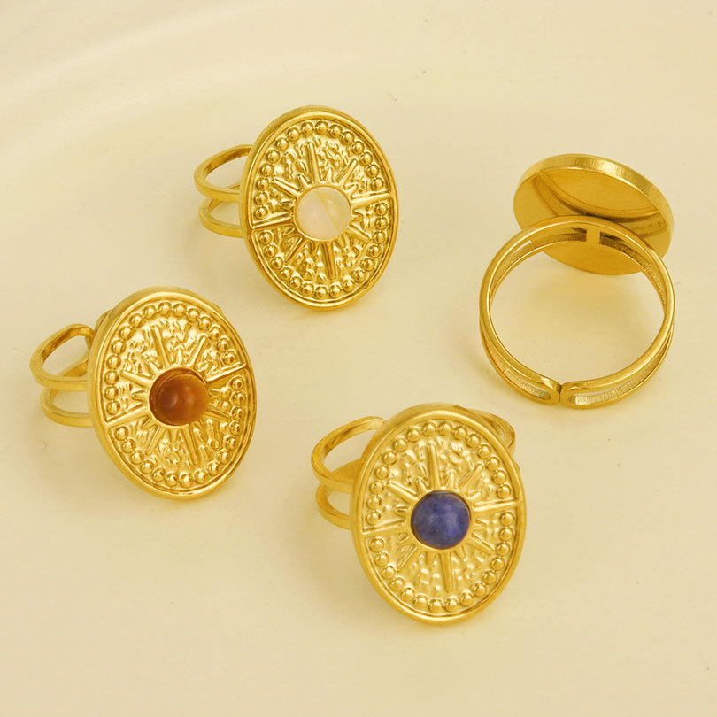 Vinger Ring in edelstaal, 304 roestvrij staal, met Opaal, Bloem, plated, mode sieraden & verschillende stijlen voor de keuze & voor vrouw, gouden, Verkocht door PC