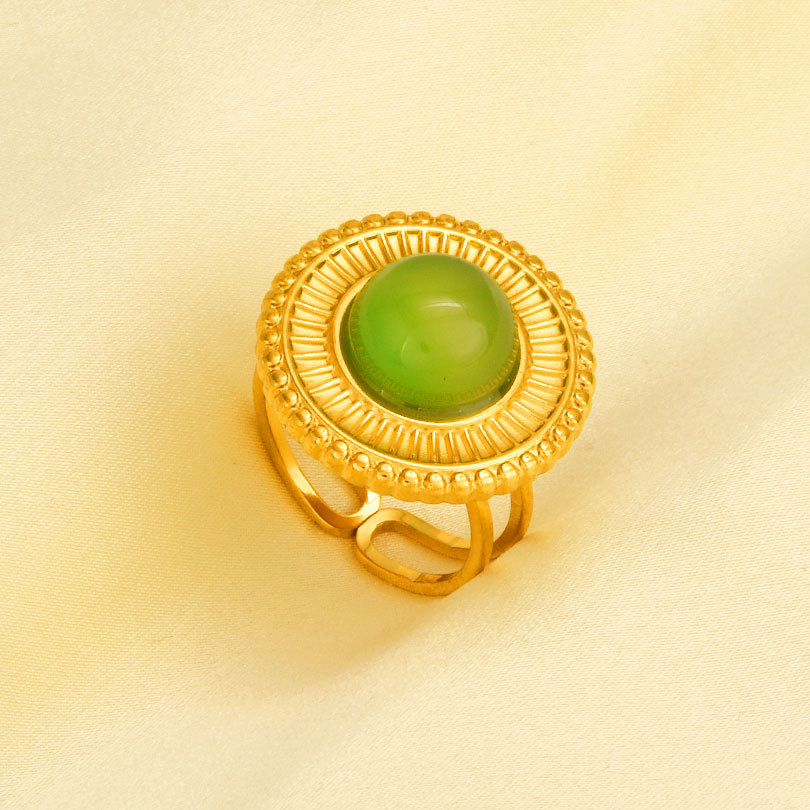 Vinger Ring in edelstaal, 304 roestvrij staal, met Edelsteen, Ronde, gold plated, voor vrouw, meer kleuren voor de keuze, Verkocht door PC