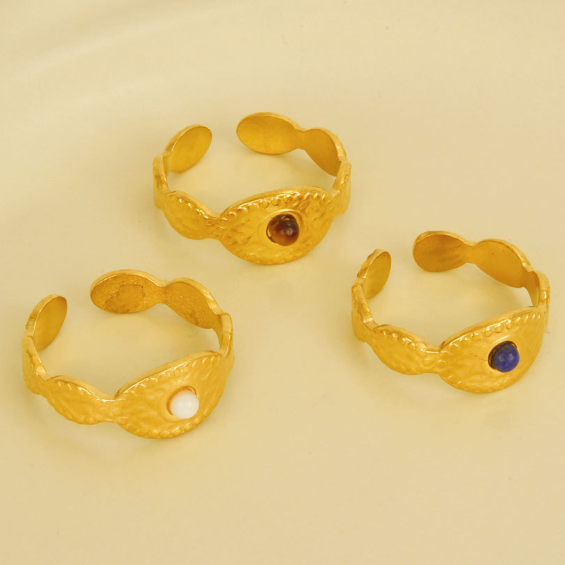 Vinger Ring in edelstaal, 304 roestvrij staal, met Edelsteen, Ronde, gold plated, voor vrouw, meer kleuren voor de keuze, Verkocht door PC