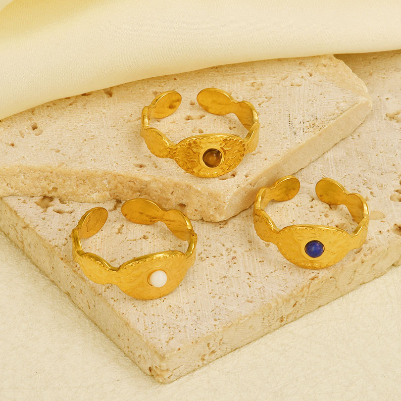 Vinger Ring in edelstaal, 304 roestvrij staal, met Opaal, Bloem, plated, mode sieraden & verschillende stijlen voor de keuze & voor vrouw, gouden, Verkocht door PC