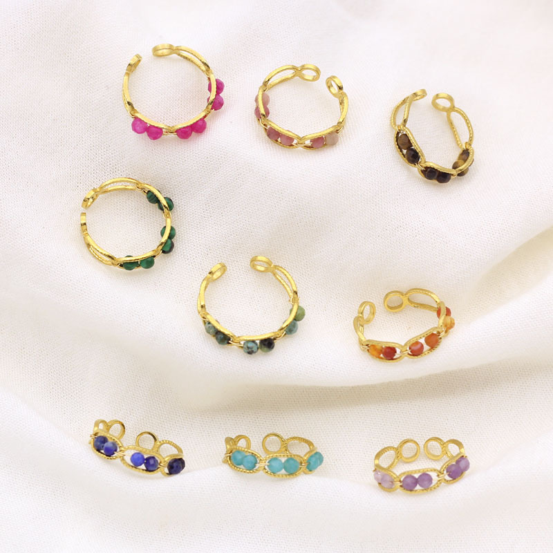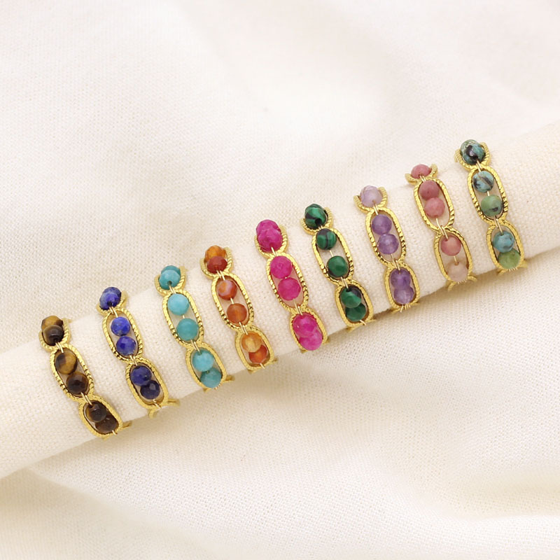 Vinger Ring in edelstaal, 304 roestvrij staal, met Natuursteen, gold plated, mode sieraden, meer kleuren voor de keuze, Verkocht door PC