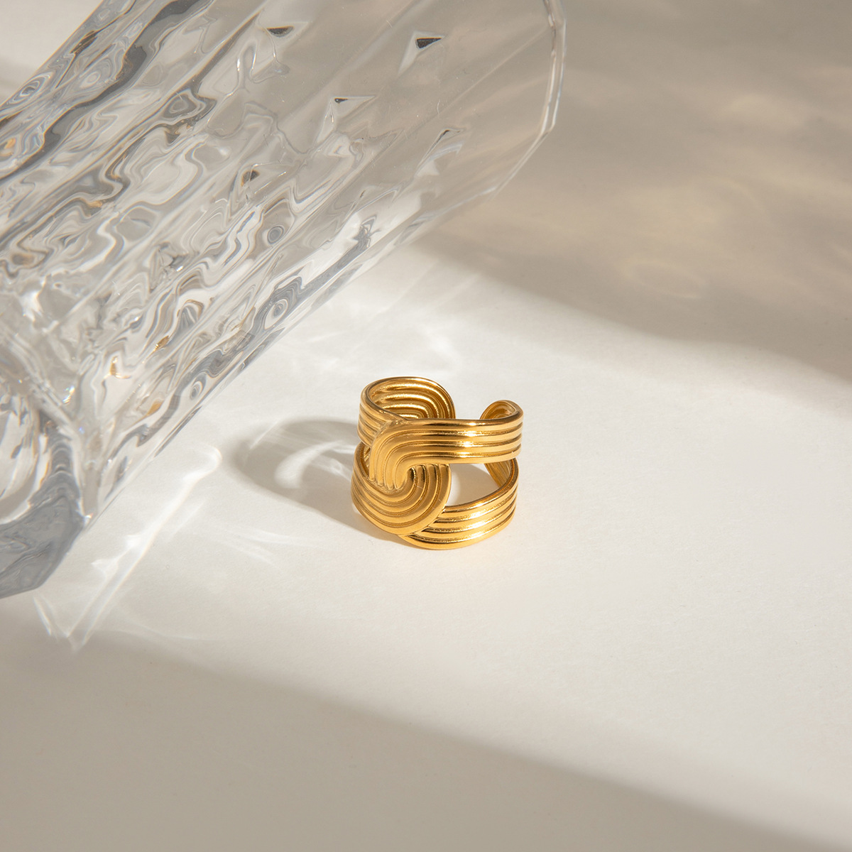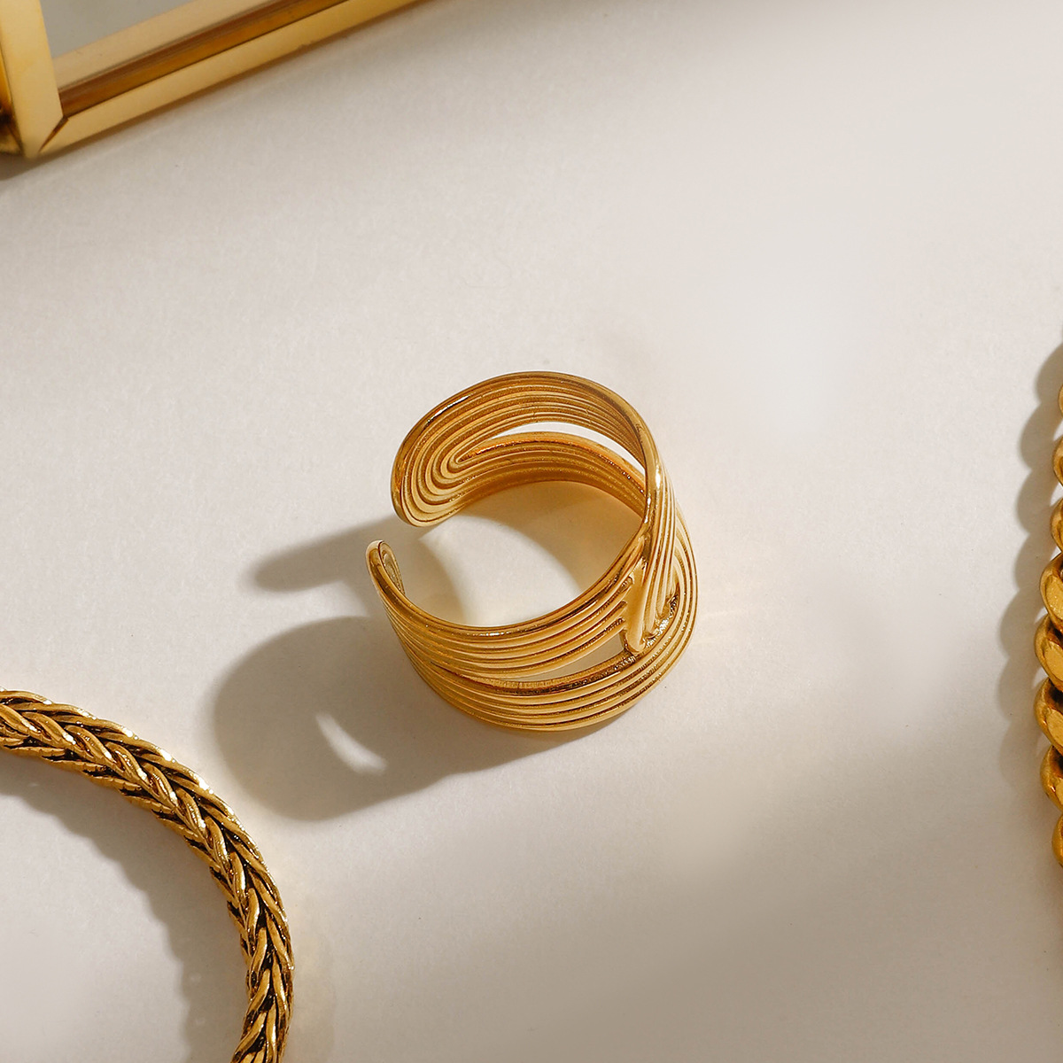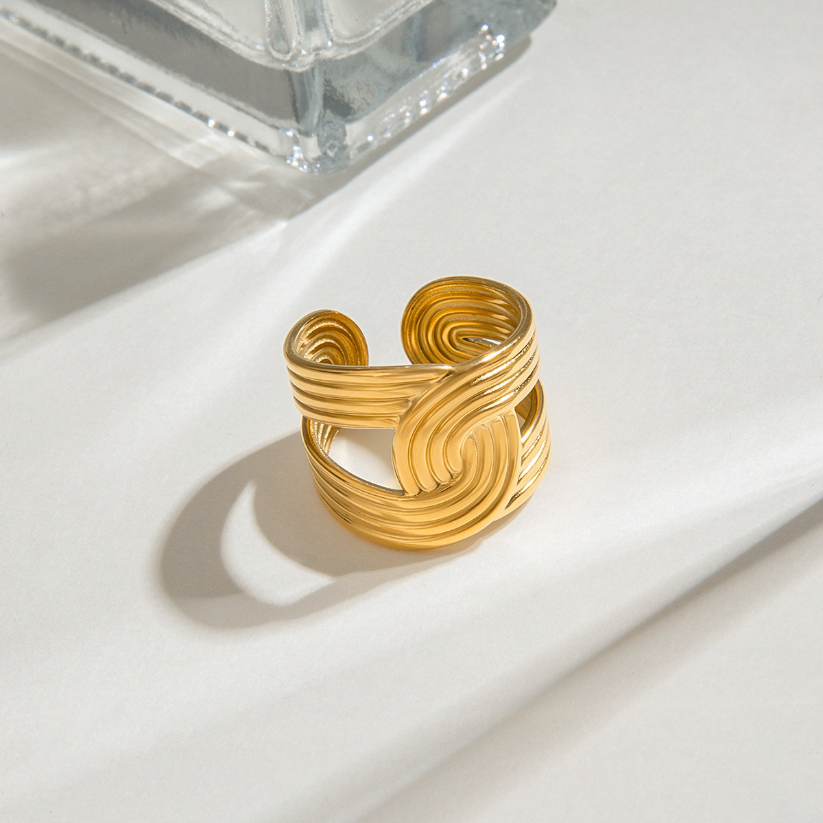 Vinger Ring in edelstaal, 304 roestvrij staal, plated, mode sieraden & voor vrouw & hol, gouden, Verkocht door PC
