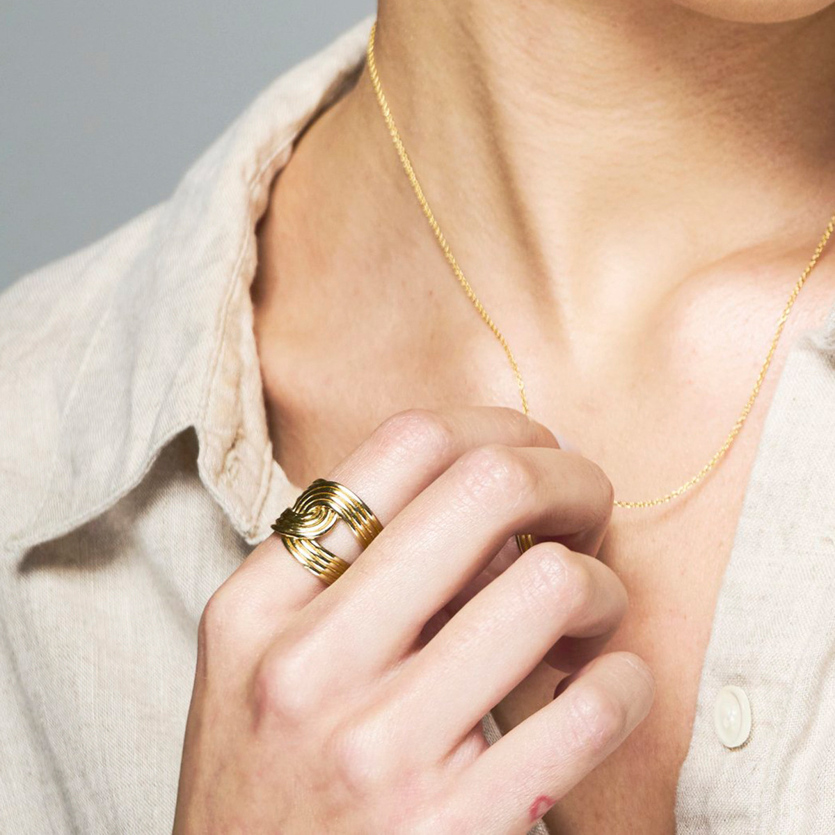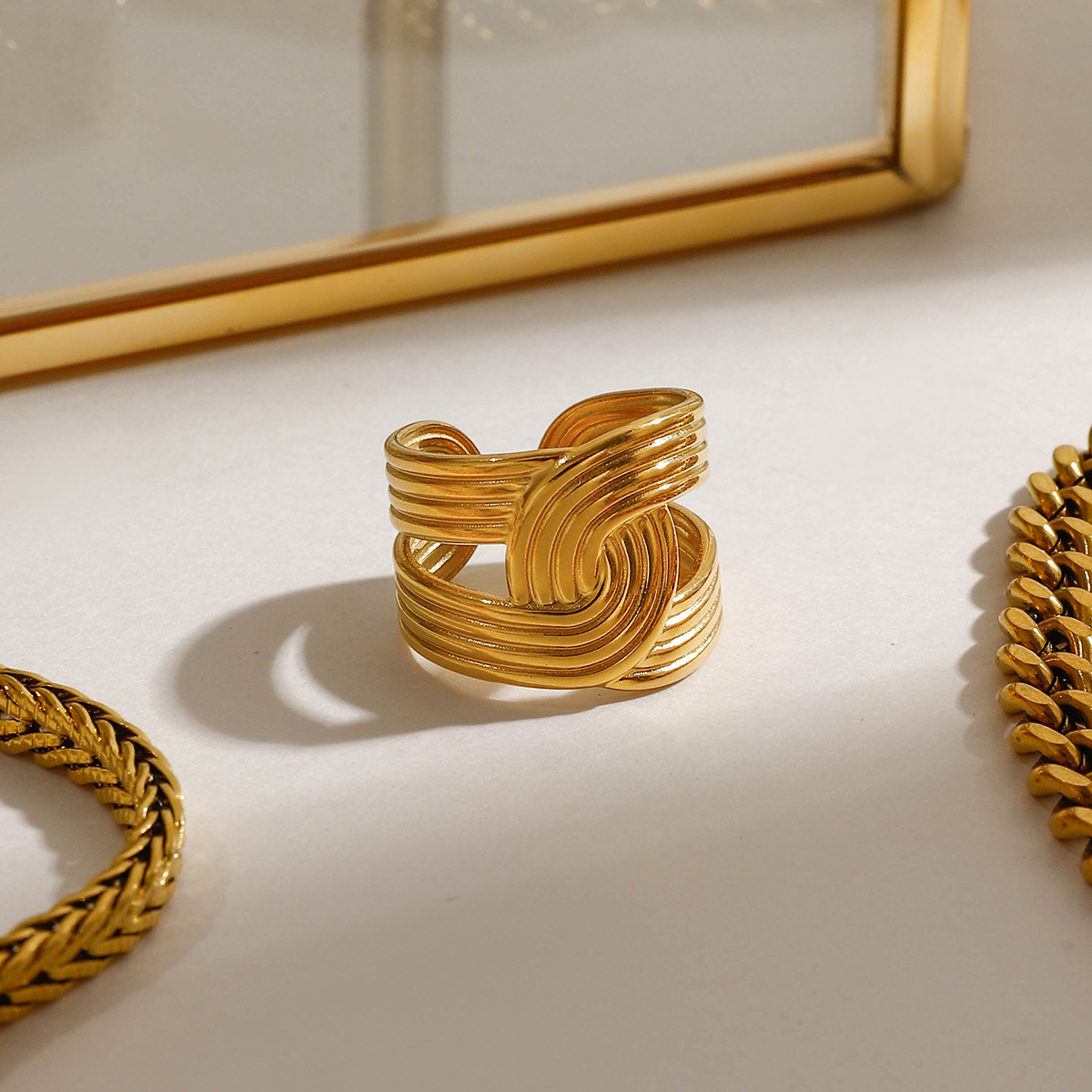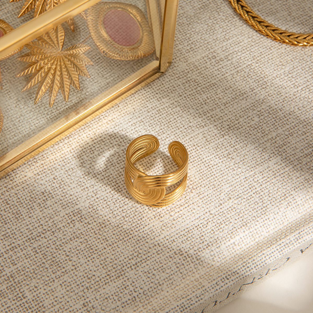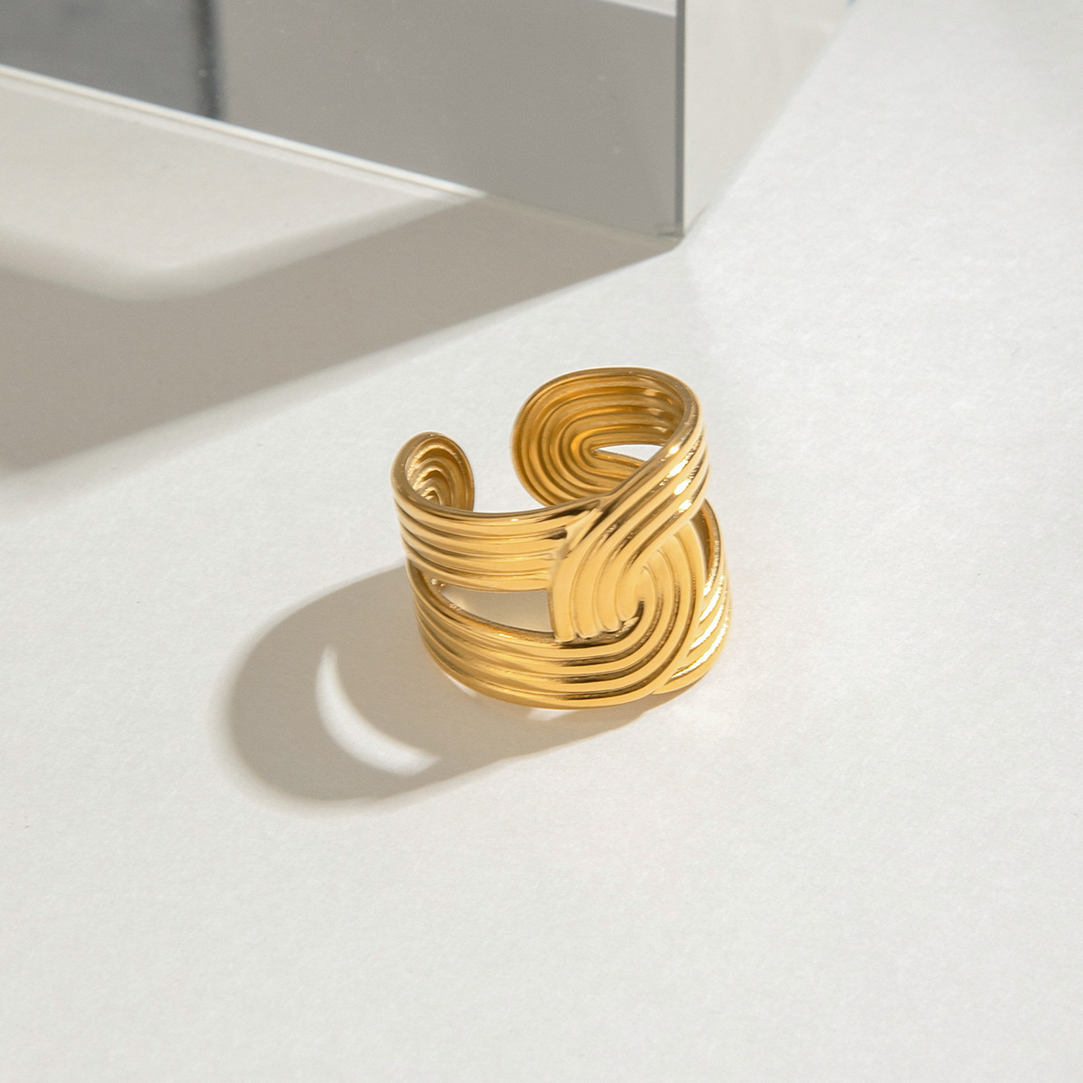 Vinger Ring in edelstaal, 304 roestvrij staal, plated, mode sieraden & voor vrouw & hol, gouden, Verkocht door PC