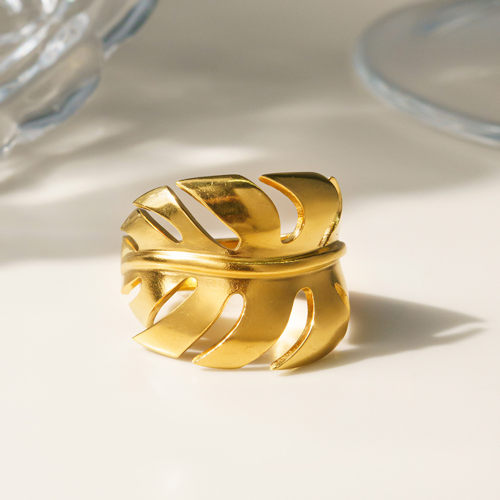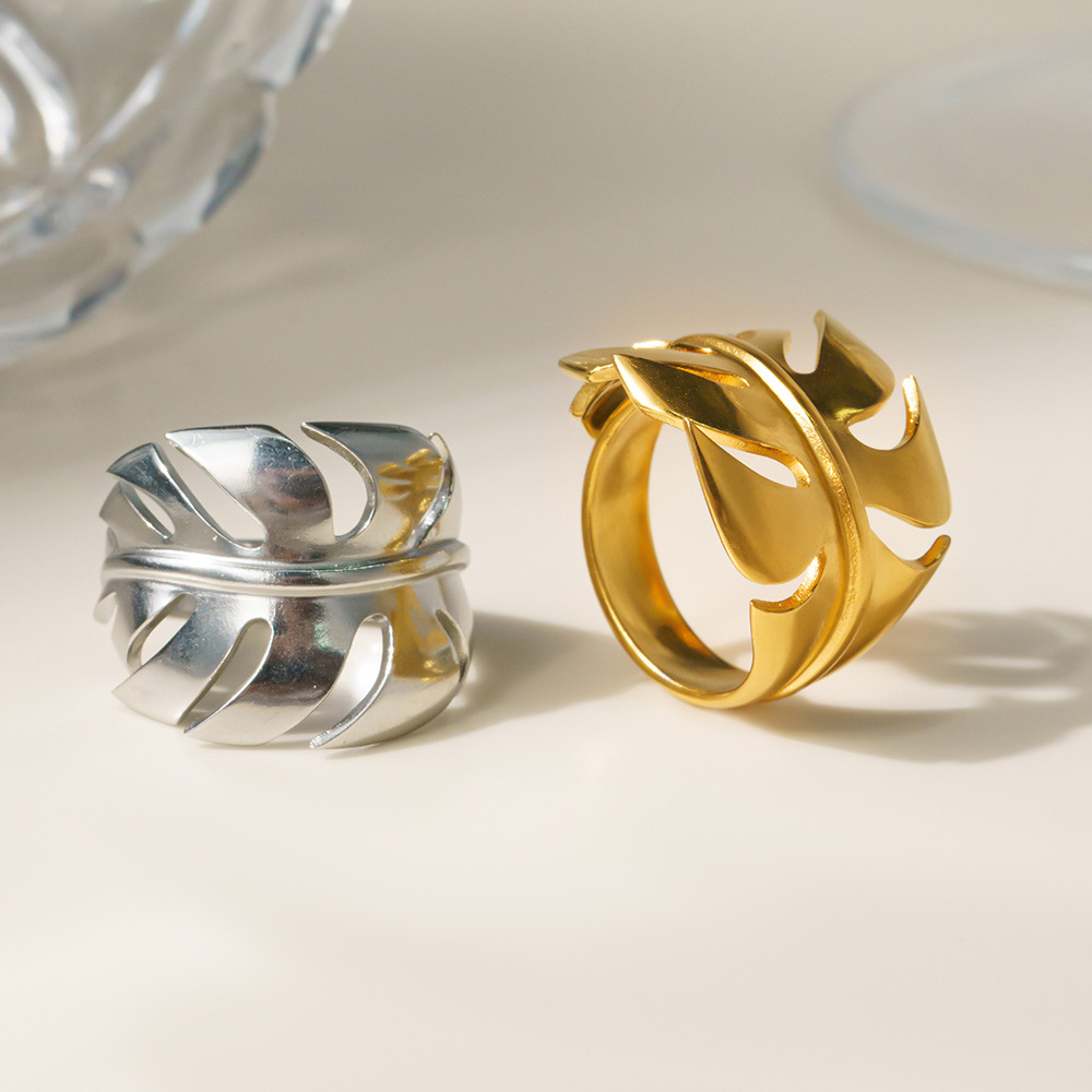Vinger Ring in edelstaal, 304 roestvrij staal, Blad, mode sieraden & voor vrouw, Verkocht door PC