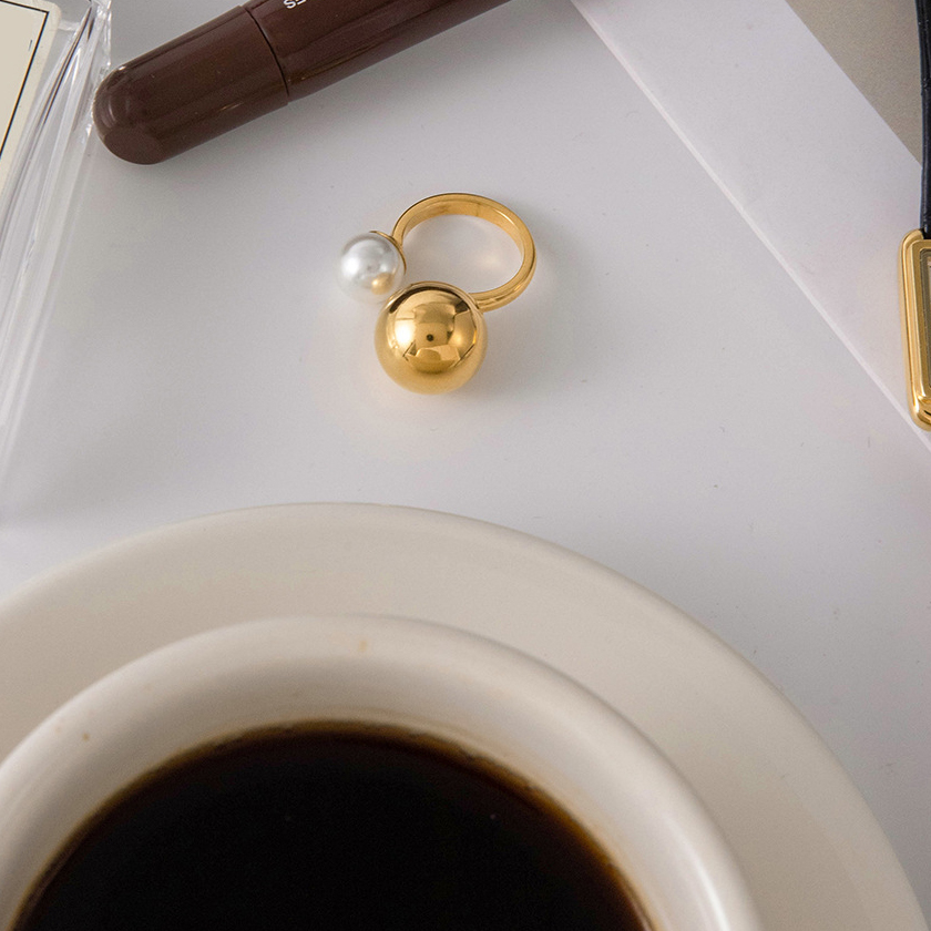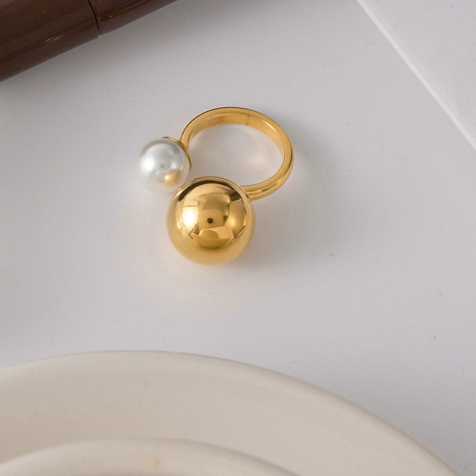 Vinger Ring in edelstaal, 304 roestvrij staal, met Plastic Pearl, plated, mode sieraden & voor vrouw, gouden, Verkocht door PC