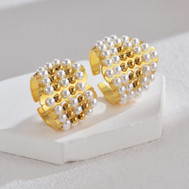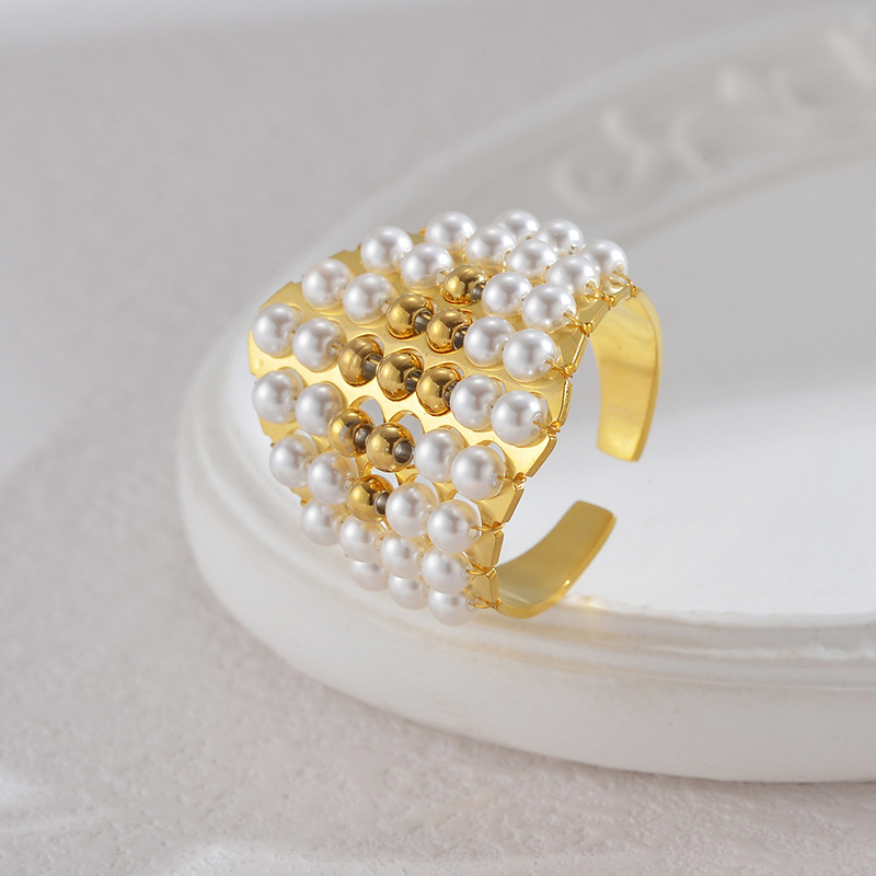 Vinger Ring in edelstaal, 304 roestvrij staal, met Plastic Pearl, gold plated, mode sieraden & verschillende stijlen voor de keuze & voor vrouw, Verkocht door PC