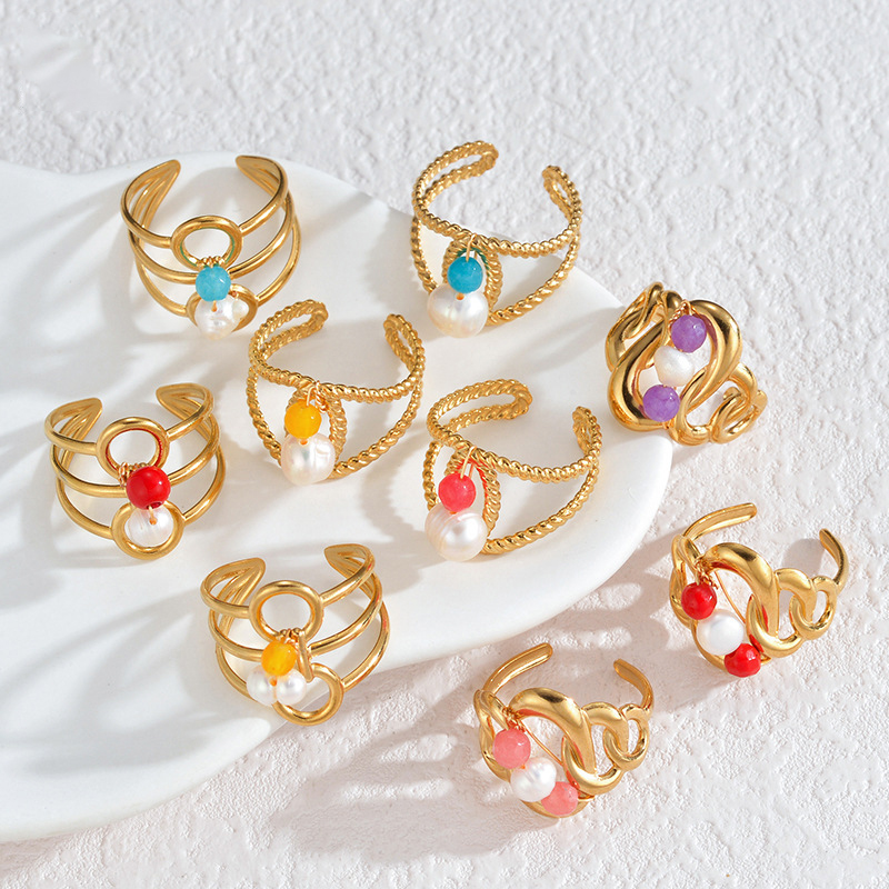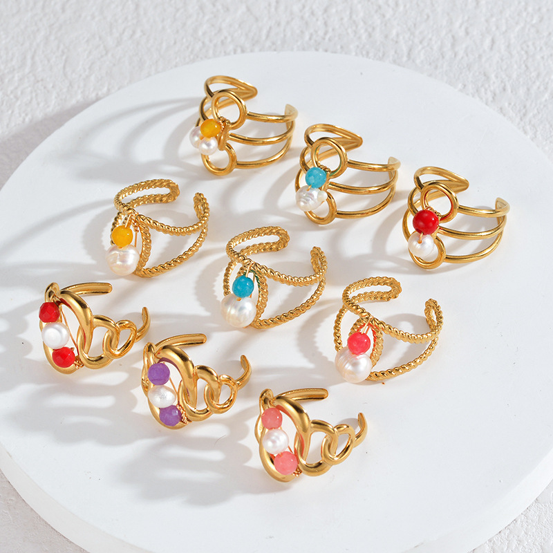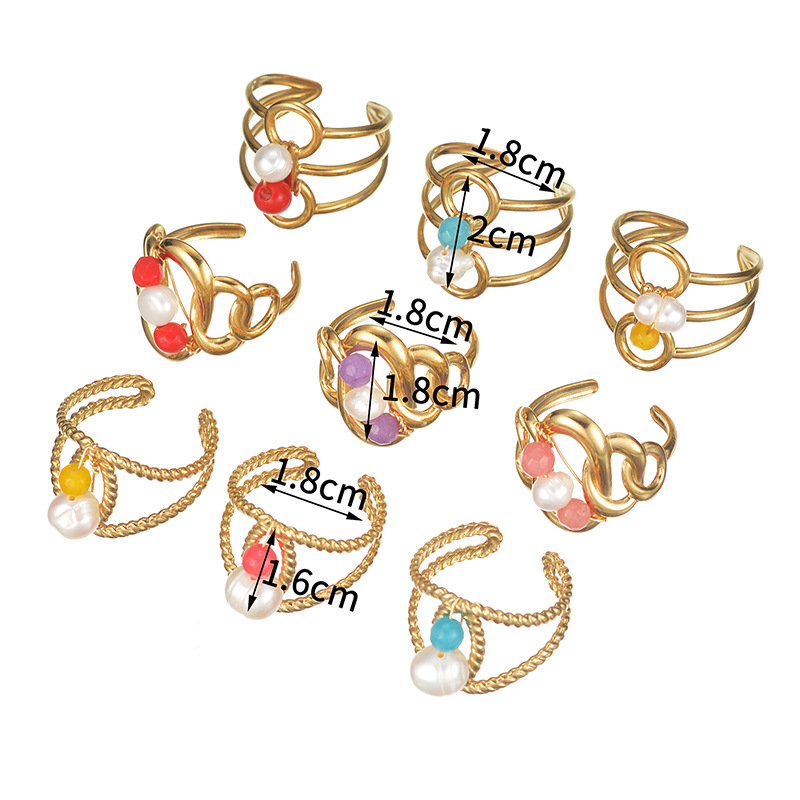 Vinger Ring in edelstaal, 304 roestvrij staal, met Hars & Plastic Pearl, gold plated, verschillende stijlen voor de keuze & voor vrouw & hol, meer kleuren voor de keuze, Verkocht door PC