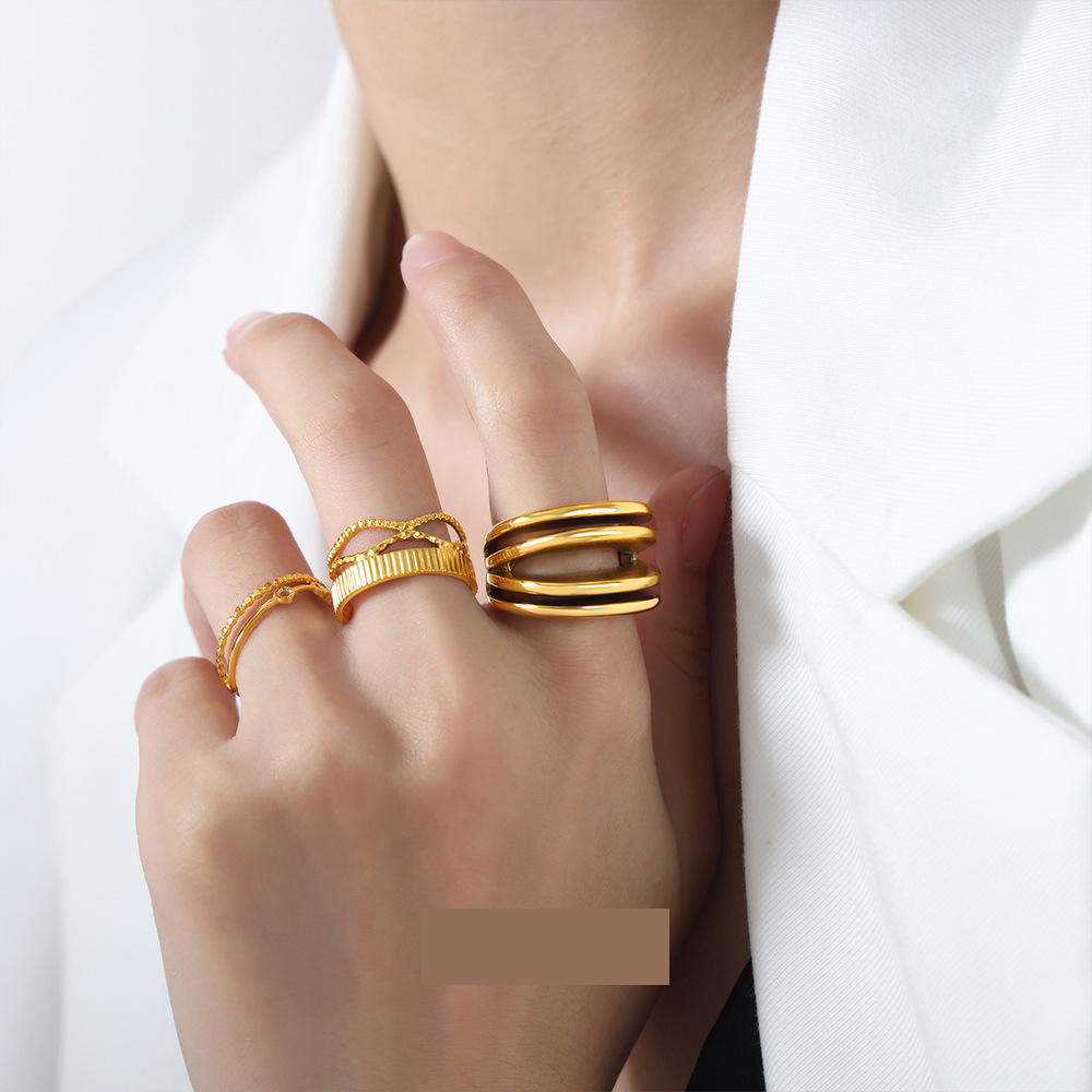 Vinger Ring in edelstaal, 304 roestvrij staal, gold plated, mode sieraden, gouden, 210x130x10mm, Verkocht door PC