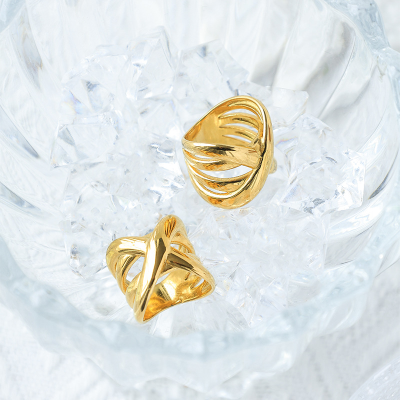 Vinger Ring in edelstaal, 304 roestvrij staal, plated, verschillende grootte voor keus & verschillende stijlen voor de keuze & voor vrouw & hol, gouden, Verkocht door PC