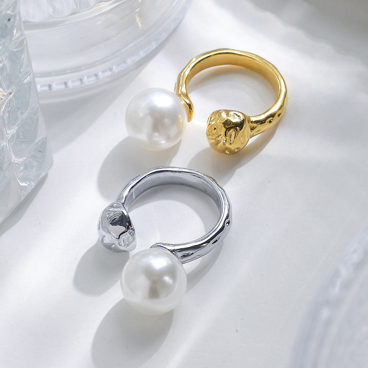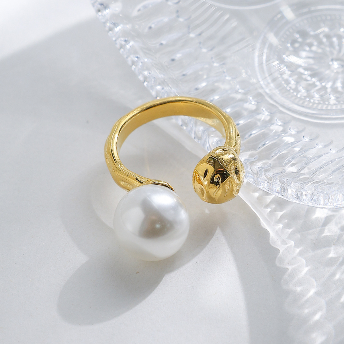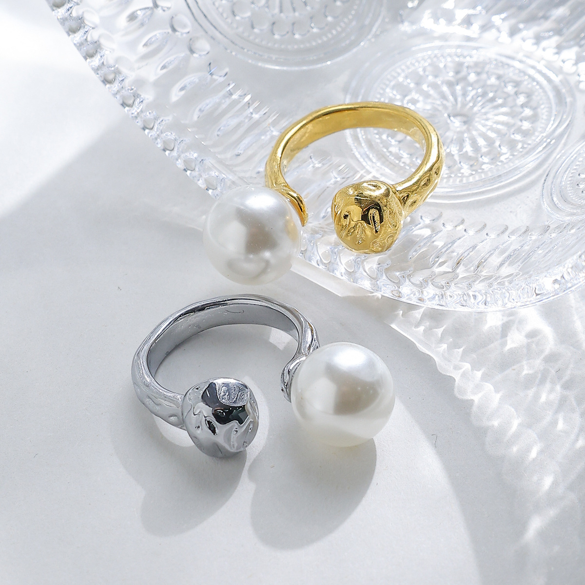 Vinger Ring in edelstaal, 304 roestvrij staal, met Plastic Pearl, gold plated, mode sieraden & verschillende stijlen voor de keuze & voor vrouw, Verkocht door PC