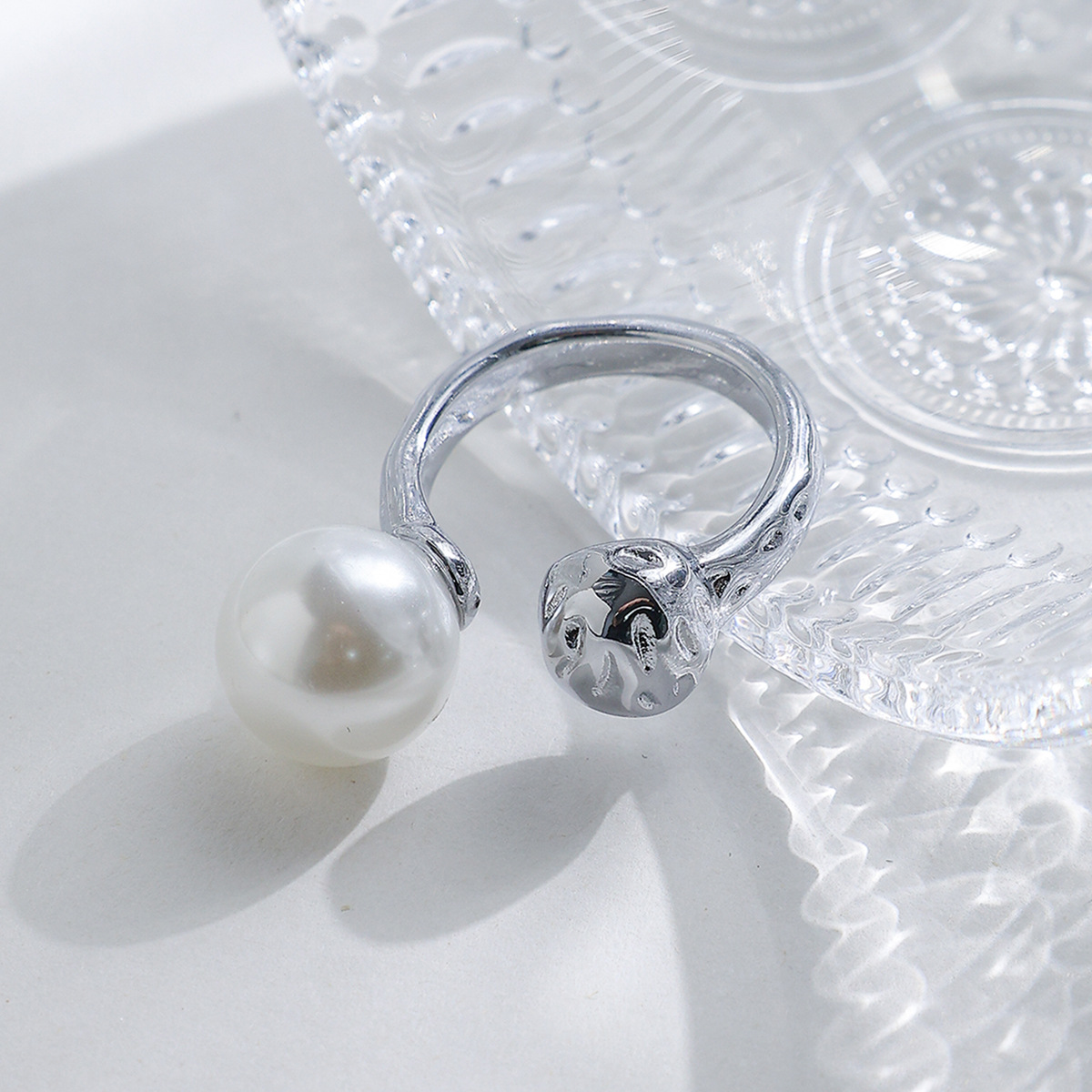 Vinger Ring in edelstaal, 304 roestvrij staal, met Plastic Pearl, plated, mode sieraden & voor vrouw, meer kleuren voor de keuze, Verkocht door PC