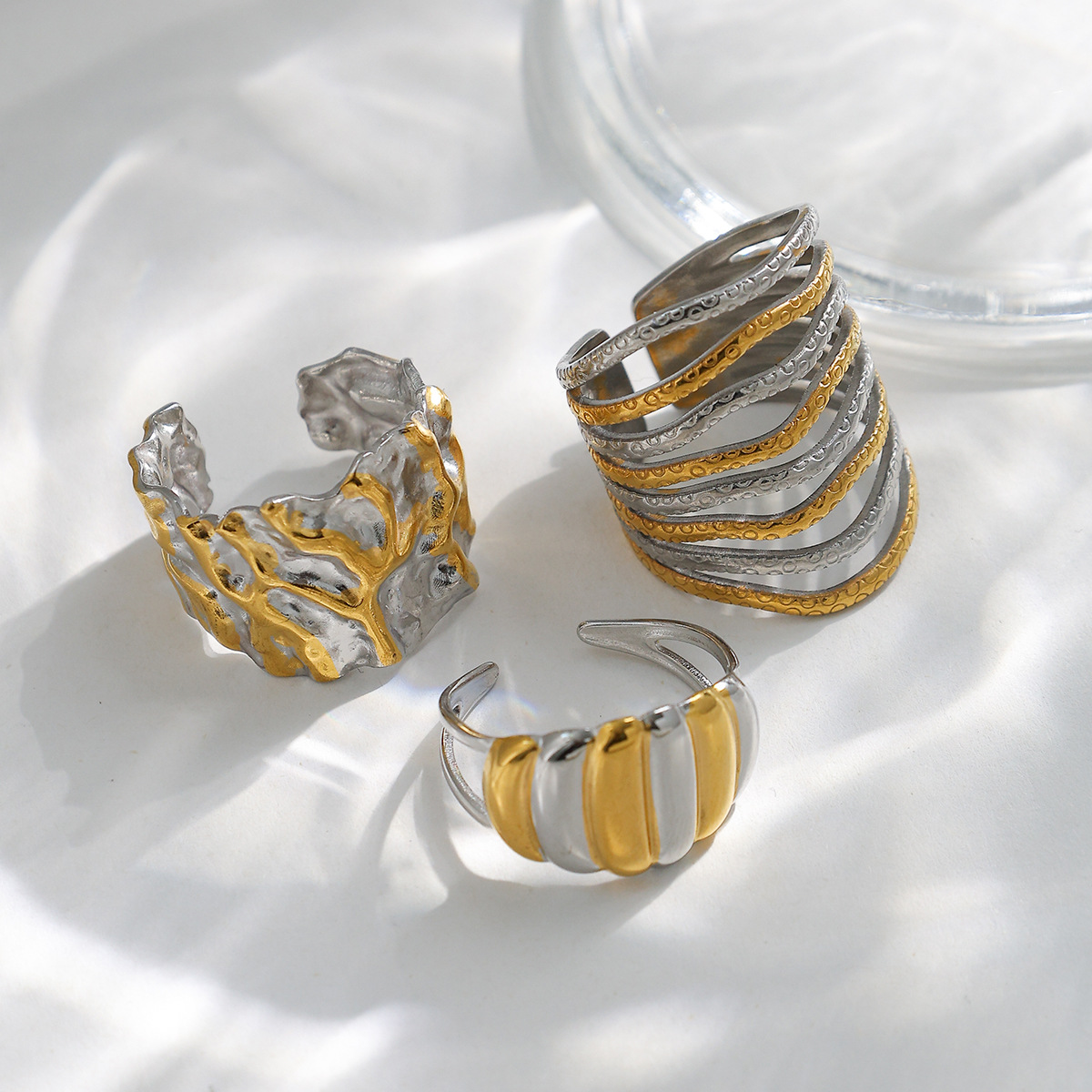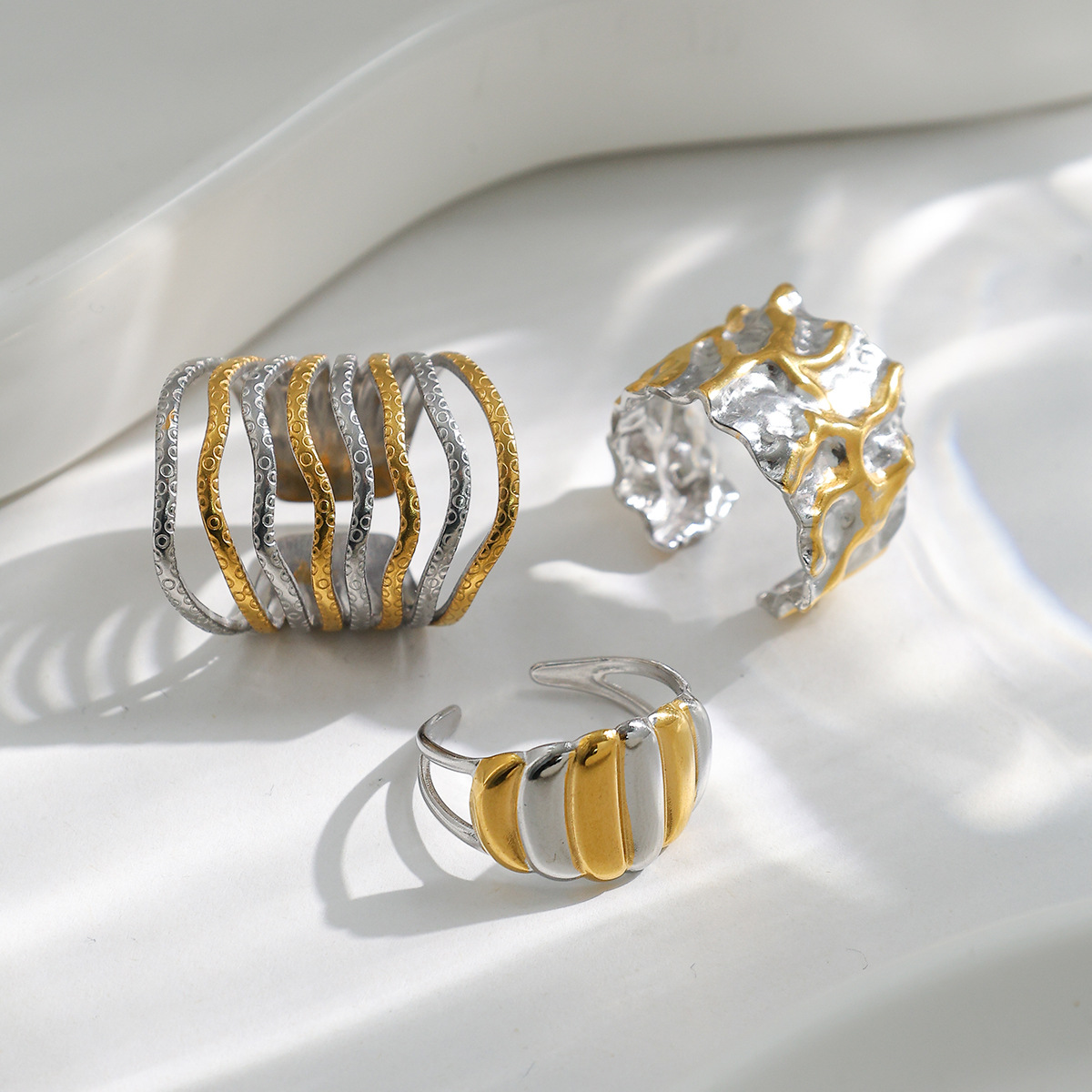 Vinger Ring in edelstaal, 304 roestvrij staal, plated, verschillende stijlen voor de keuze & voor vrouw & two tone, Verkocht door PC