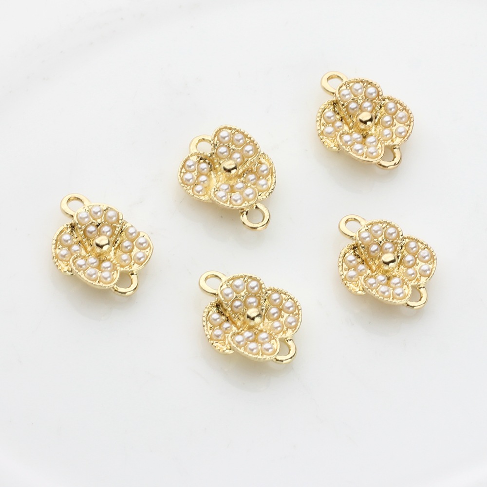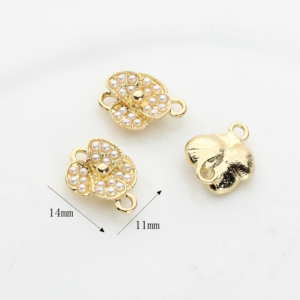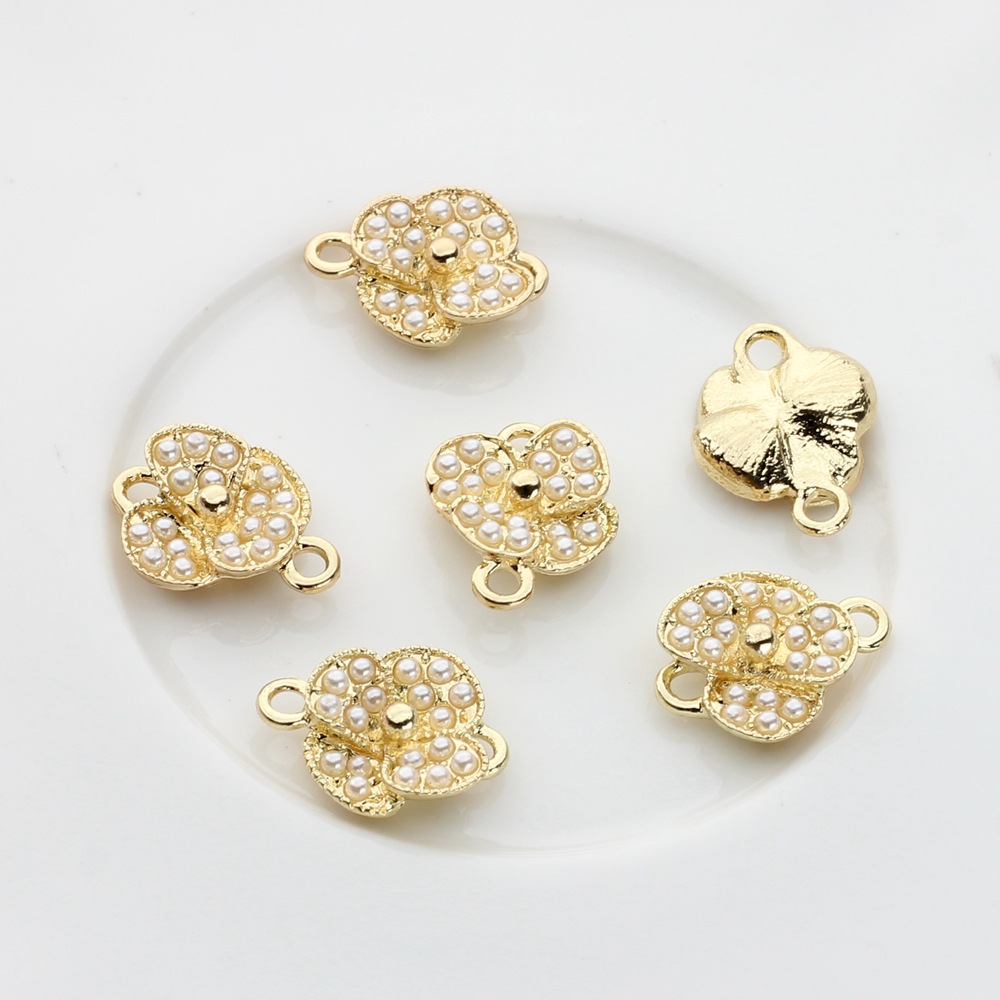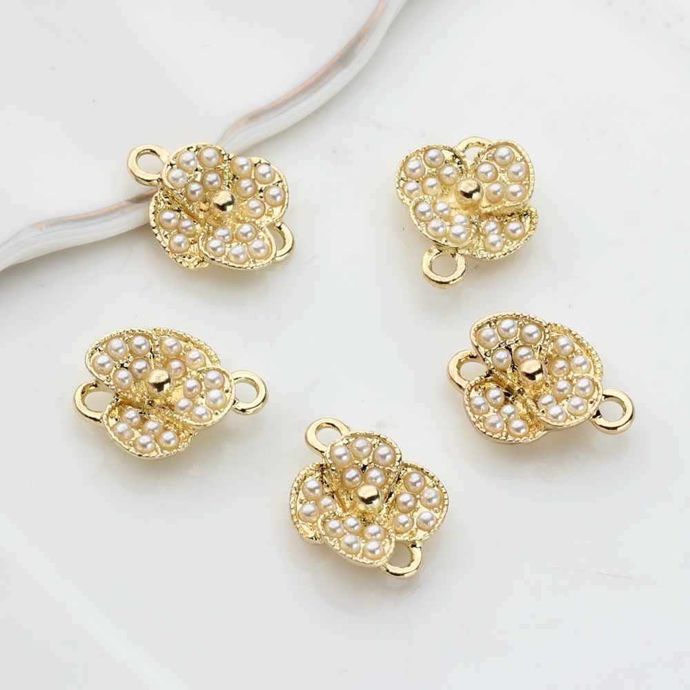 Zinklegering Connector, Zinc Alloy, met Plastic Pearl, Bloem, gold plated, DIY, gouden, 100pC's/Bag, Verkocht door Bag