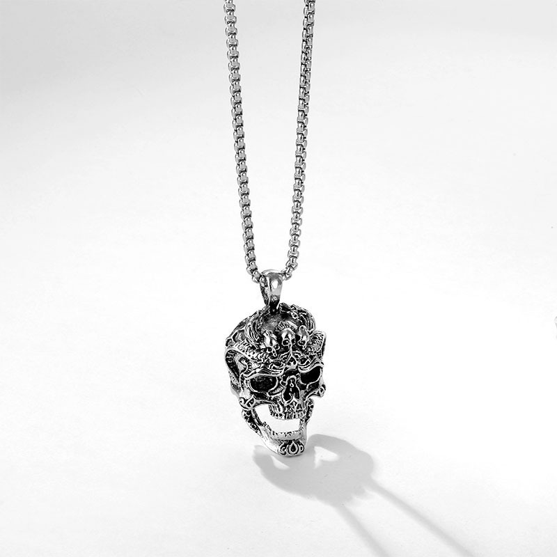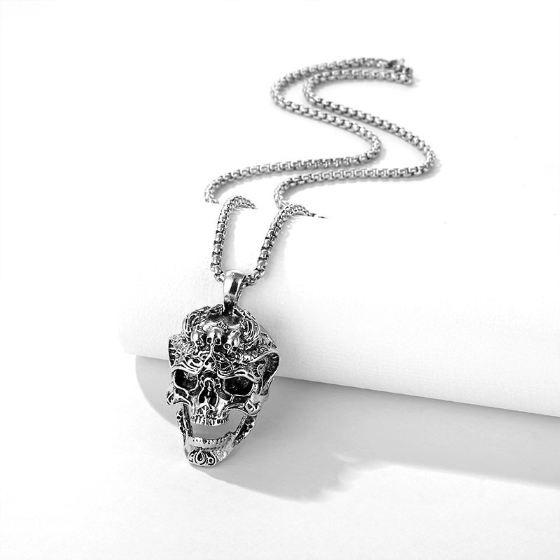 Zinklegering halskettingen, Zinc Alloy, Schedel, silver plated, mode sieraden, zilver, 4mm, Lengte 60 cm, Verkocht door PC